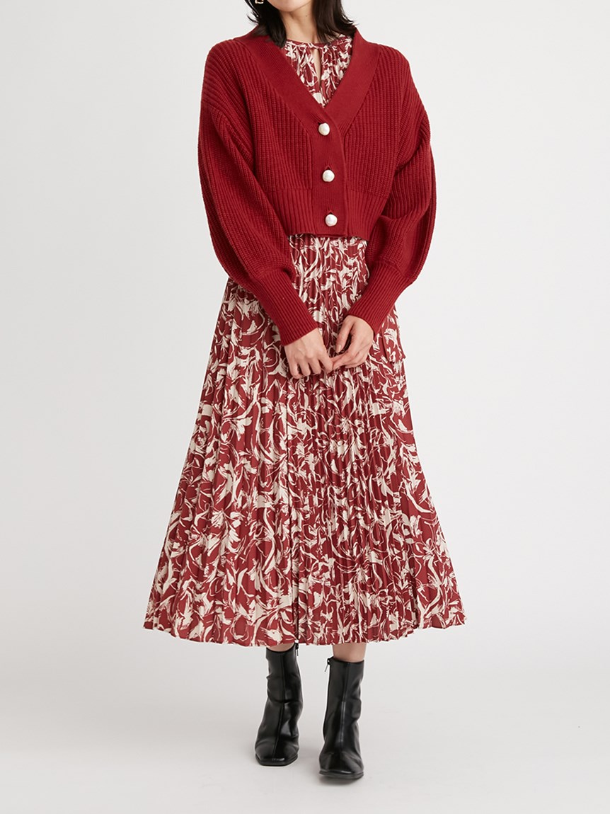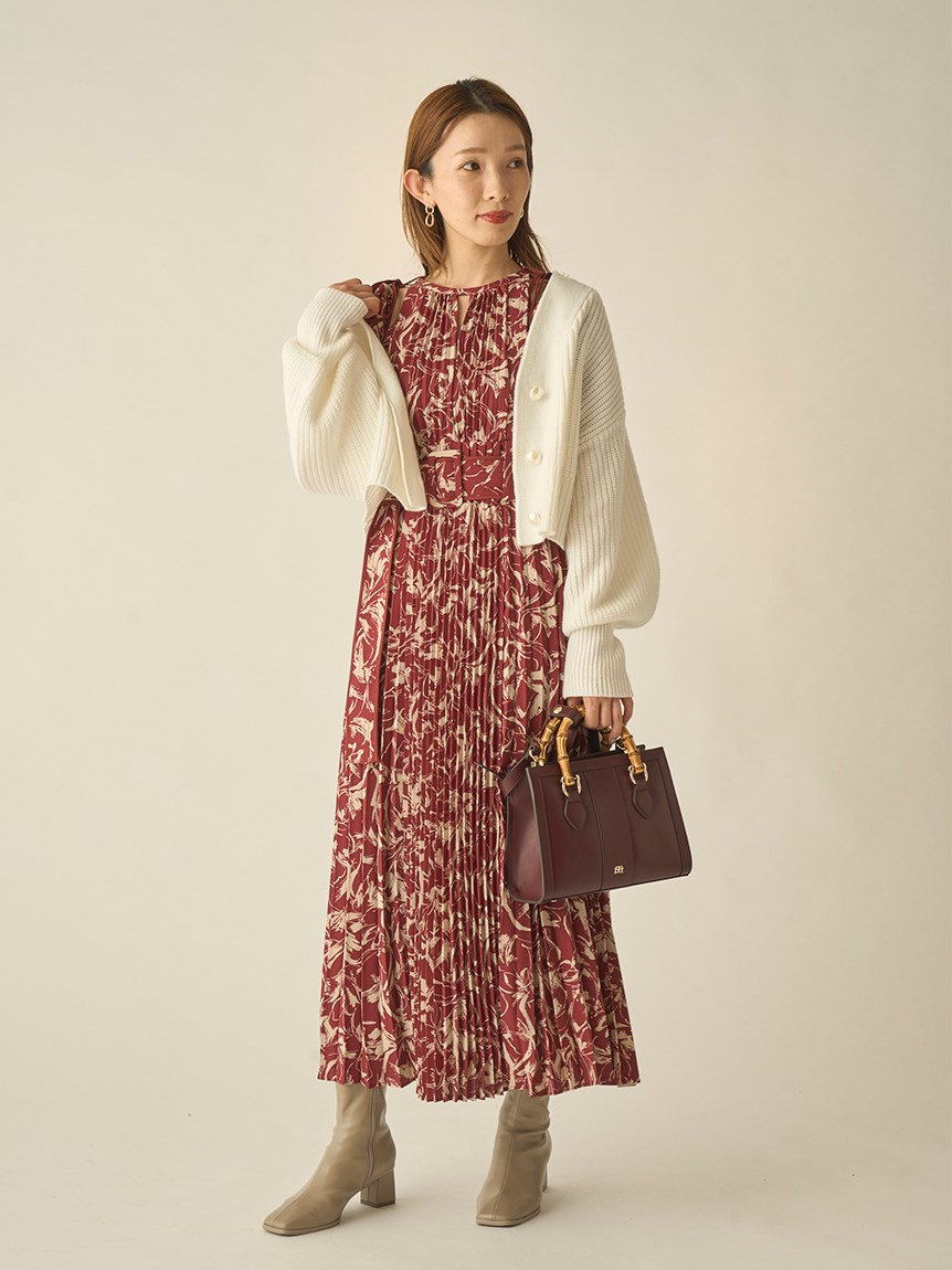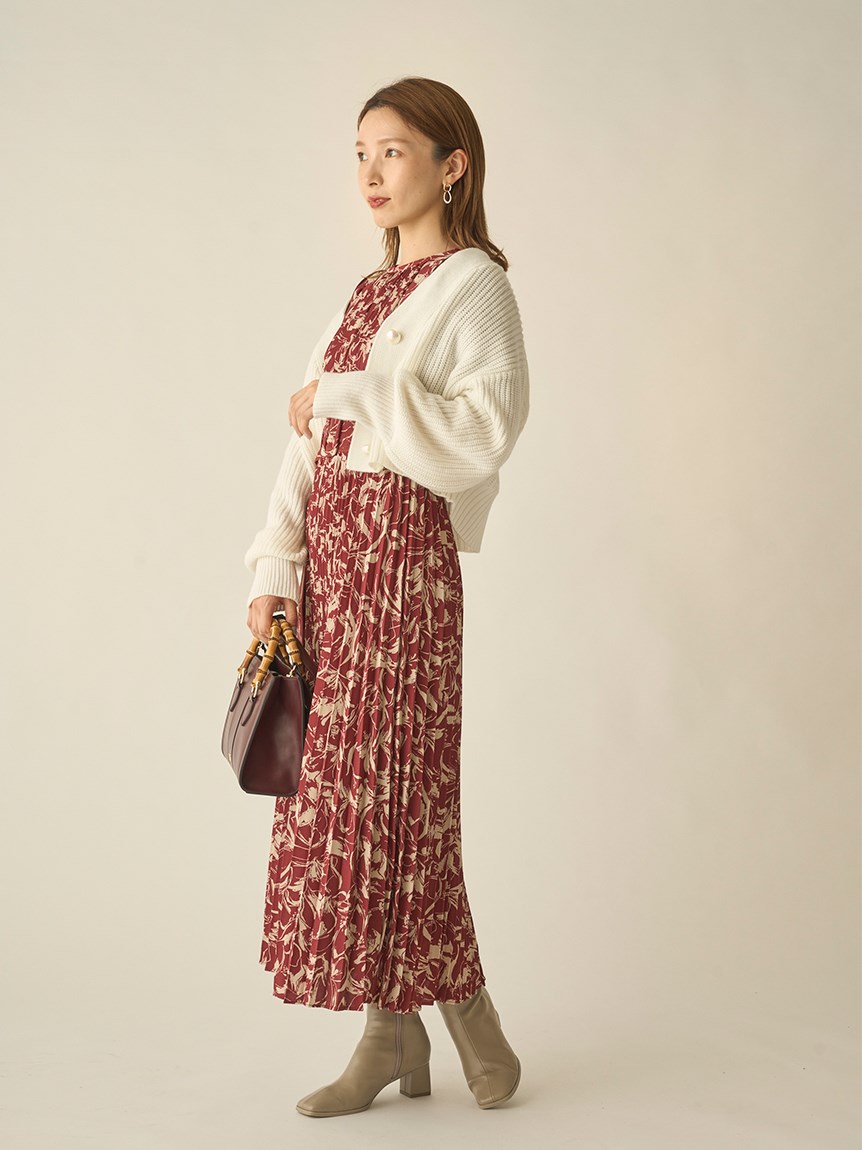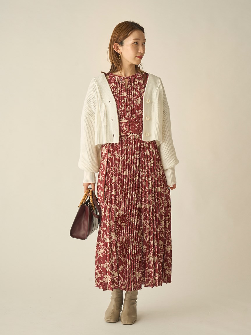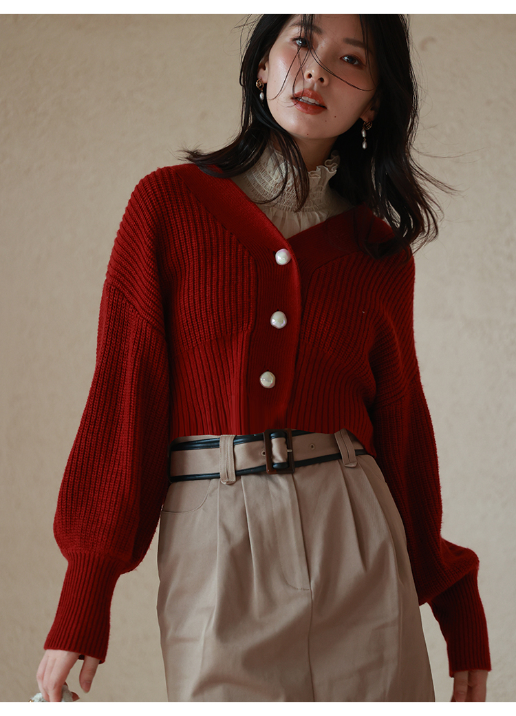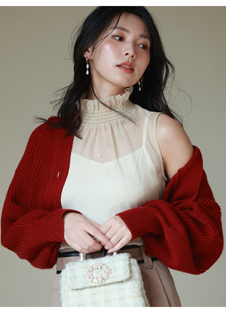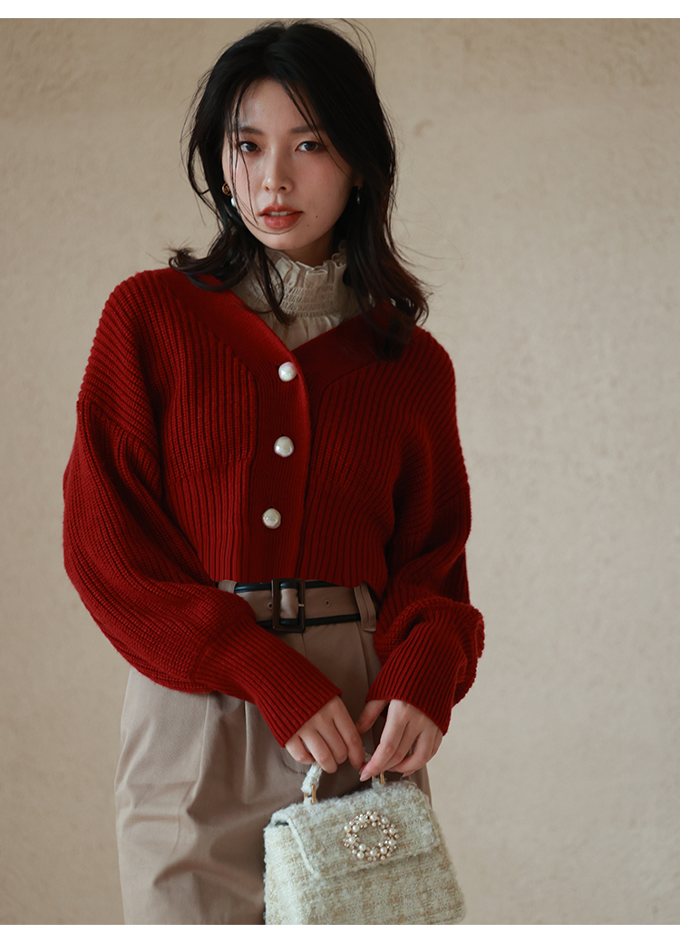 ツヤやかな質感のパール調ボタンがあしらわれた、品が良く華やかなニットカーディガン。肩のラインを落とし丸みのあるシルエットにすることで、ワンピースにも合わせやすい女性らしいフォルムに。さらりと羽織ればこなれ感が生まれ、スタイリングの鮮度が一気に高まります。