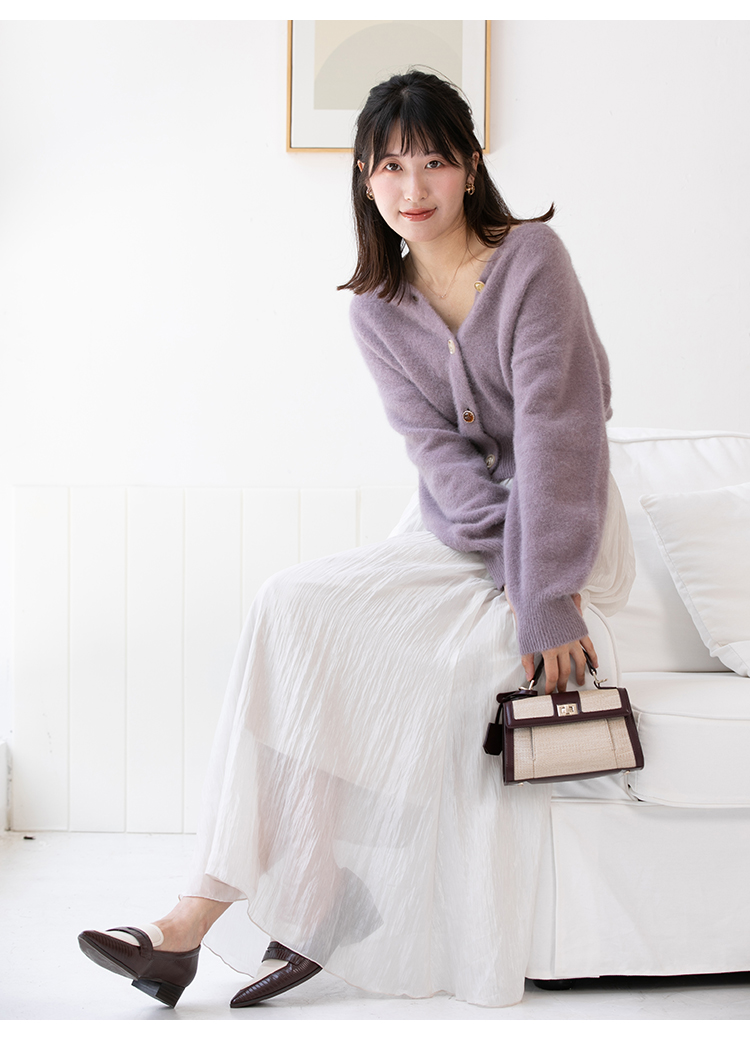 アイテム詳細 素材 レーヨン25%、ナイロン25%、羊毛20%、アンゴラ15%、毛(チャイニーズラクーン)10%、ポリウレタン5% 原産国 中国 メーカー品番 SWNT224251(店舗でお問い合わせの際には、上記品番をお伝え下さい。) 洗濯表記 [ 本体 ] 洗濯表示の詳しい説明はこちら サイズ サイズ 着丈 バスト 袖丈 肩幅 前下がり 裾幅 F 51cm 100cm 48cm 55.5cm 15cm 33.5cm