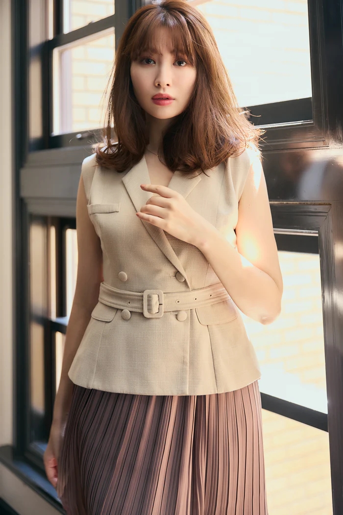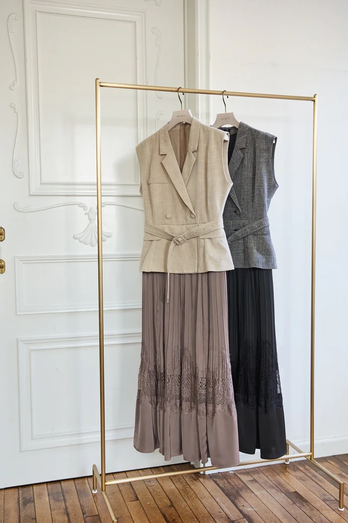 一枚で洗練されたレディな着こなしに魅せてくれるジレドッキングドレス。