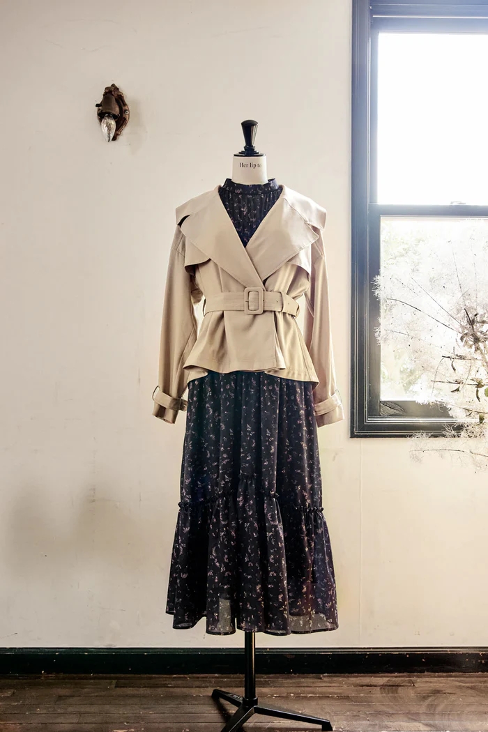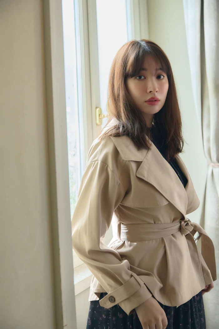 どんなコーディネートもワンランクアップした上品なスタイリングに魅せてくれる、名品のショートトレンチが出来上がりました。