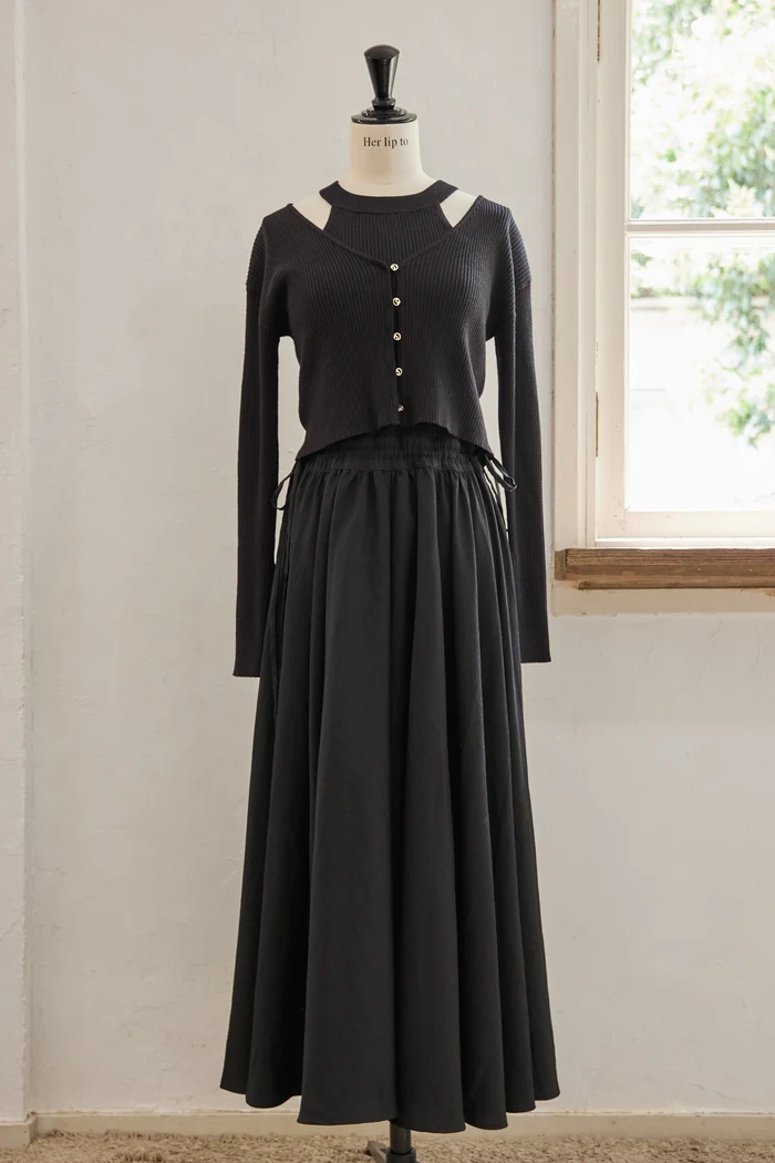 ■サイズ展開:F カーディガン F[ 着丈:41 / 肩幅:41 / バスト:74 / 裾まわり:72 / 袖丈:53 / 袖スリット丈:15 ](cm) ワンピース F[ 着丈:125 / 肩幅:17.5 / バスト:64 / ウエスト:84 / アームホール:17.5 / スカート丈:85.5 ](cm)