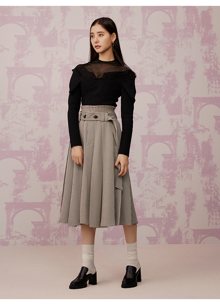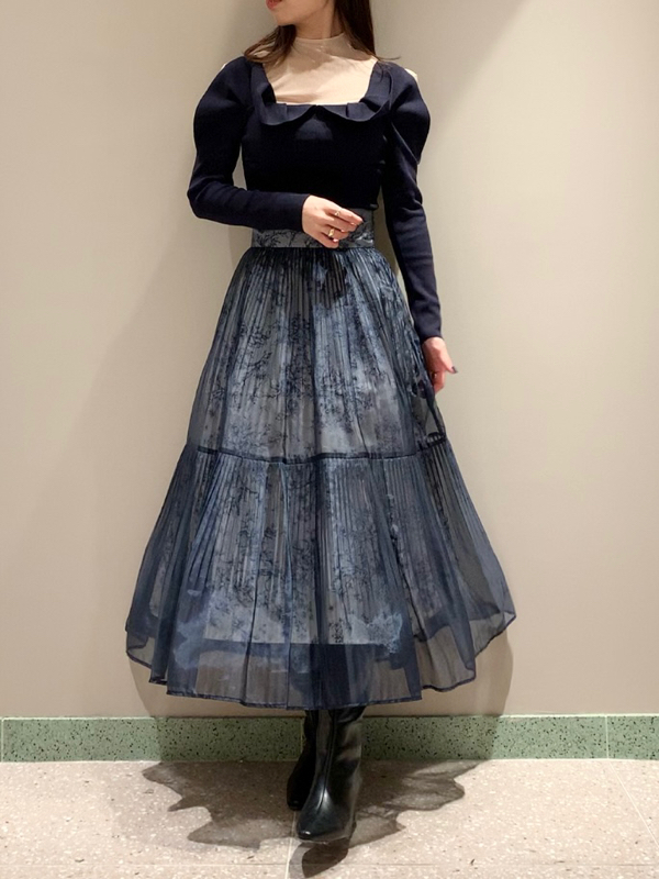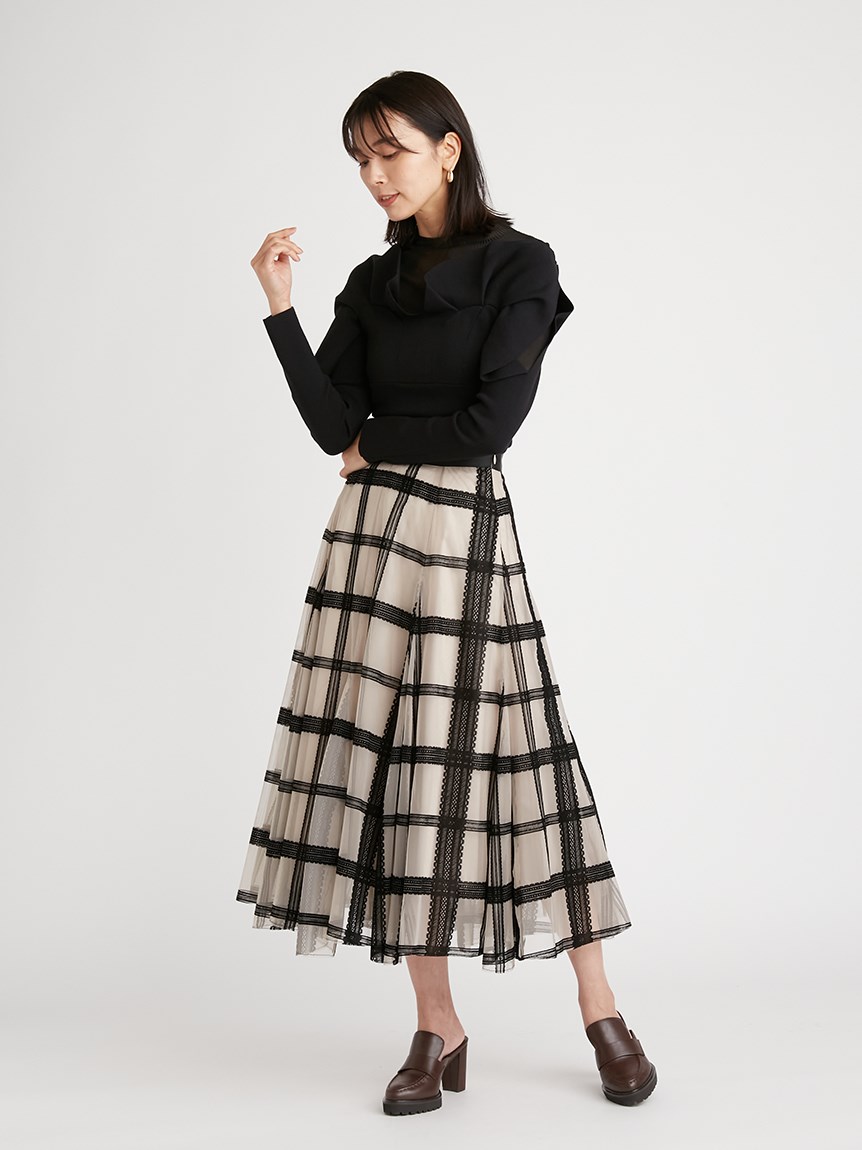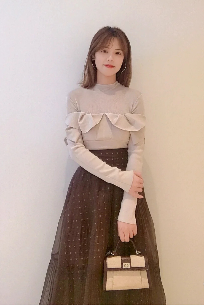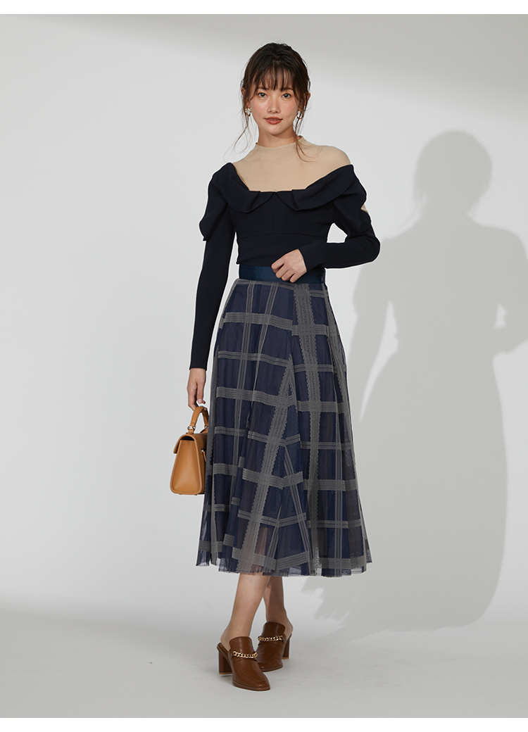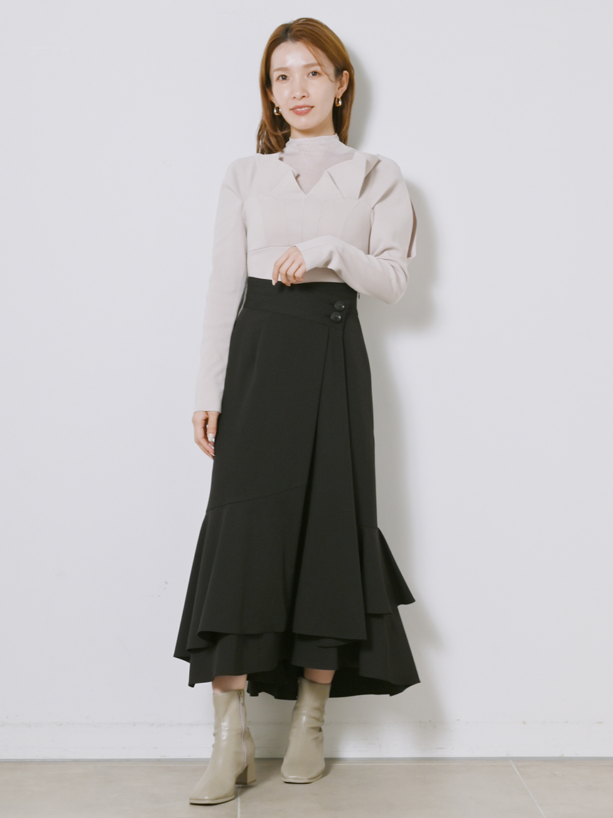 透け感のあるセンシュアルなデコルテとコルセットライクな身頃との絶妙なバランス感が魅力。「SNIDEL」定番のデコルテシースルーニットをモードに昇華させたこだわりの1着が届きました。前後に彩られたボリューミーなフリルでぐっと華やかな雰囲気に。オフショルにアレンジすることも可能なので、着こなしを自由に楽しめます。