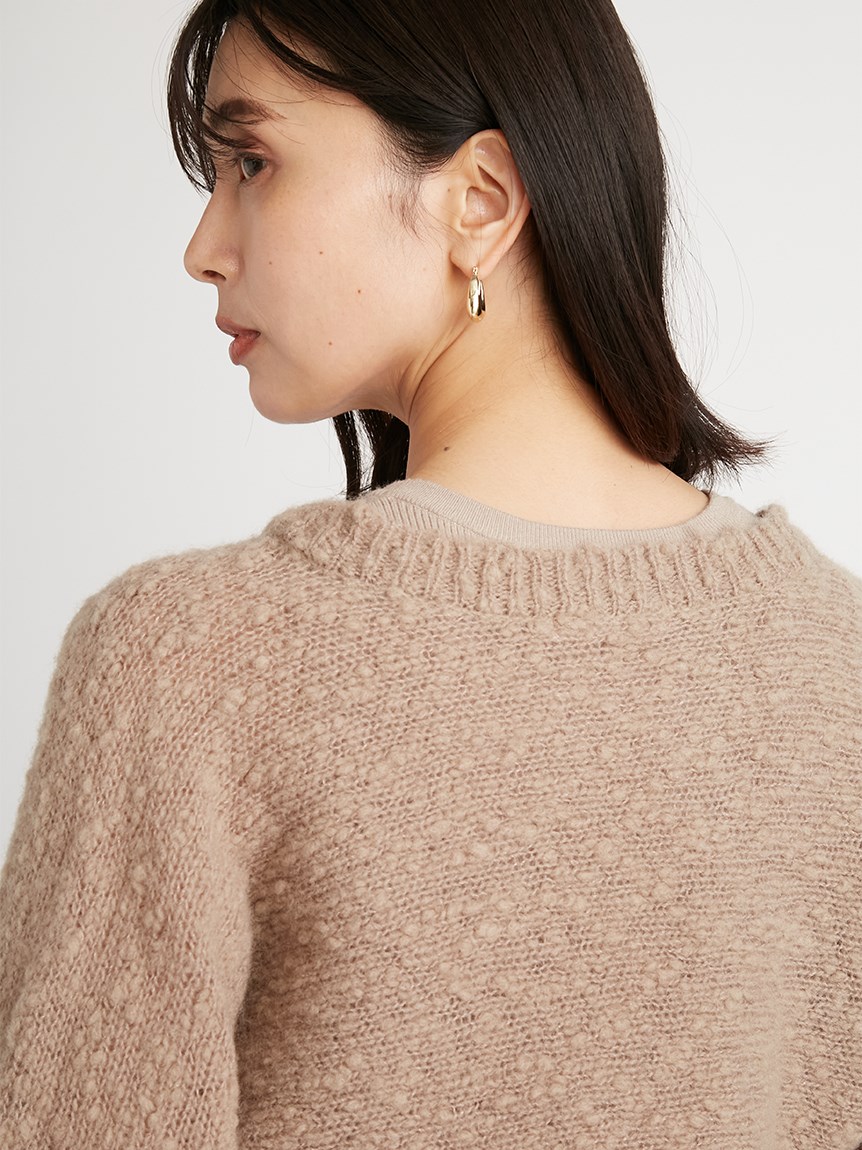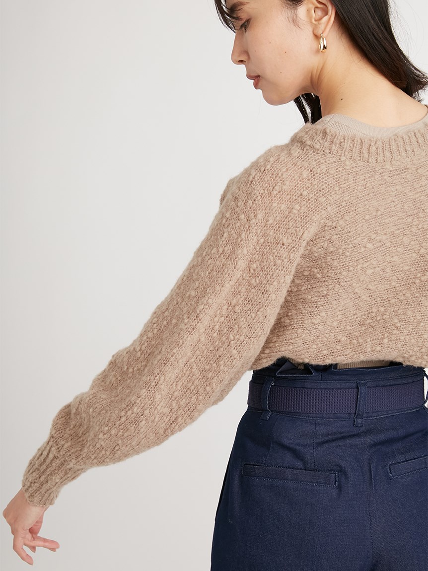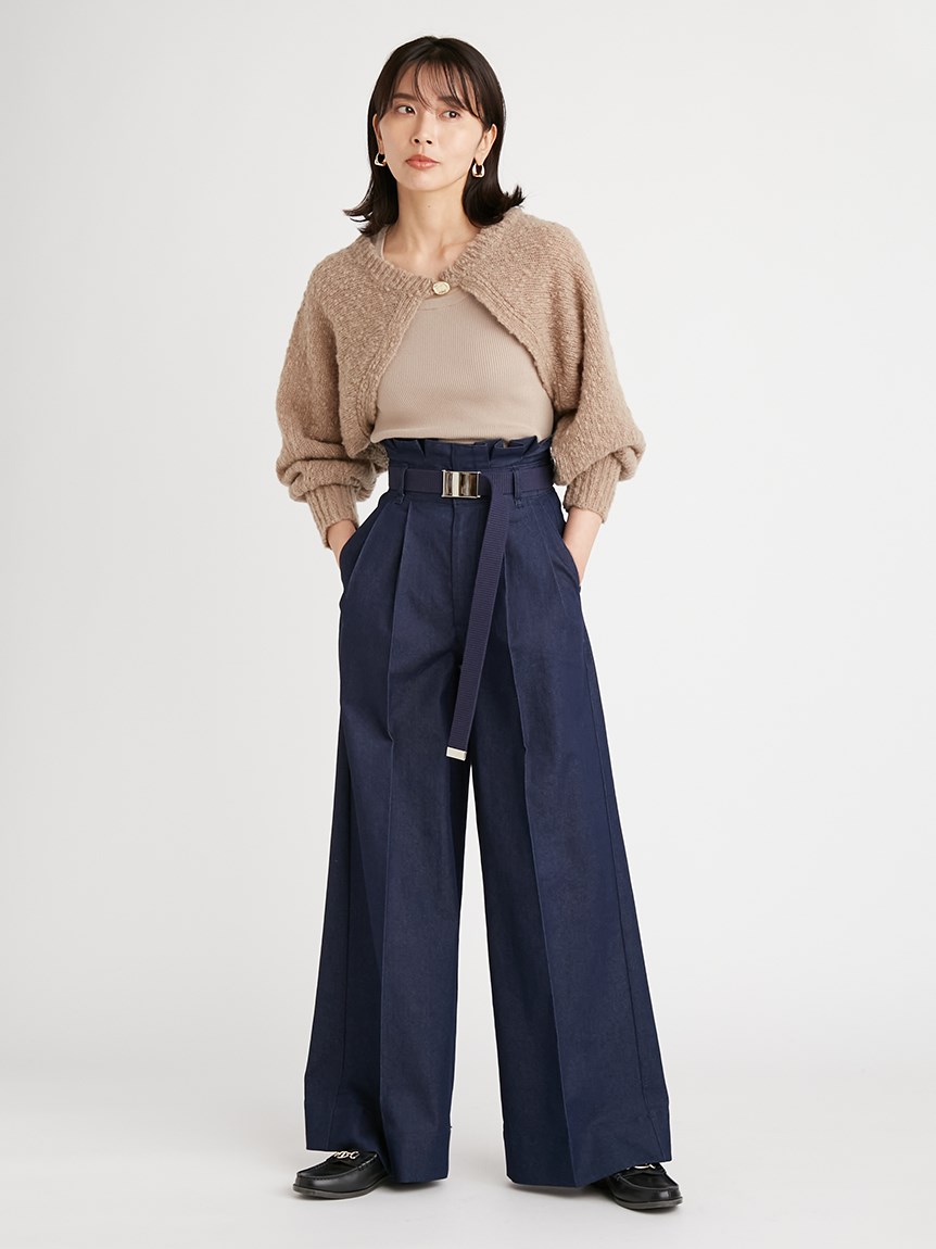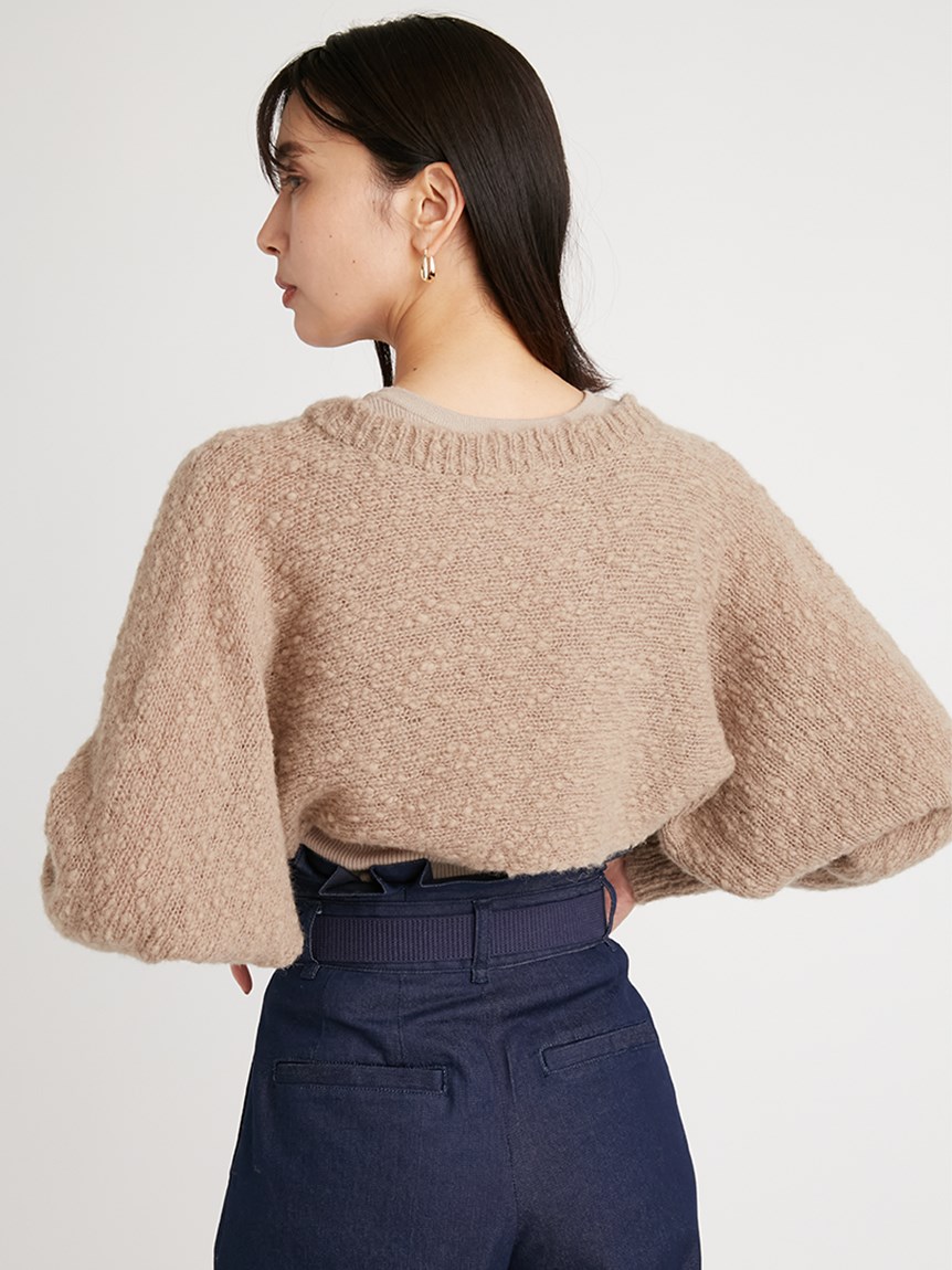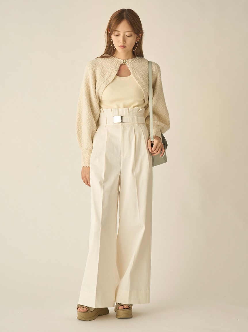 凸凹とした独特の表面感があるニット素材を使用したボレロカーディガン。セットになったニットタンクを合わせればデコルテに程よい開きができ、女性らしさがぐっと高まります。首元にあしらわれたデザインボタンがモードなアクセントに。それぞれ単品でも着られるので、コーディネートの幅が一気に広がります。