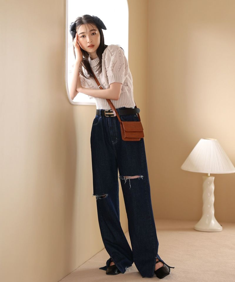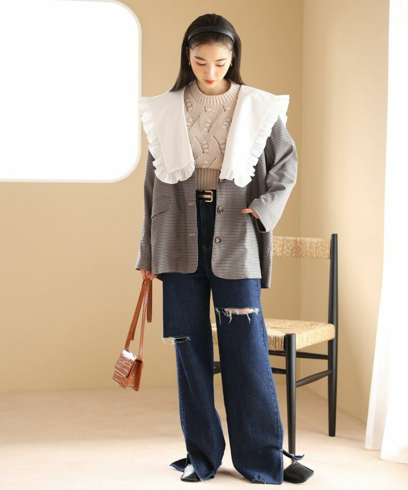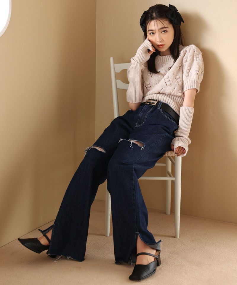甘めなニットには定番にデニム合わせが鉄板コーデ!