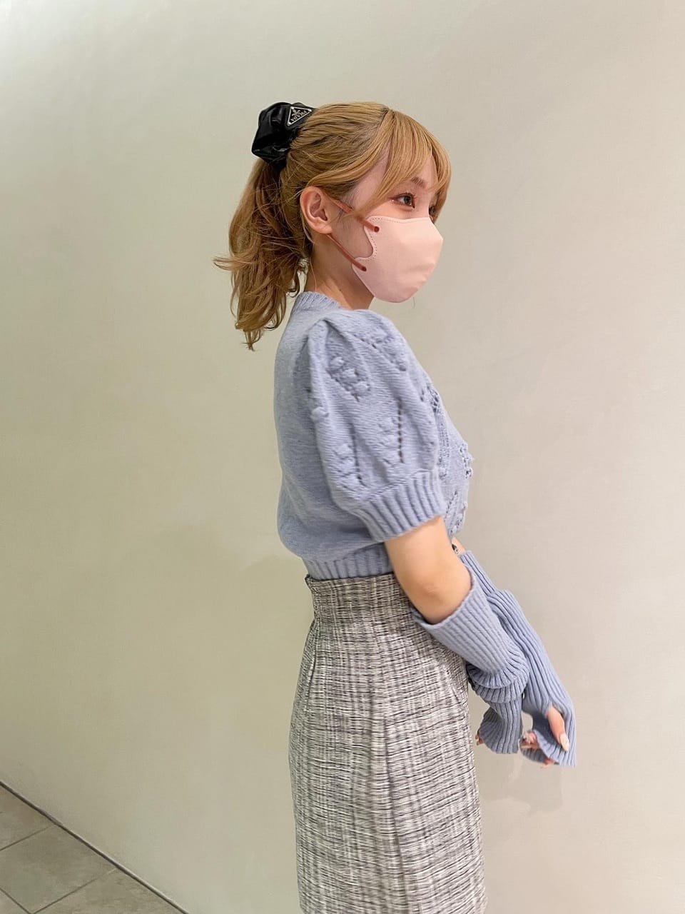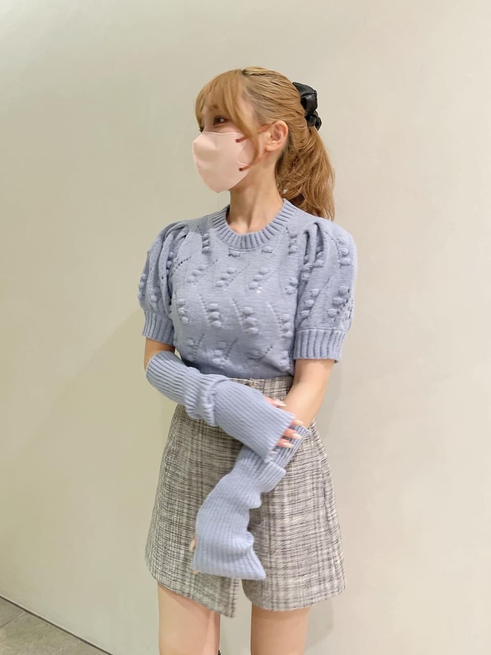 今期トレンドのアームウォーマーとニットトップスのセットアイテム
