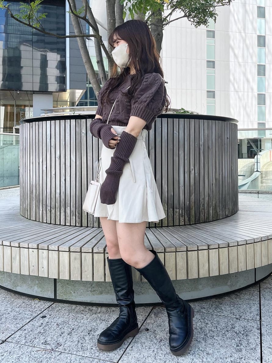 もちろんミニスカートにブーツ合わせもトレンドな着こなしでオススメ。