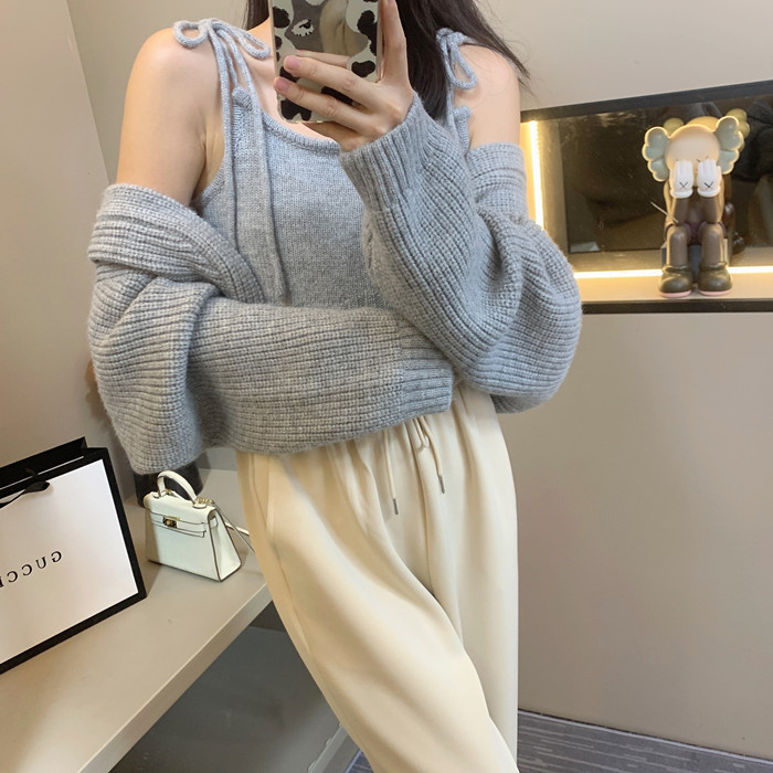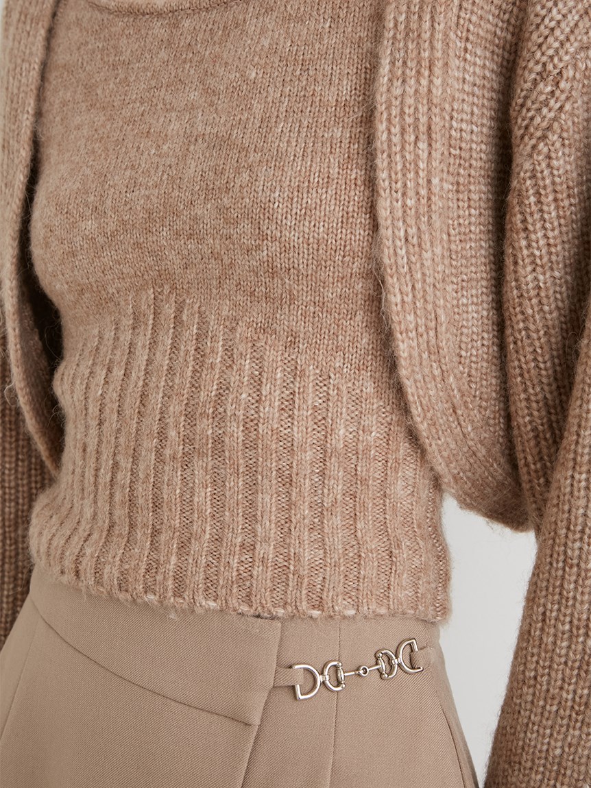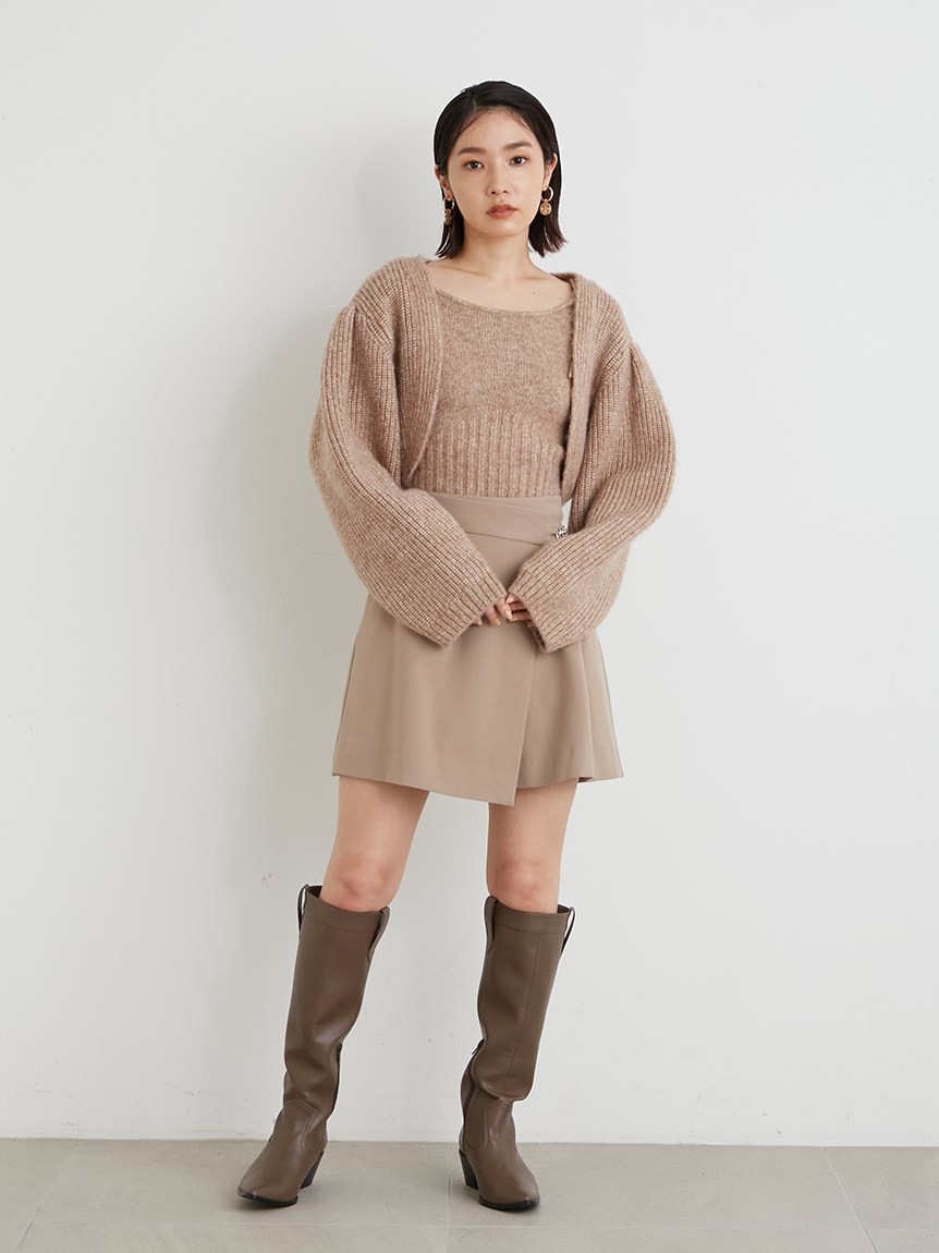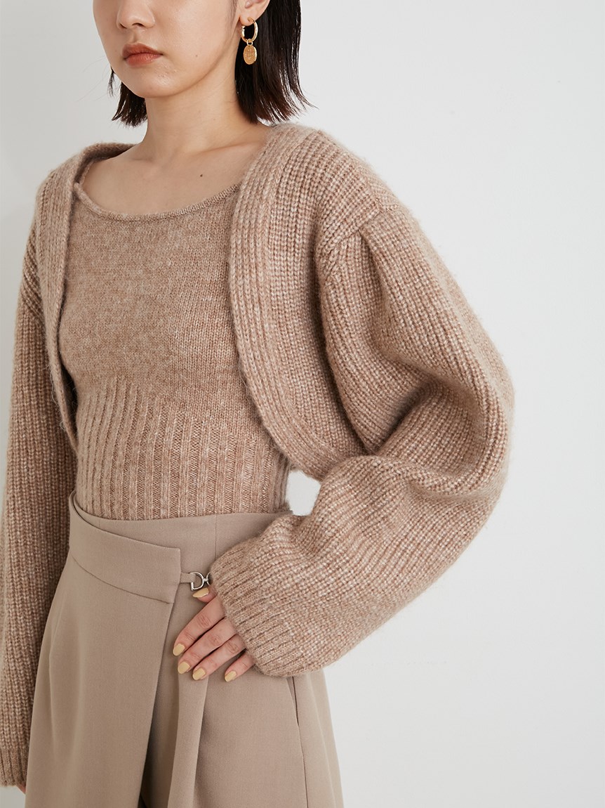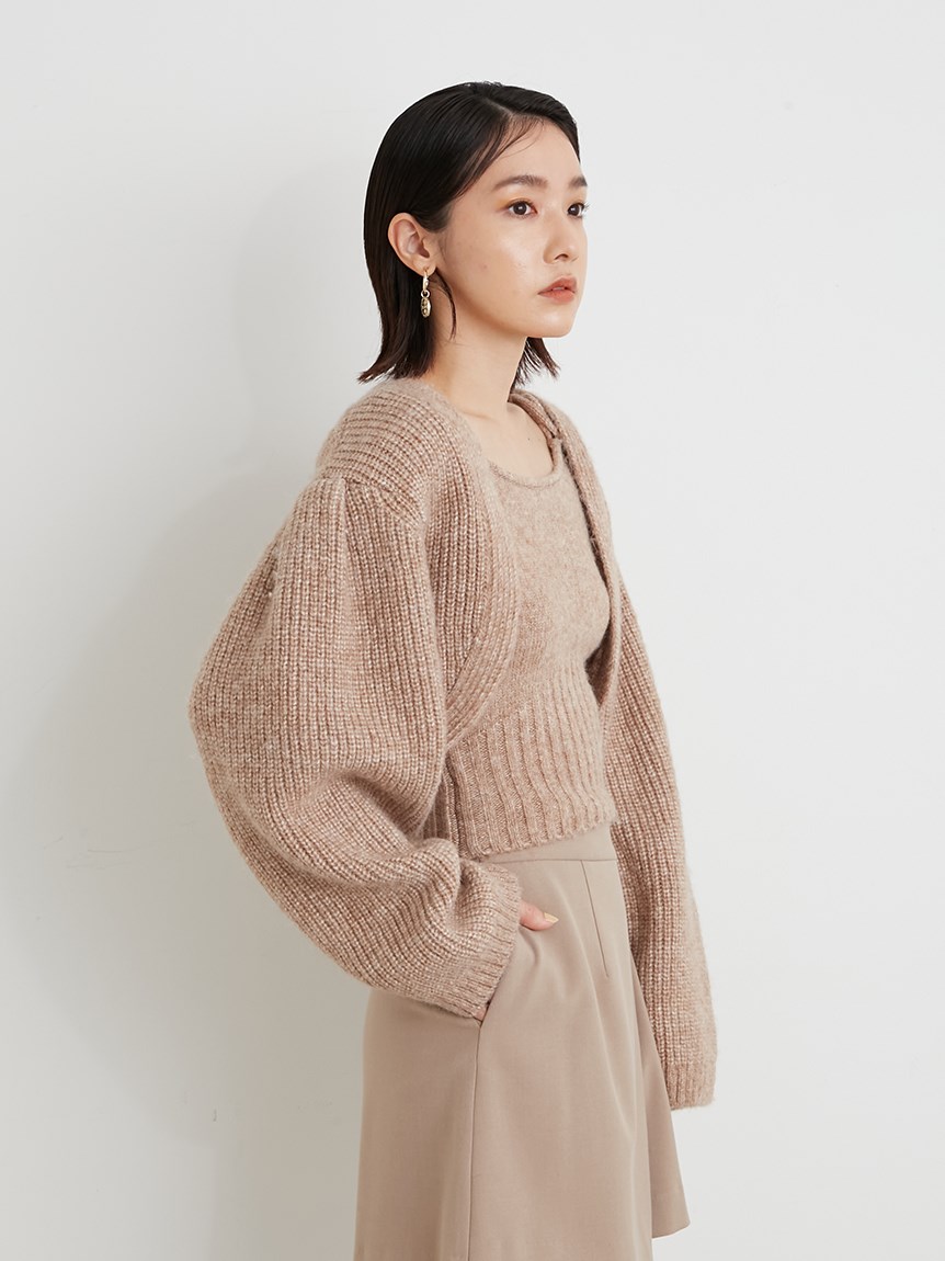 秋冬のスタイリングに欠かせないボレロカーディガンとニットキャミソールの万能アンサンブル。キャミソールは肩紐を女性らしいリボンディテールにしているので、お好みの位置で結ぶことが可能。ボレロはルーズにゆるっと着られるサイズ感で、程よい抜け感を与えてくれます。それぞれ別々でもお使い頂け、幅広いコーディネートに活躍するアイテムです。