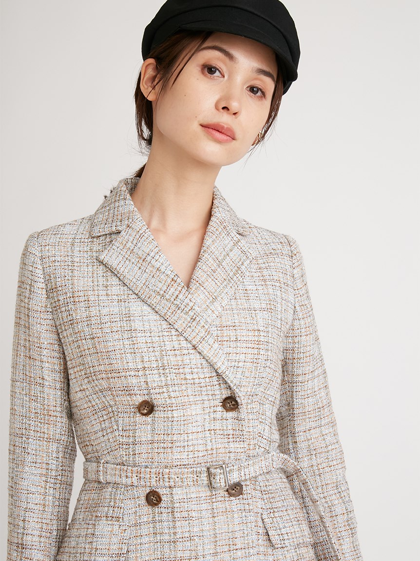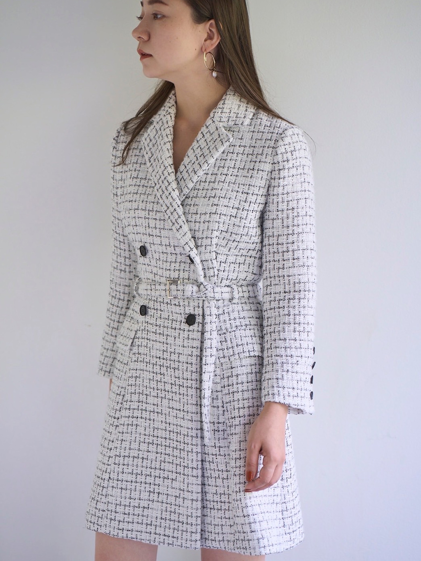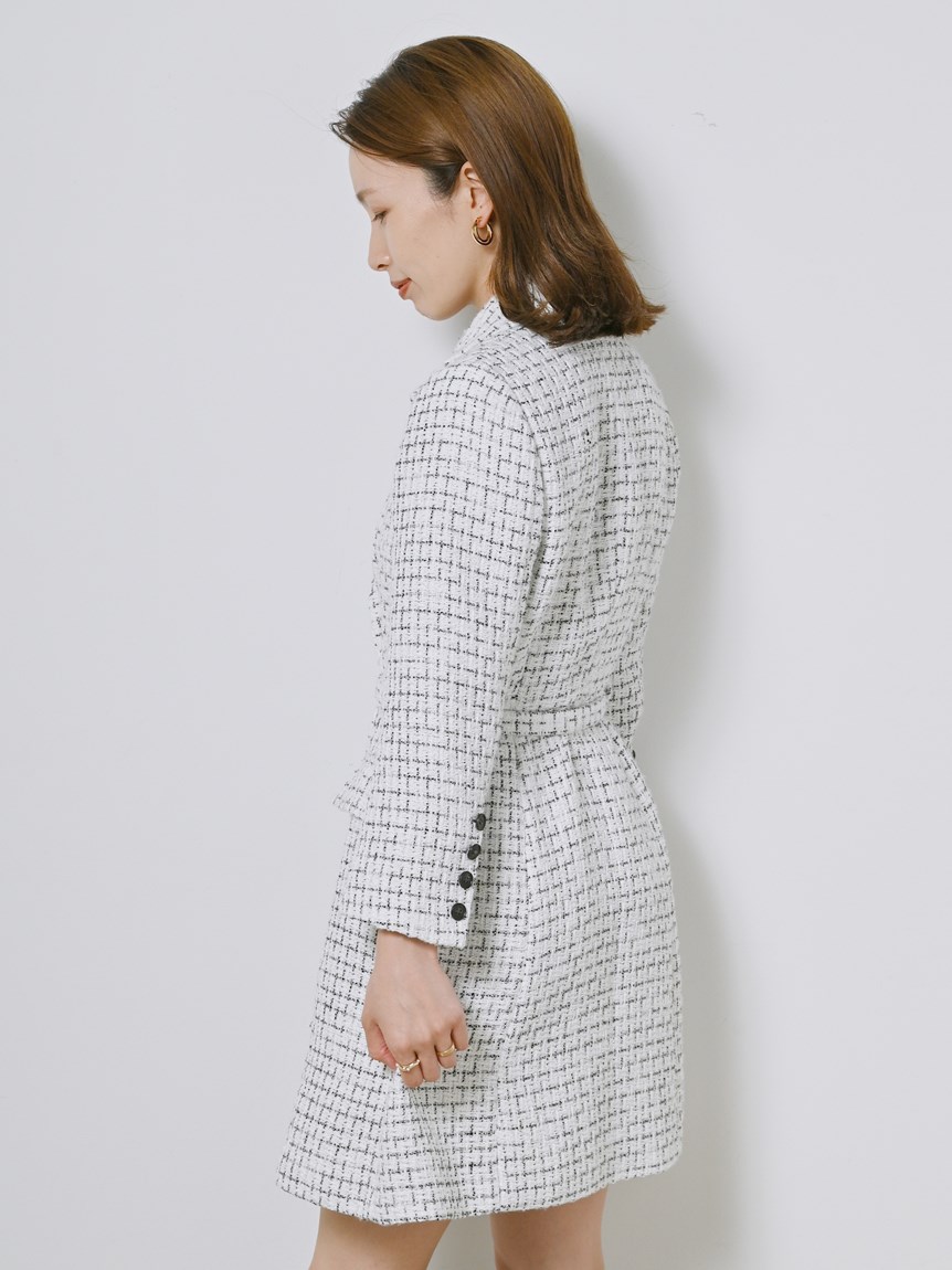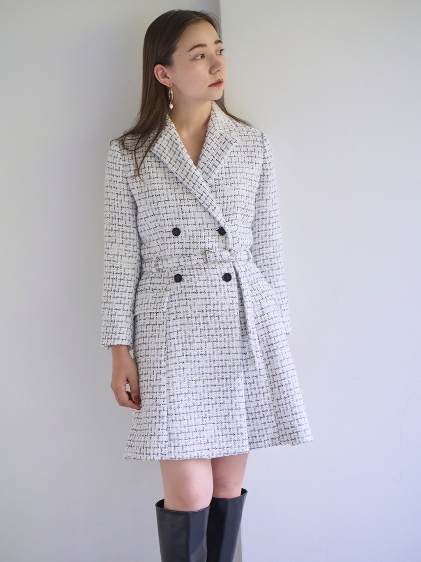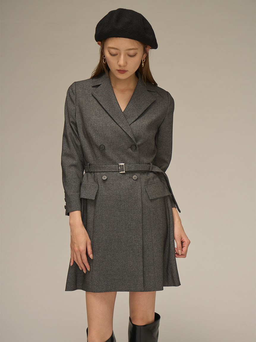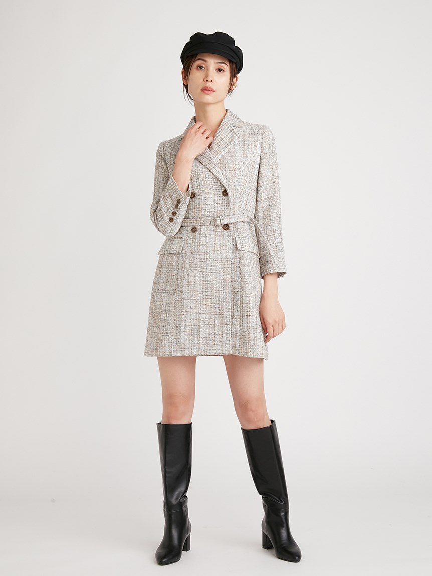 ジャケットのディテールを取り入れハンサムなルックスに仕上げた、トレンド感溢れるミニワンピース。女性らしさが際立つように、立体感のある構築的なシルエットを作り上げました。付属のベルトでウエストをマークすることでメリハリ感をプラス。フロントの飾りボタンに加え、打掛ボタンを備えているので裾が広がることがなく、安心して着用いただけます。