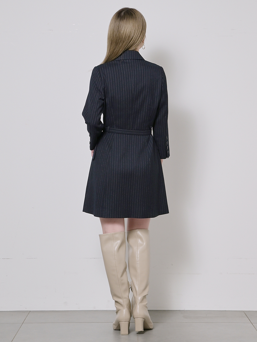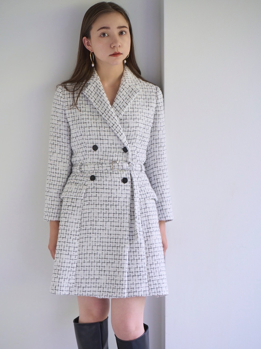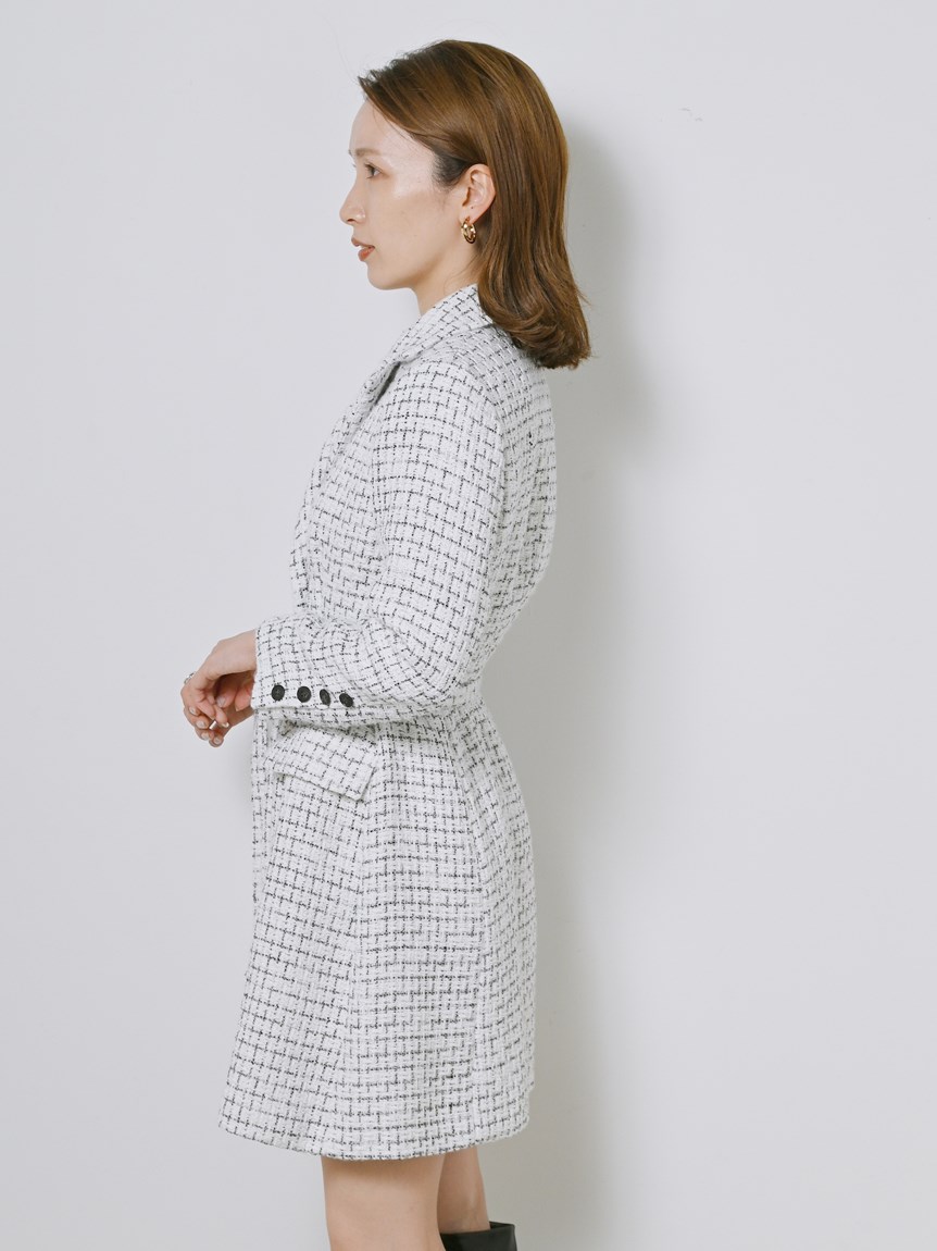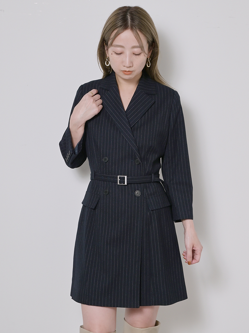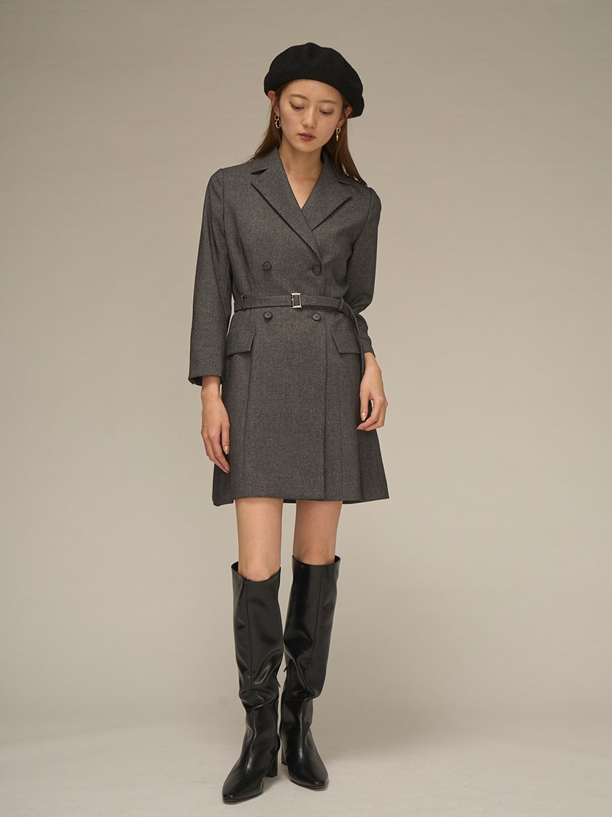ジャケットのディテールを取り入れハンサムなルックスに仕上げた、トレンド感溢れるミニワンピース。女性らしさが際立つように、立体感のある構築的なシルエットを作り上げました。付属のベルトでウエストをマークすることでメリハリ感をプラス。フロントの飾りボタンに加え、打掛ボタンを備えているので裾が広がることがなく、安心して着用いただけます。