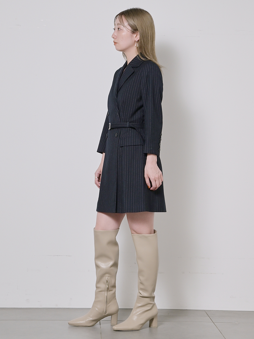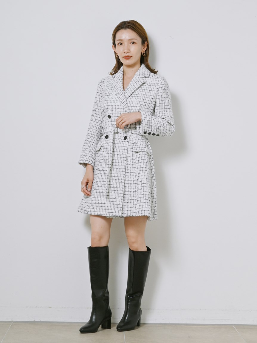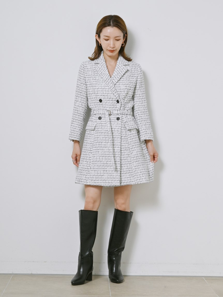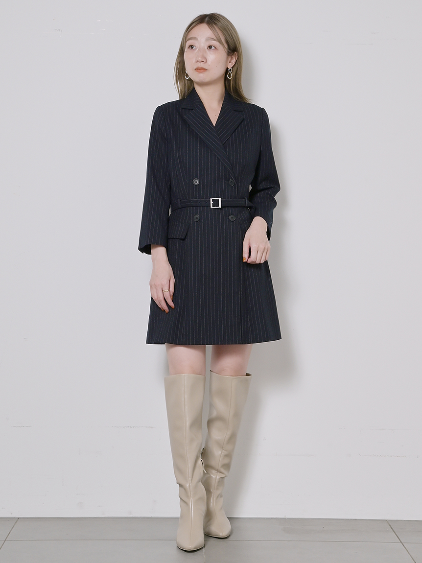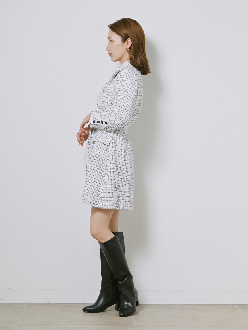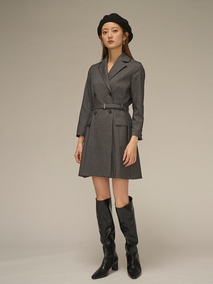 ジャケットのディテールを取り入れハンサムなルックスに仕上げた、トレンド感溢れるミニワンピース。女性らしさが際立つように、立体感のある構築的なシルエットを作り上げました。付属のベルトでウエストをマークすることでメリハリ感をプラス。フロントの飾りボタンに加え、打掛ボタンを備えているので裾が広がることがなく、安心して着用いただけます。