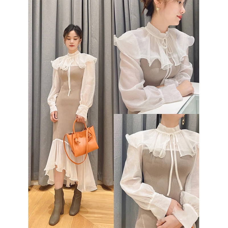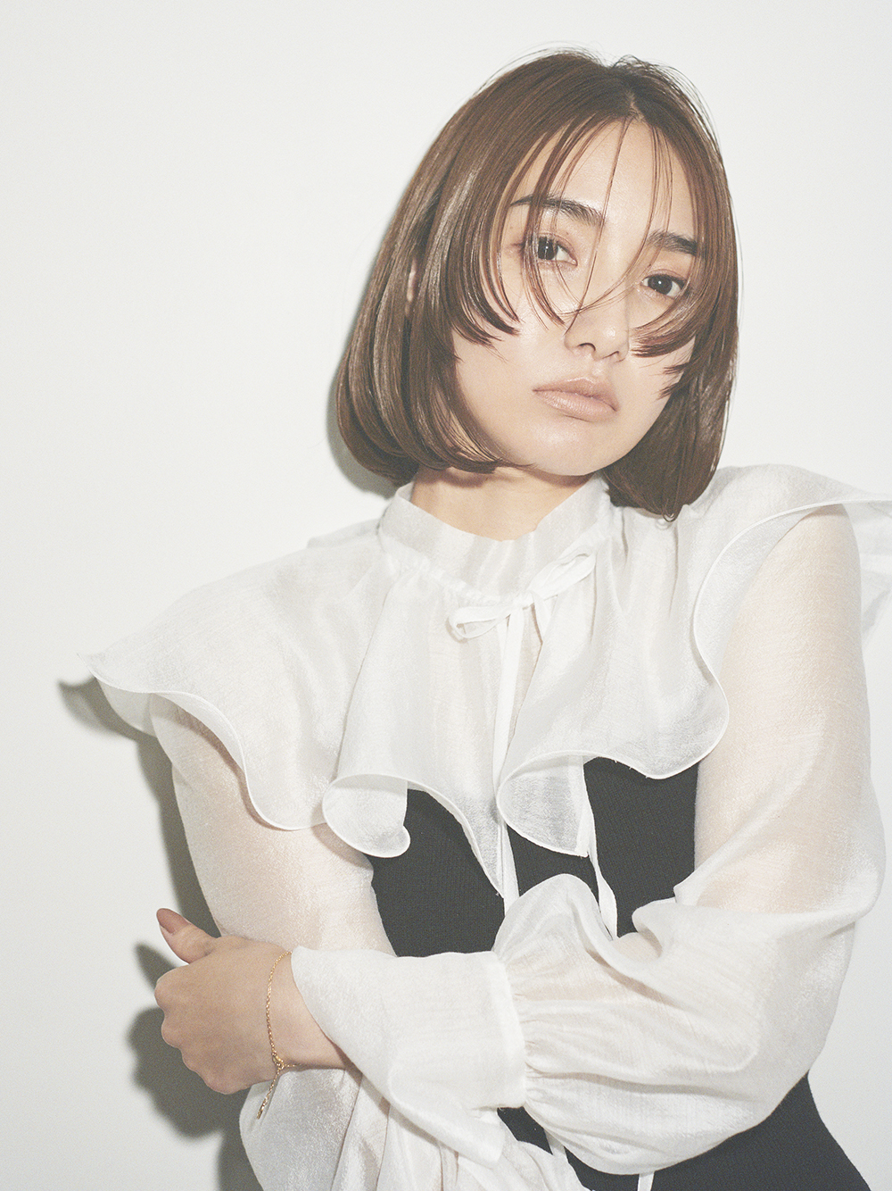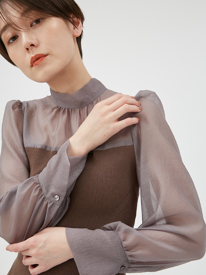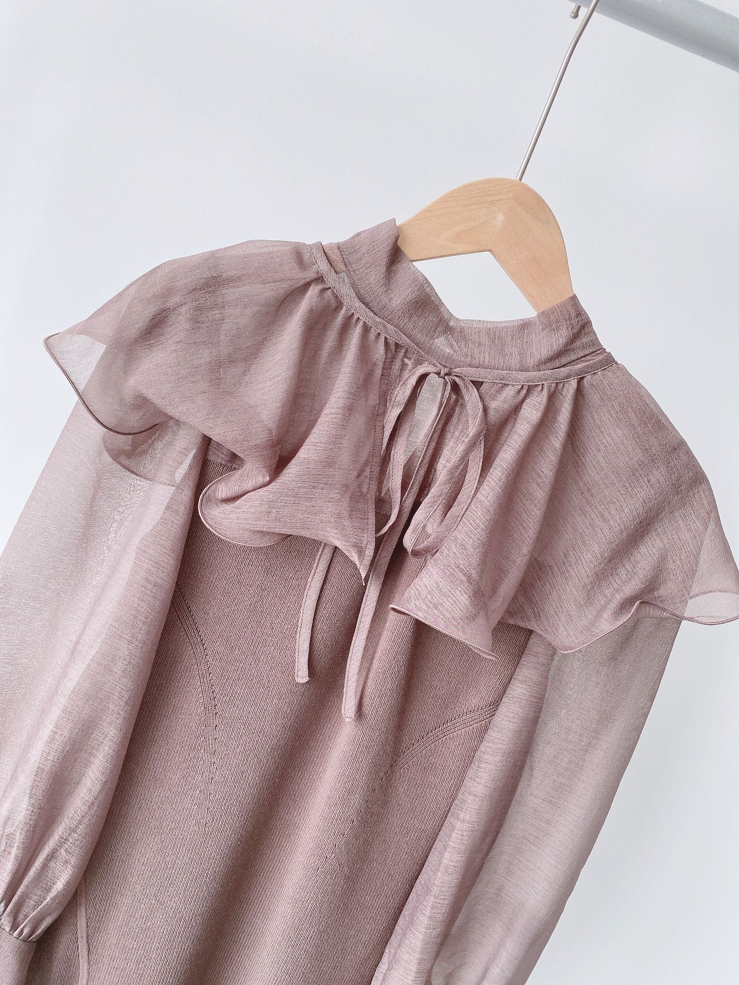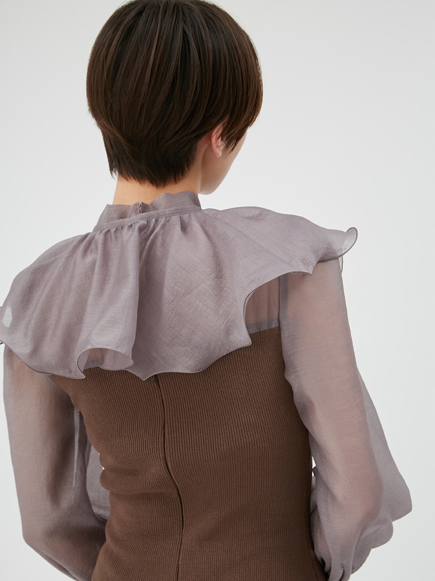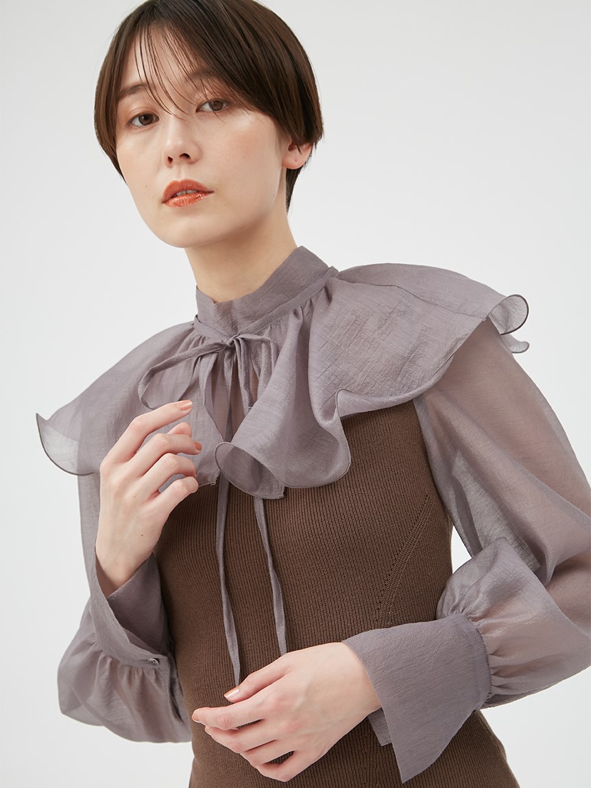 ラッフルカラー(襟)は取り外しでき、ハイネックのデザインに表情が変わるので、シチュエーションに応じてアレンジ可能です。