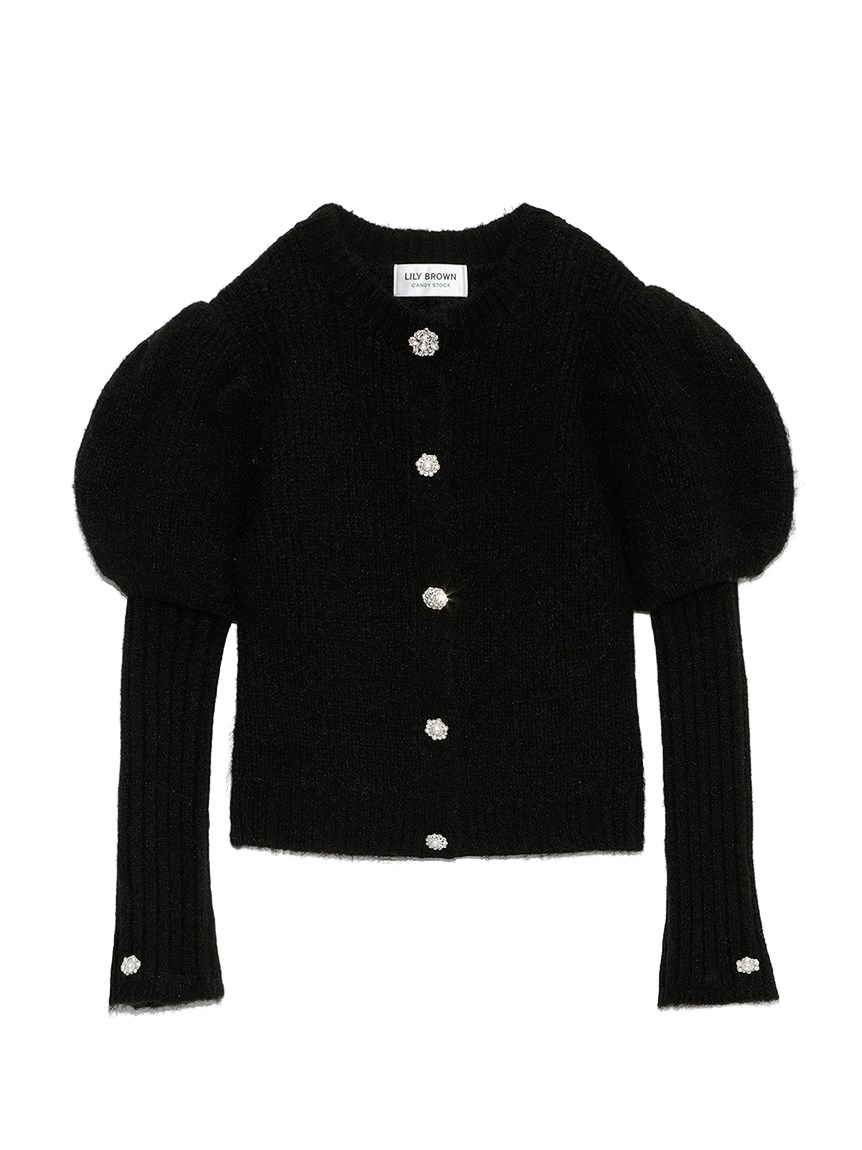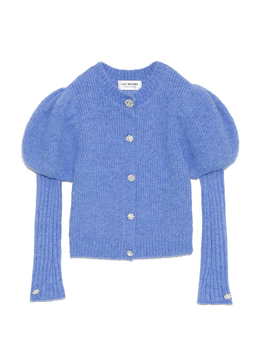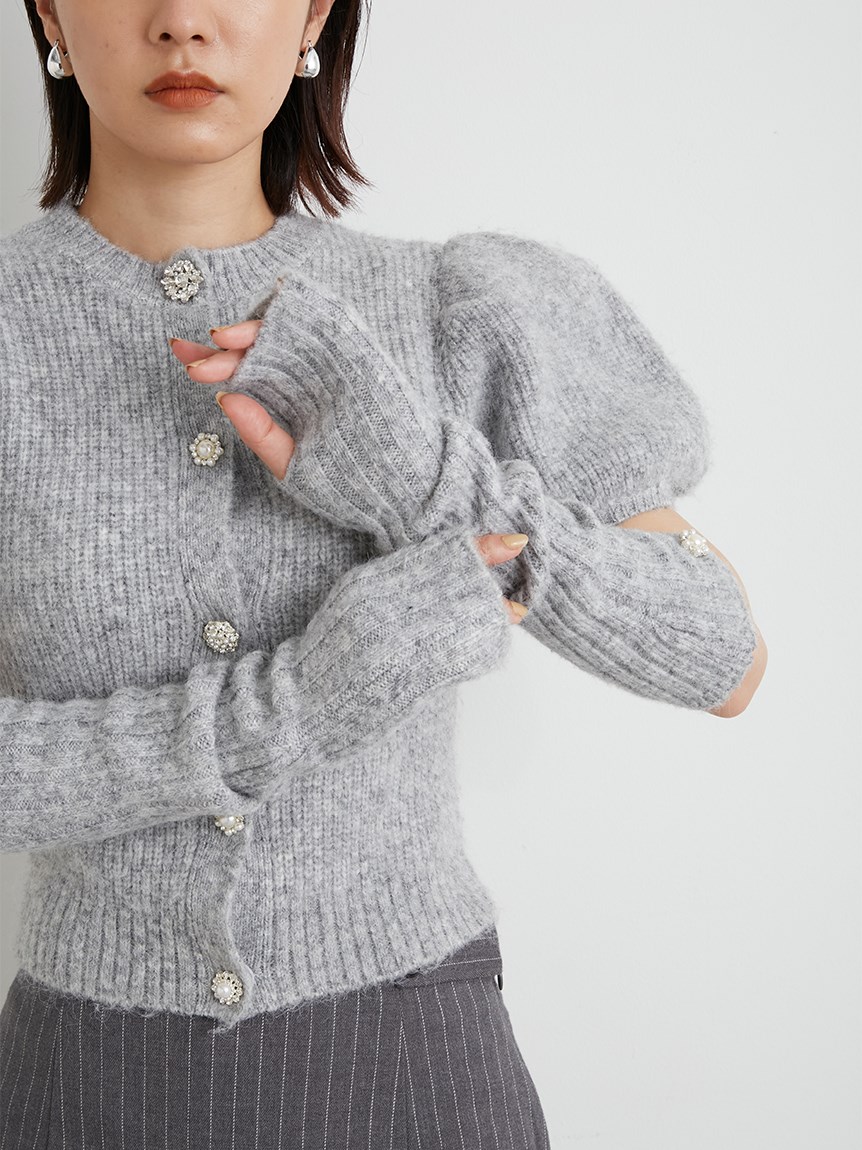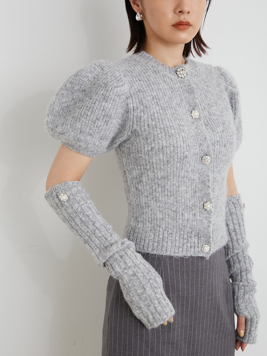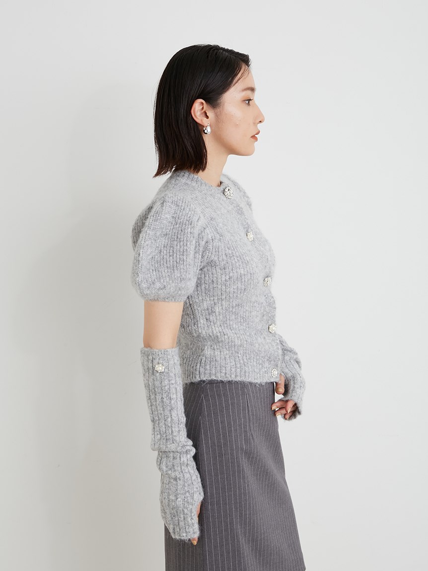 アームウォーマー付ビジューニットカーディガン