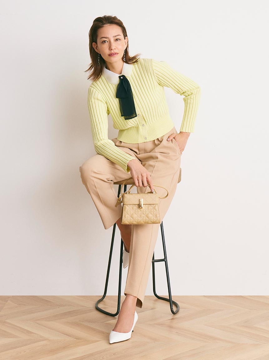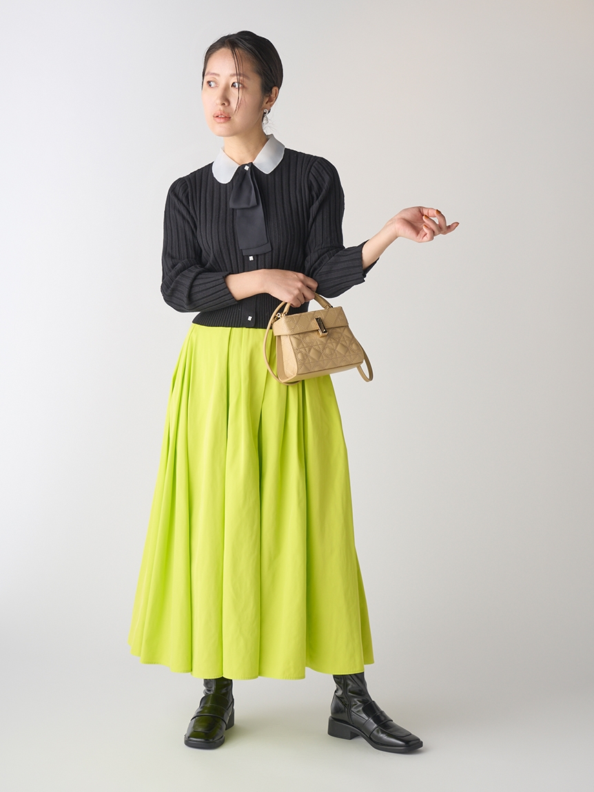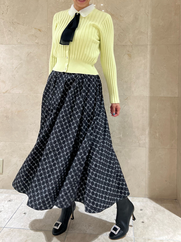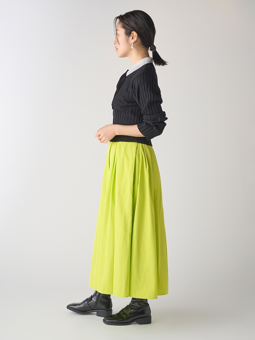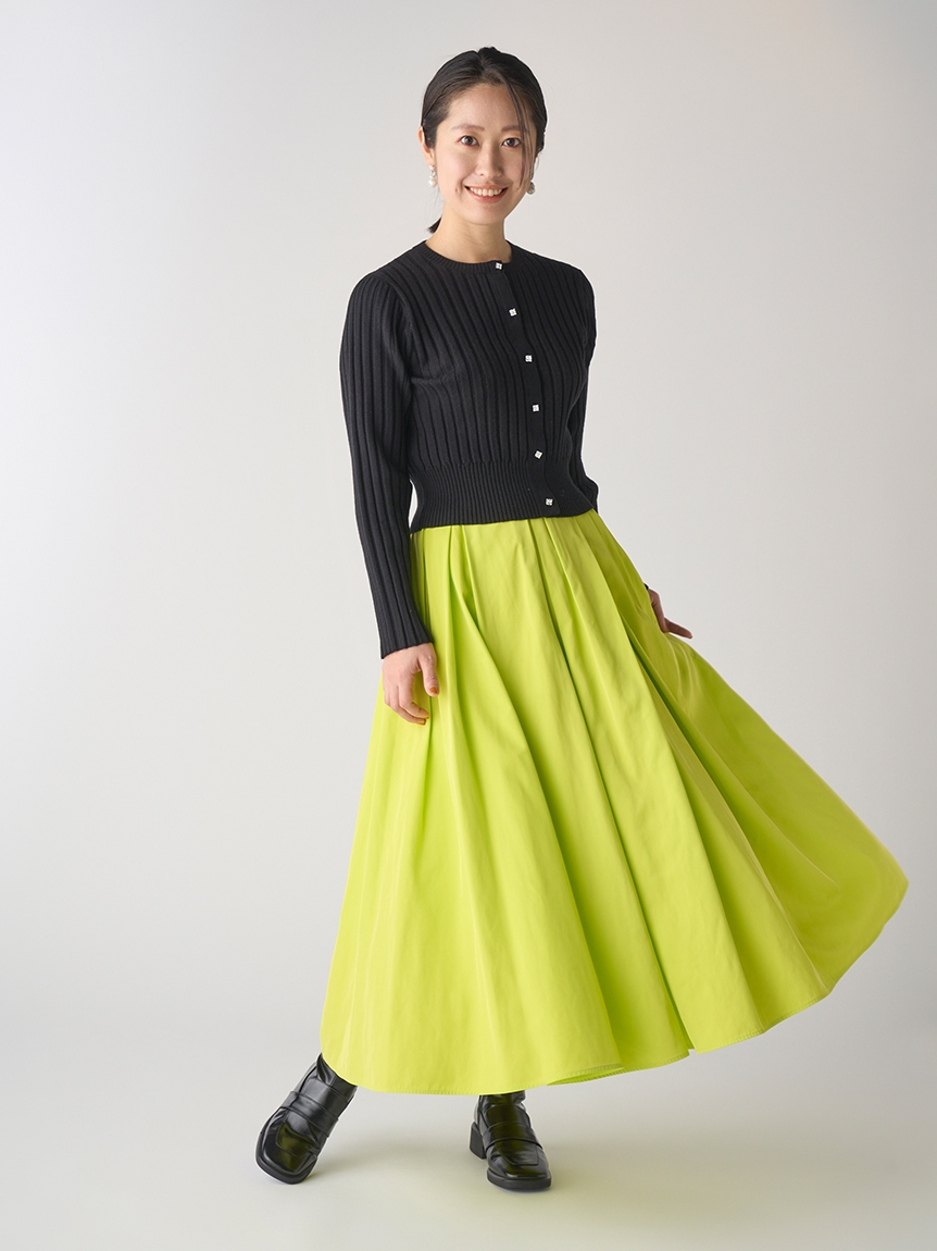 丈感はスカートでもパンツでも合わせやすい程よい丈感で裾はリブ編みで少しフィットする仕様になっています。