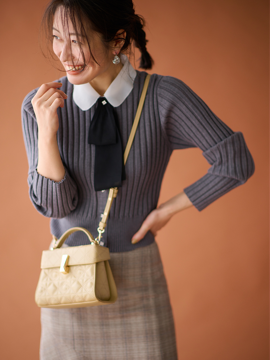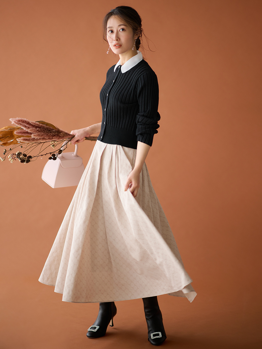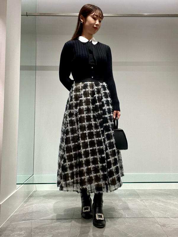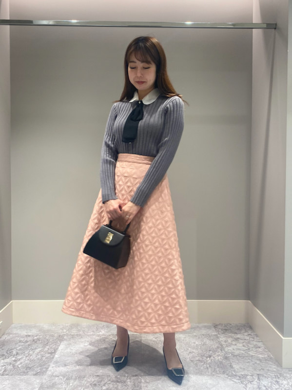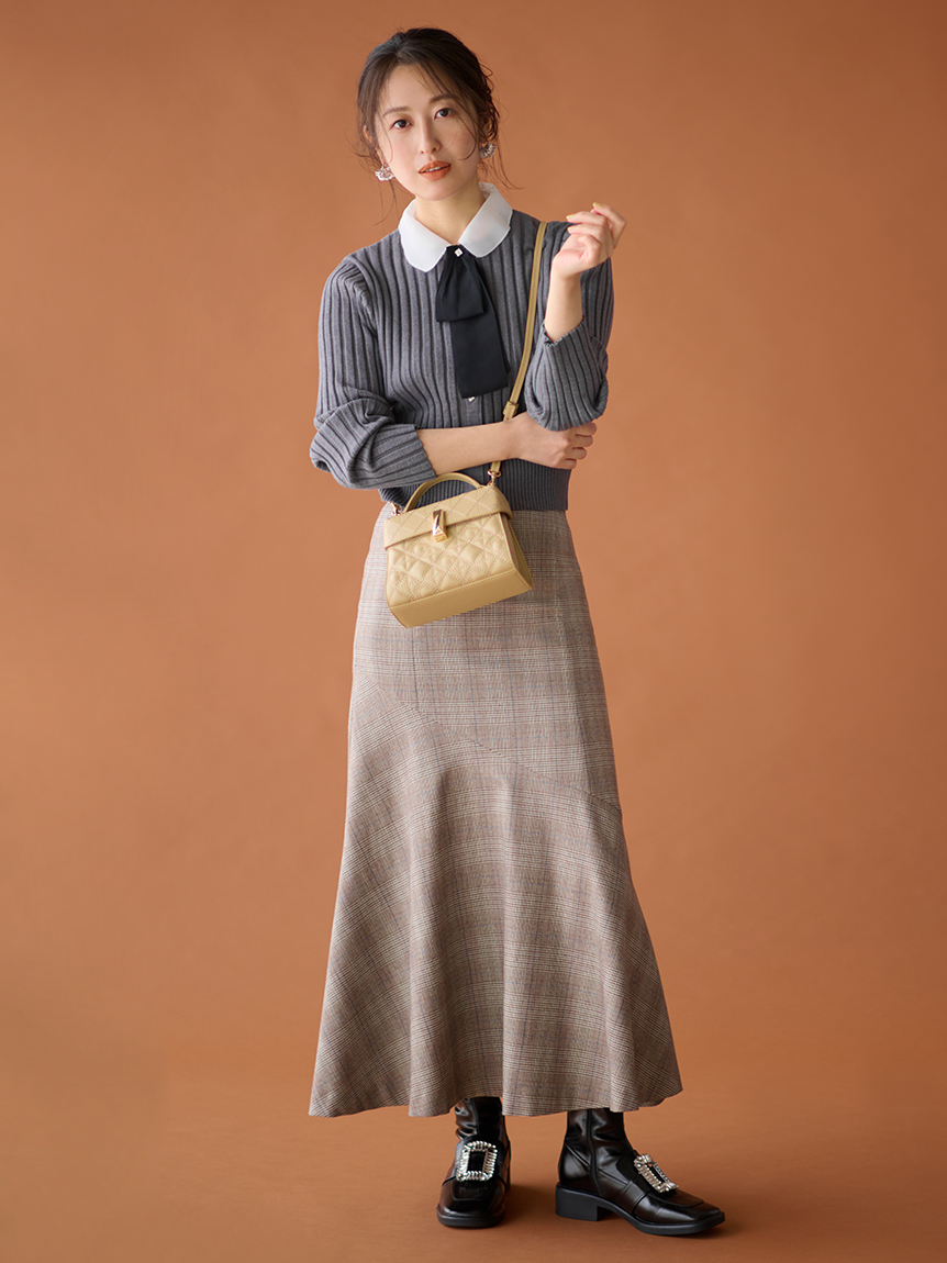 丈感はスカートでもパンツでも合わせやすい程よい丈感で裾はリブ編みで少しフィットする仕様になっています。