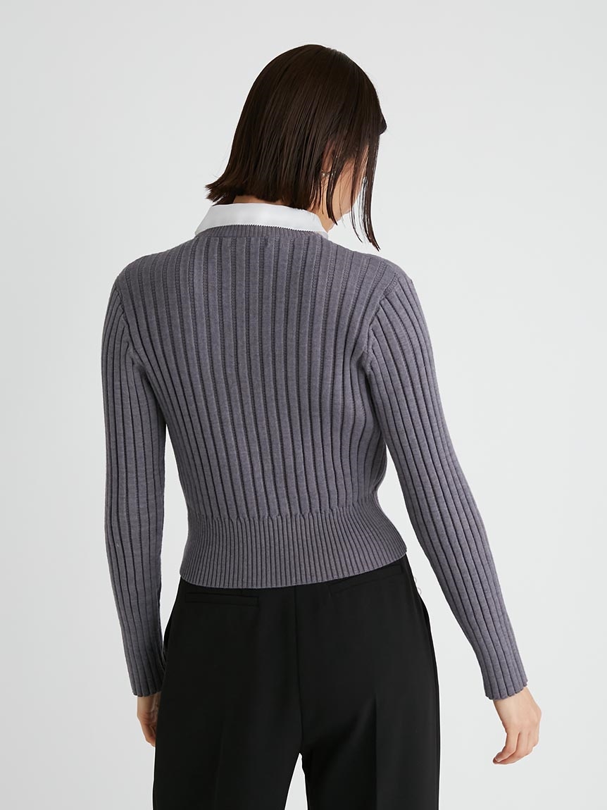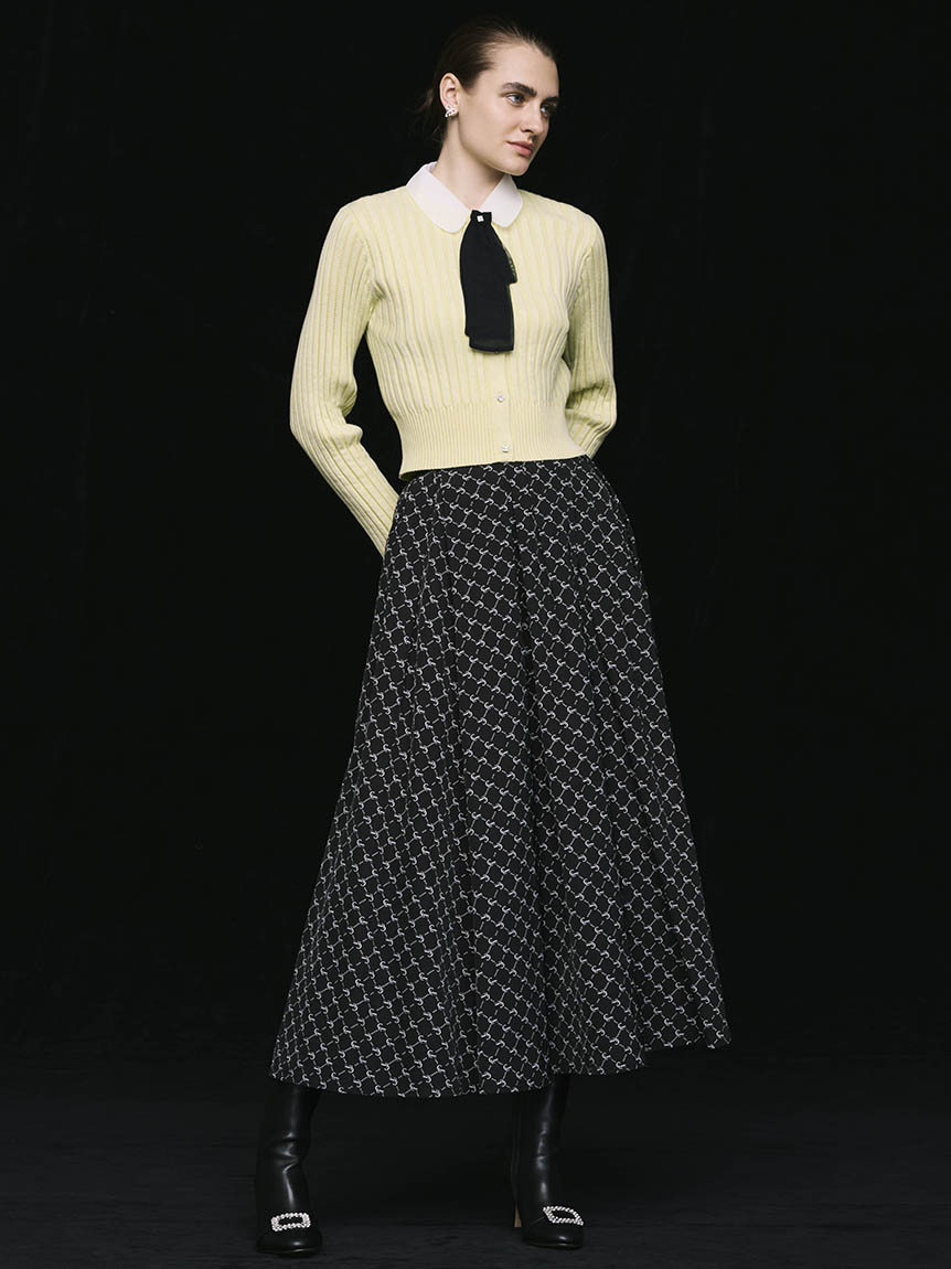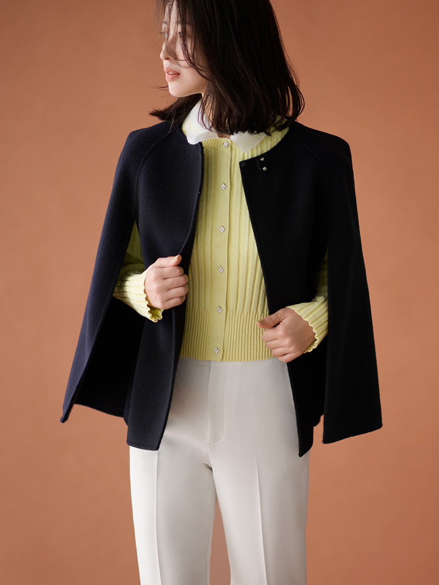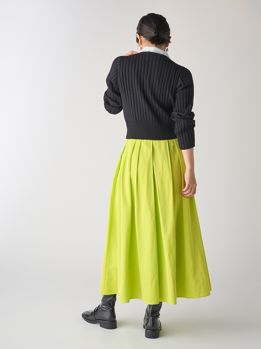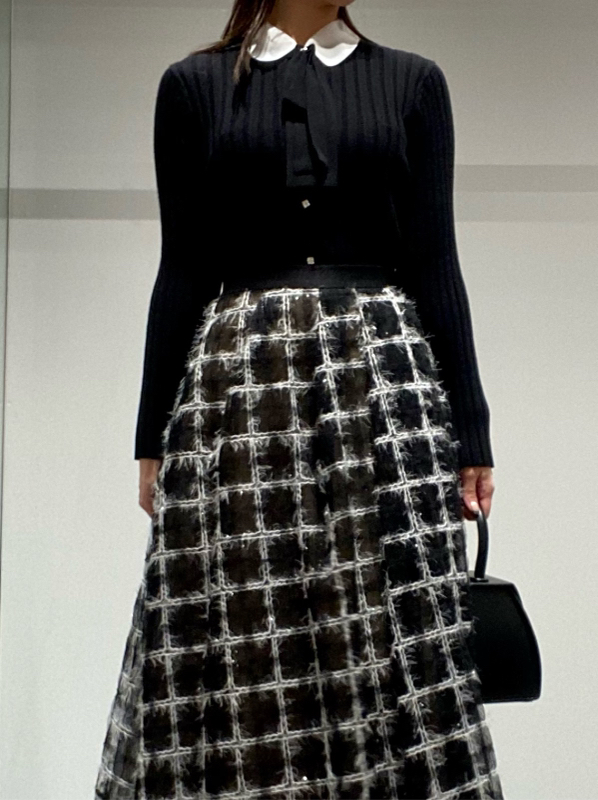 丈感はスカートでもパンツでも合わせやすい程よい丈感で裾はリブ編みで少しフィットする仕様になっています。