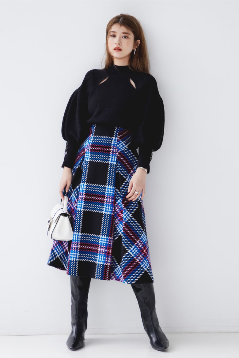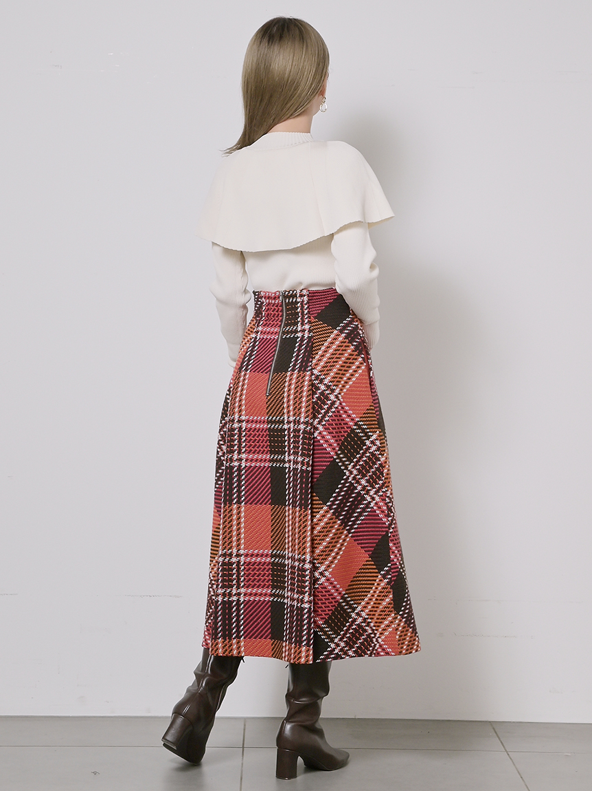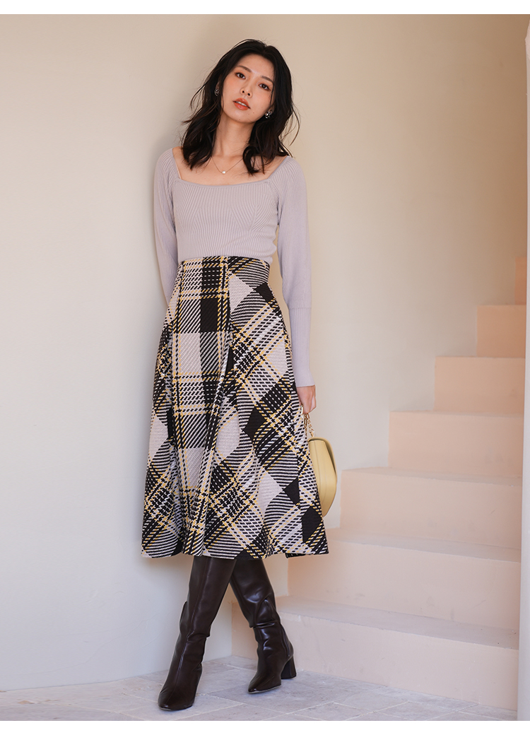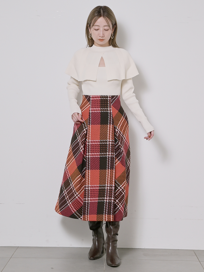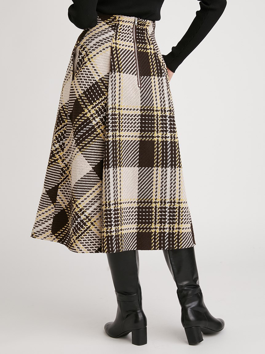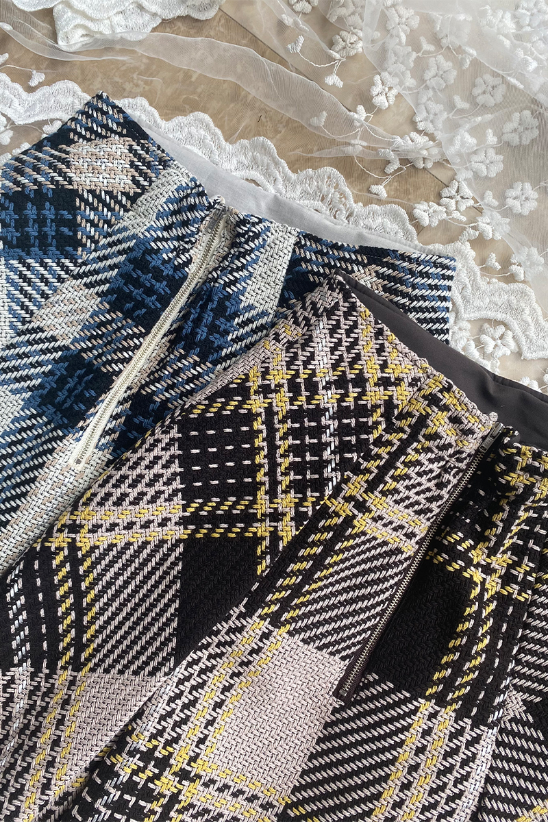 「SNIDEL」定番のロービングチェックスカート。昨シーズンより丈をやや短くし今年らしくアップデートしました。シーズンムード溢れるクラシカルなルックスがスタイリングの品格を高める1着です。両サイドにタックを効かせ女性らしい立体的なフレアシルエットをメイク。トップスをインしてもすっきりと着こなせるハイウエスト仕様で、スタイルアップ効果も期待できます。