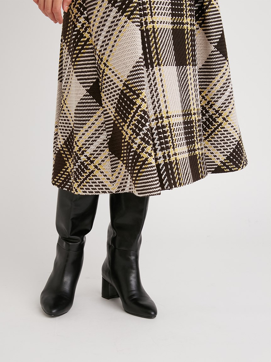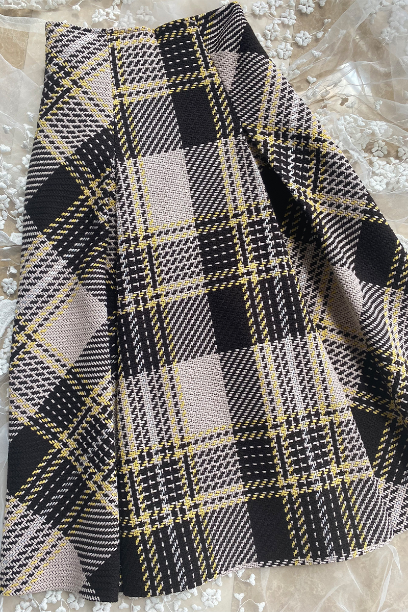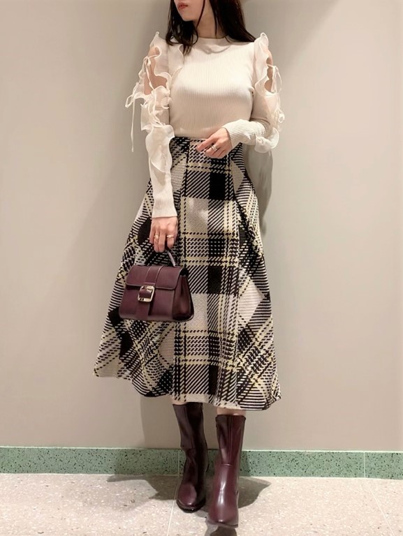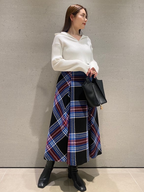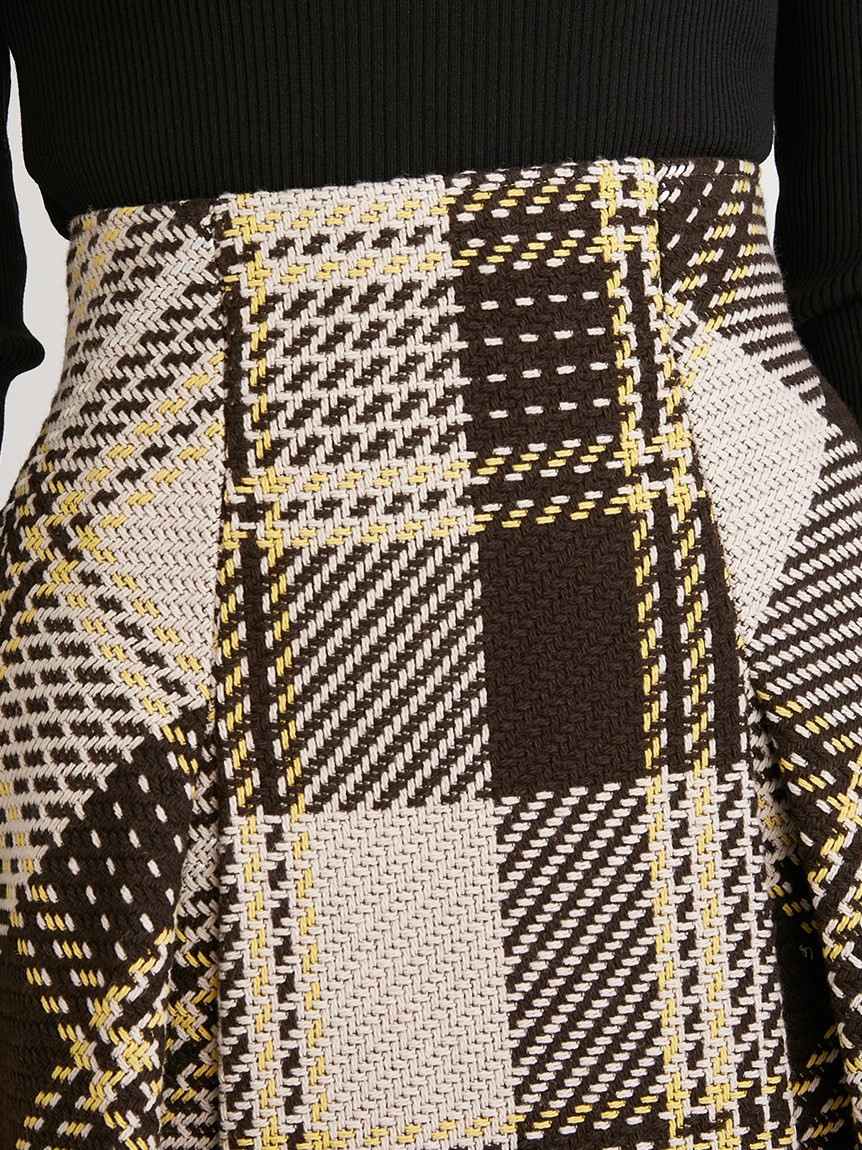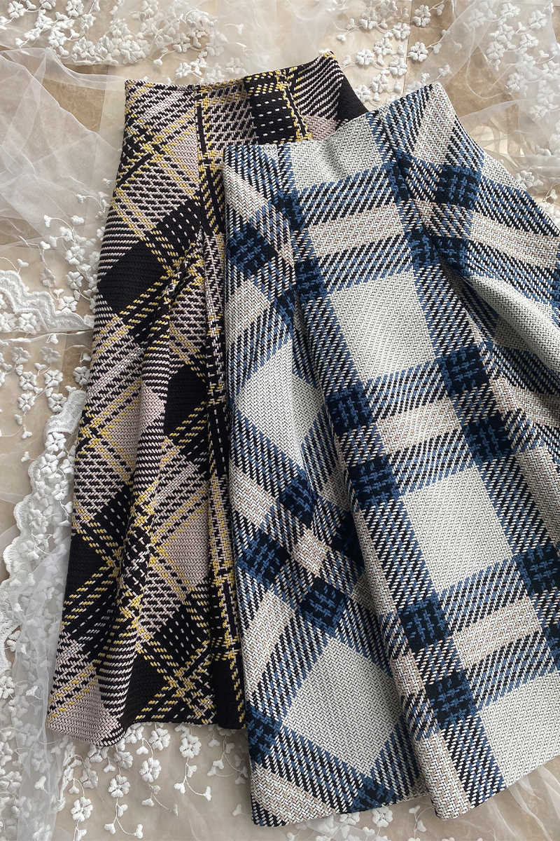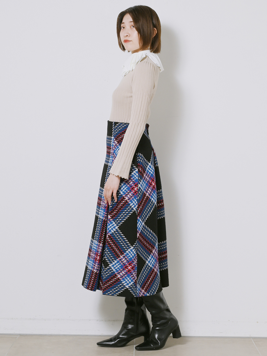 「SNIDEL」定番のロービングチェックスカート。昨シーズンより丈をやや短くし今年らしくアップデートしました。シーズンムード溢れるクラシカルなルックスがスタイリングの品格を高める1着です。両サイドにタックを効かせ女性らしい立体的なフレアシルエットをメイク。トップスをインしてもすっきりと着こなせるハイウエスト仕様で、スタイルアップ効果も期待できます。