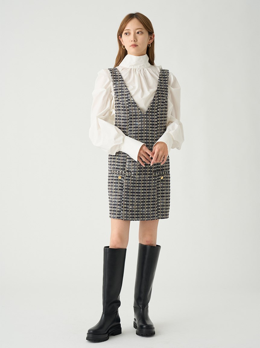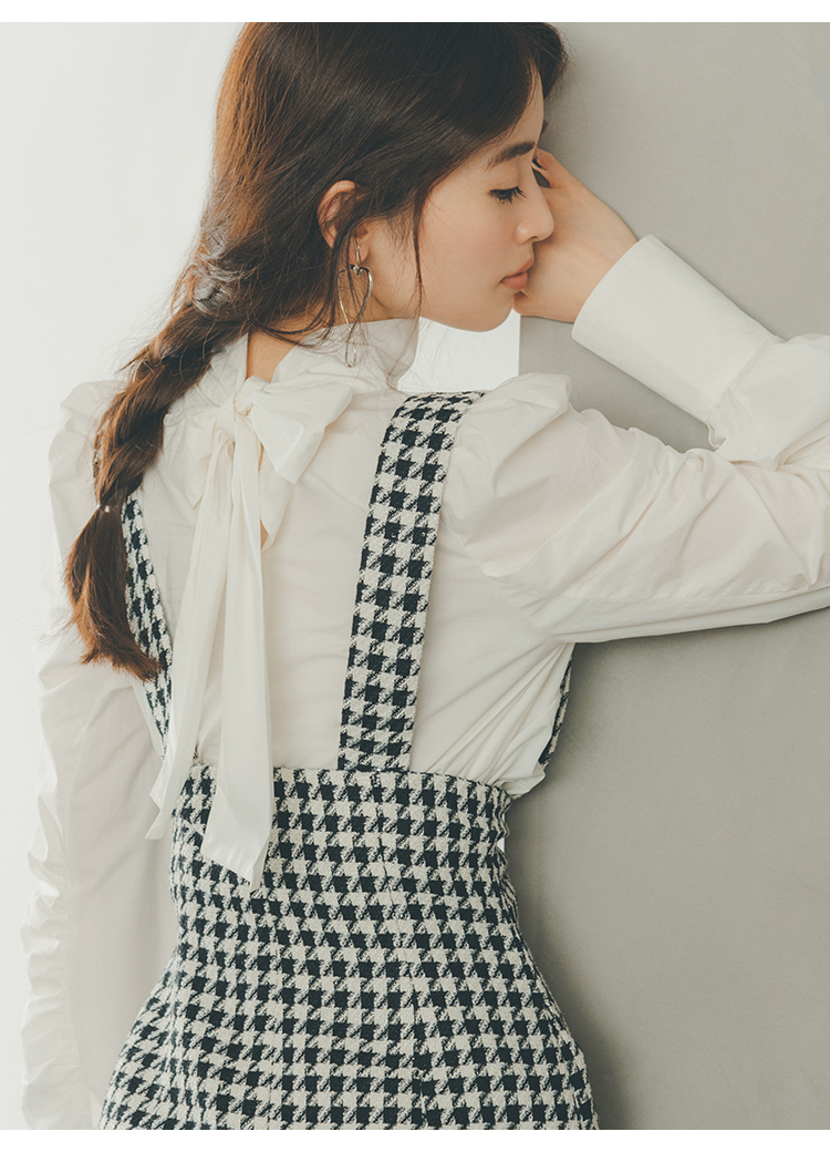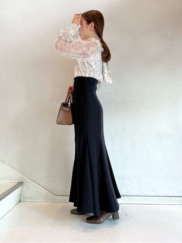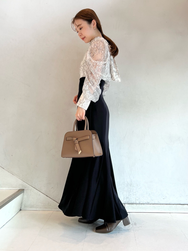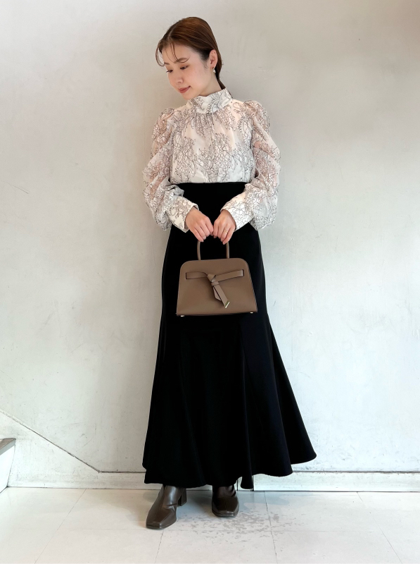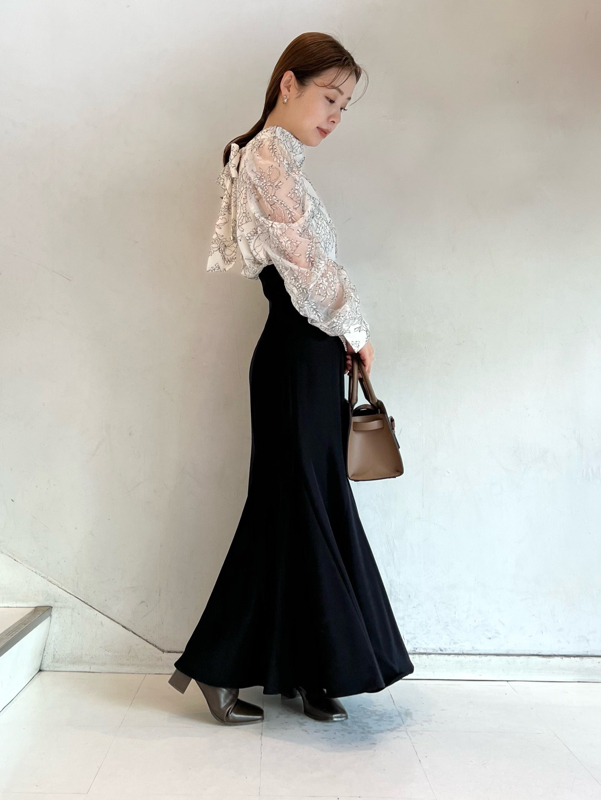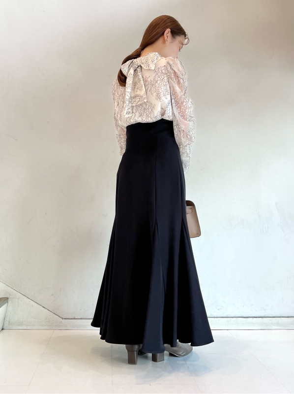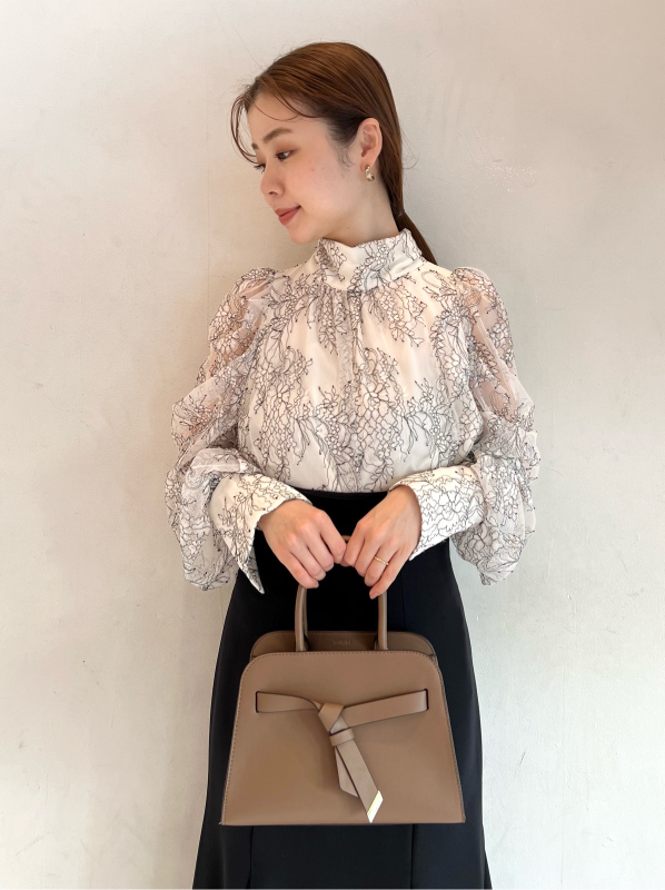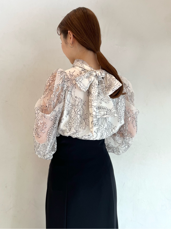 バックネックで結んだ大きなリボンが目を引く、クラシカルレディなブラウス。巧みなタックワークで形成されたボリュームスリーブが、華やかさとモード感をプラスしています。裾は微ショート丈に仕上げることで、ボトムスにインでもアウトでもバランス良く決まるよう設計。ジャンスカからパンツまで合わせるボトムを選ばないので幅広く活躍してくれます。