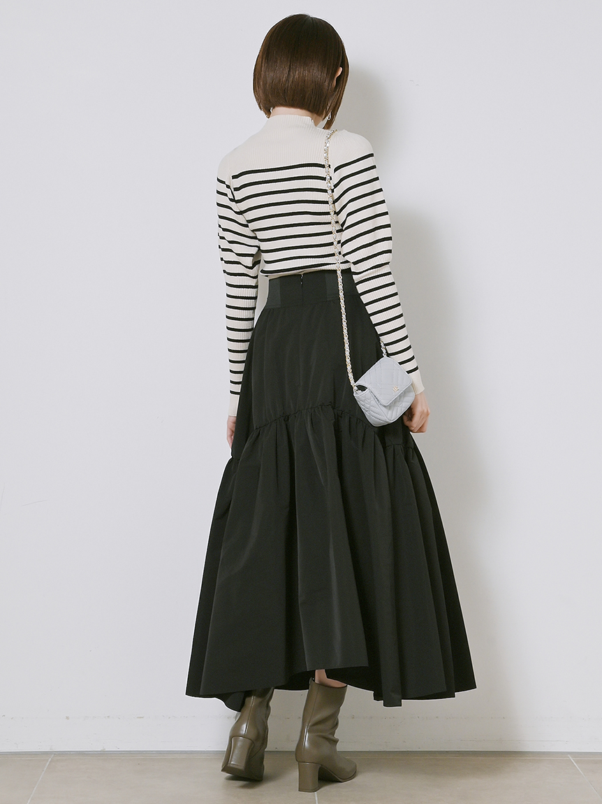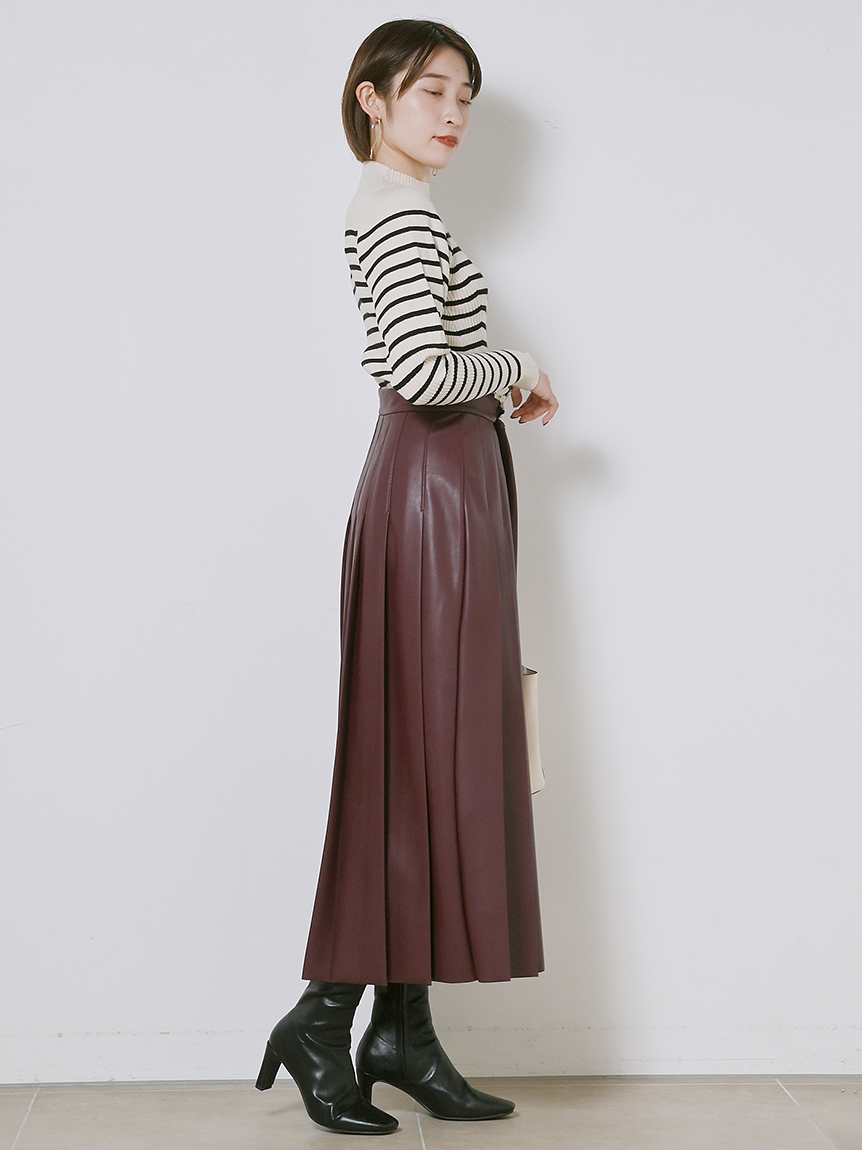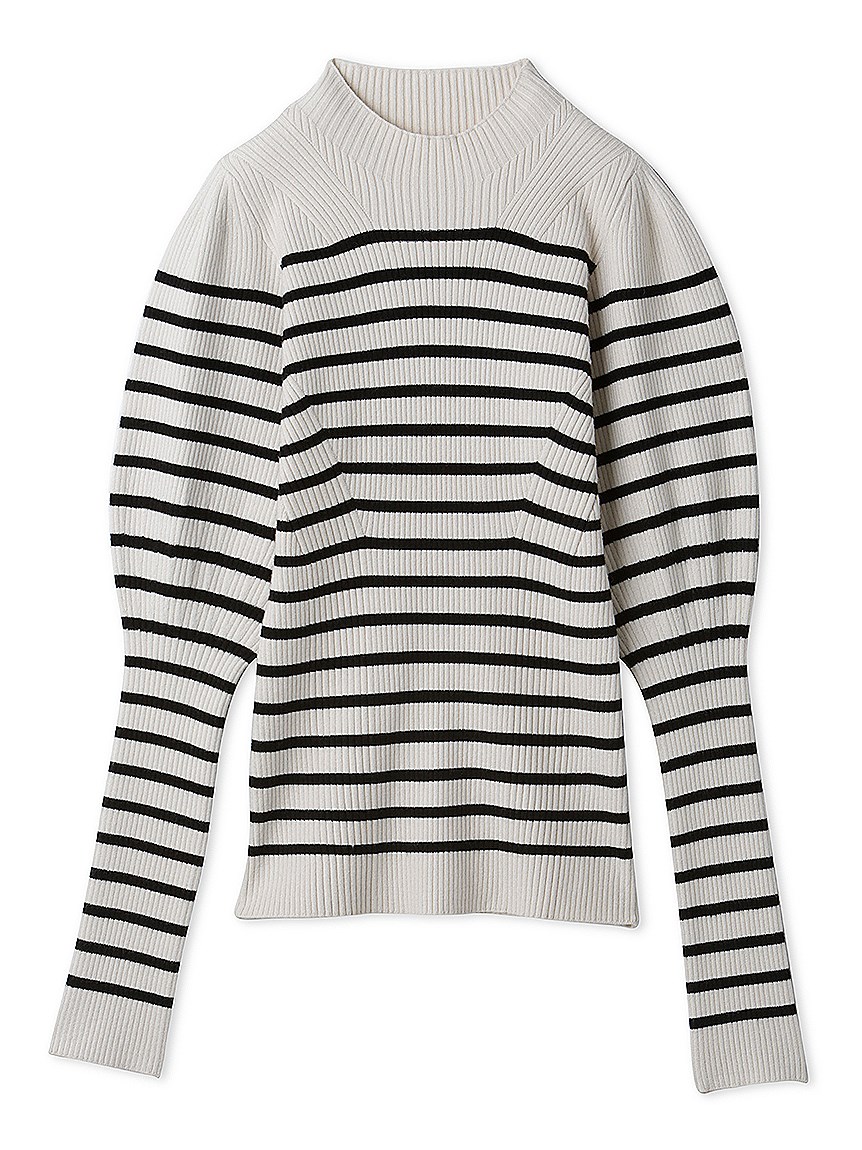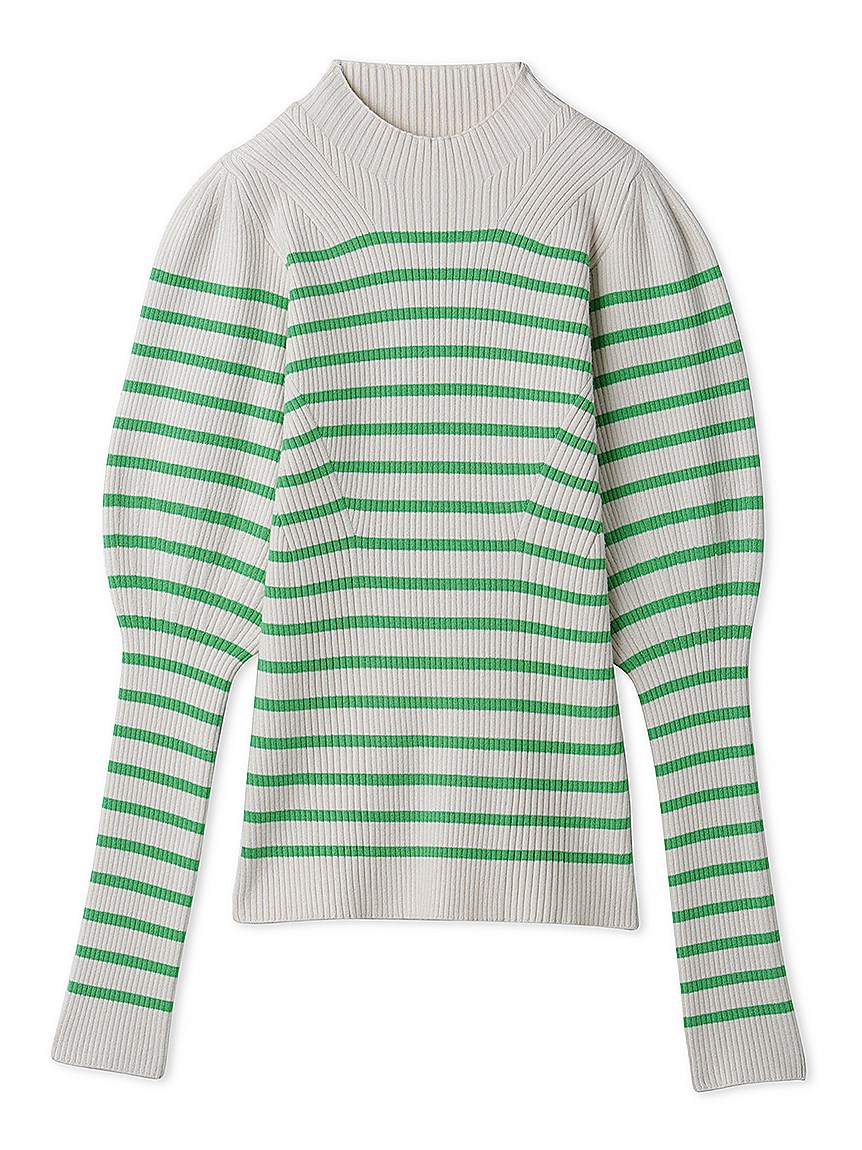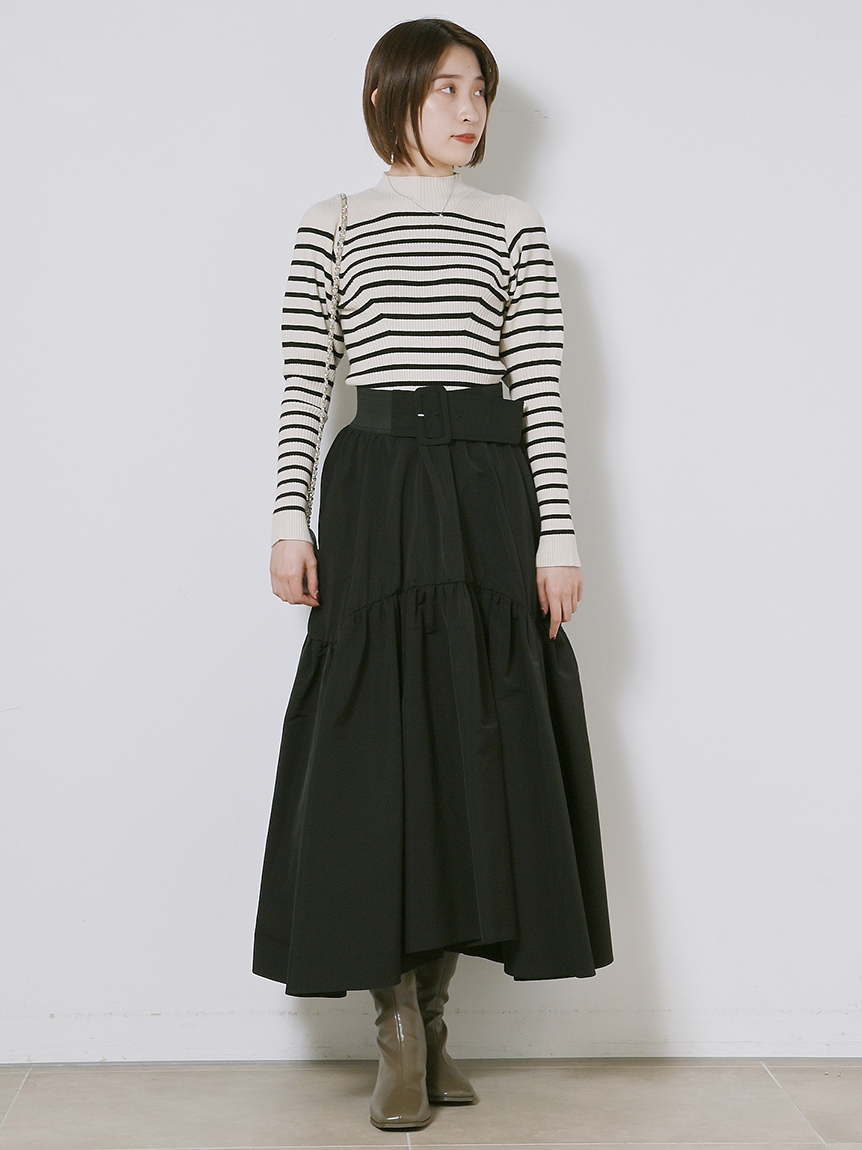 伸縮性のある柔らかなリブニットを使用しました。馴染みの良いアイボリー、ベーシックなブラック、ボーダー柄を浮かべたグリーン、秋冬らしいブラウン、トレンド感のあるライトブルー、大人カジュアルなボーダーの豊富なカラーバリエーションをご用意。