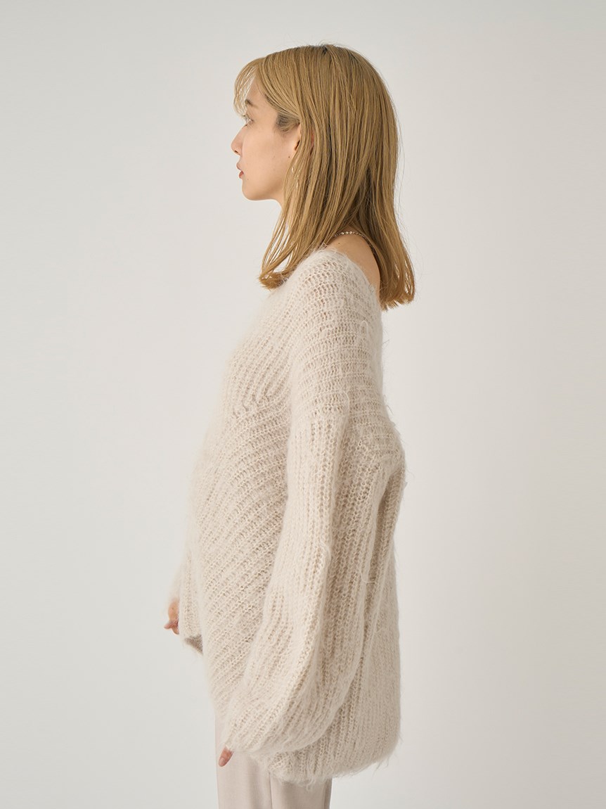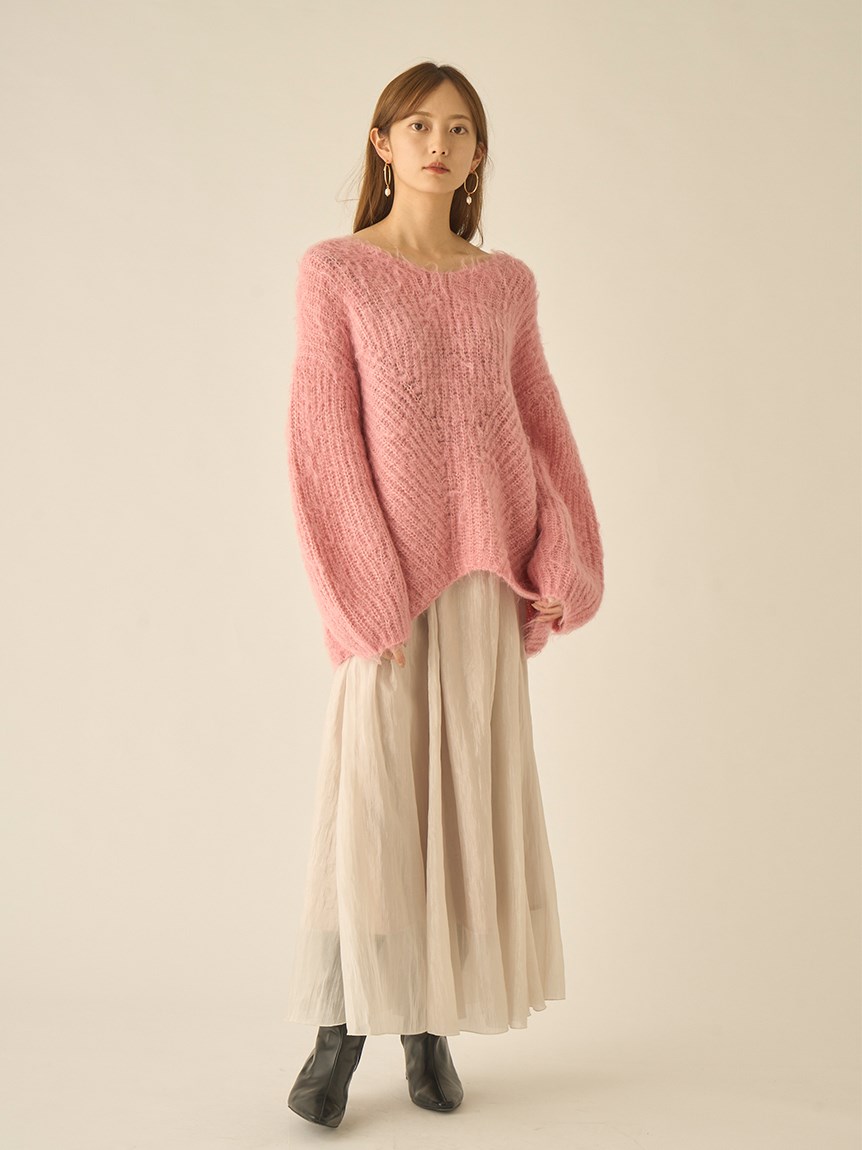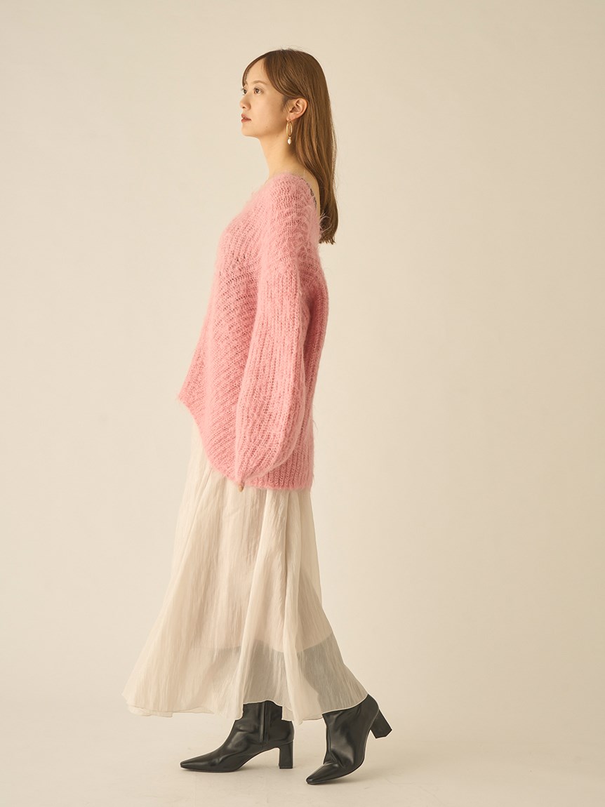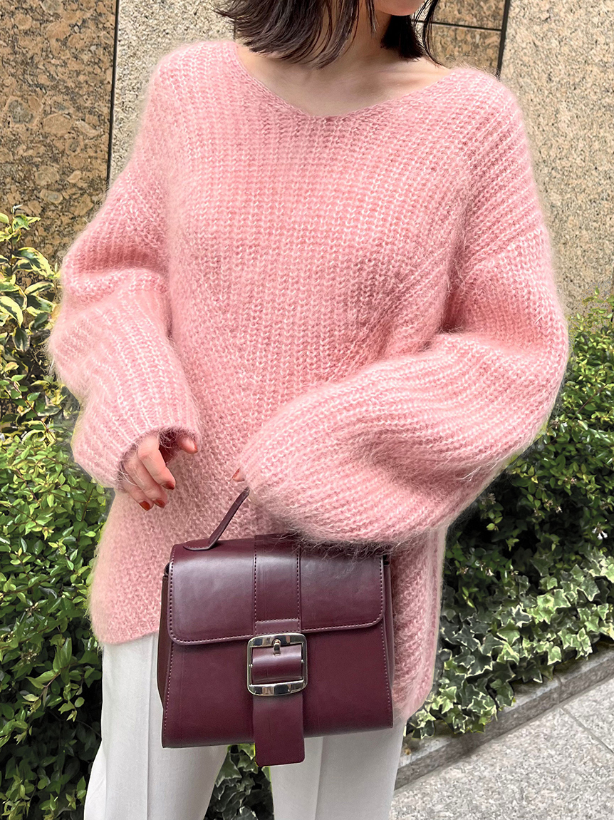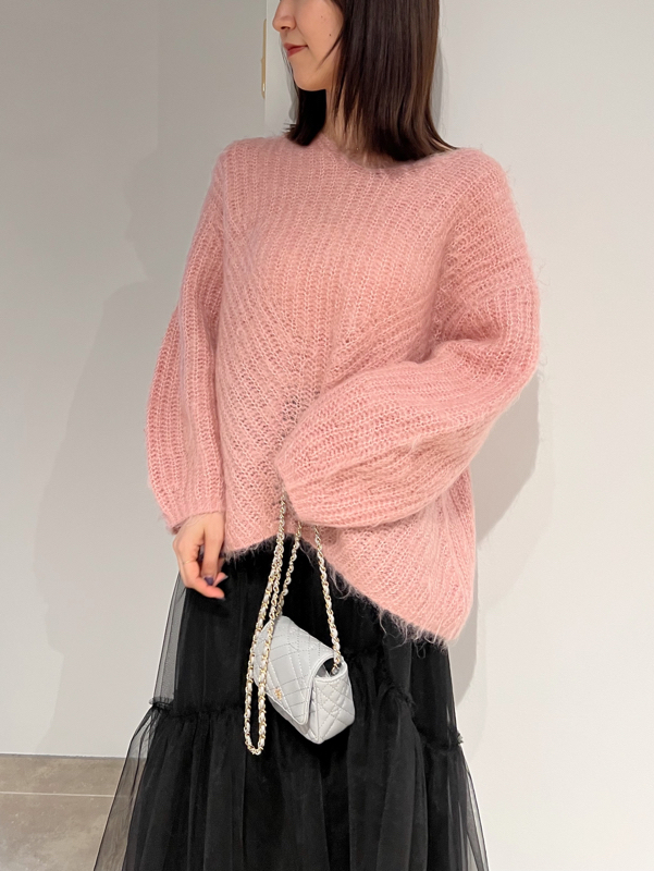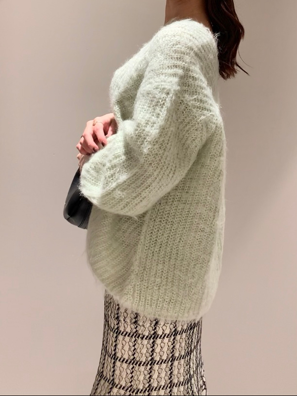 モヘア高混率の糸を贅沢に使用し、軽く快適な着心地を実現しました。着まわしやすいアイボリー、トレンド感のあるミント、愛らしい色合いのピンクの3色展開でお届けします。