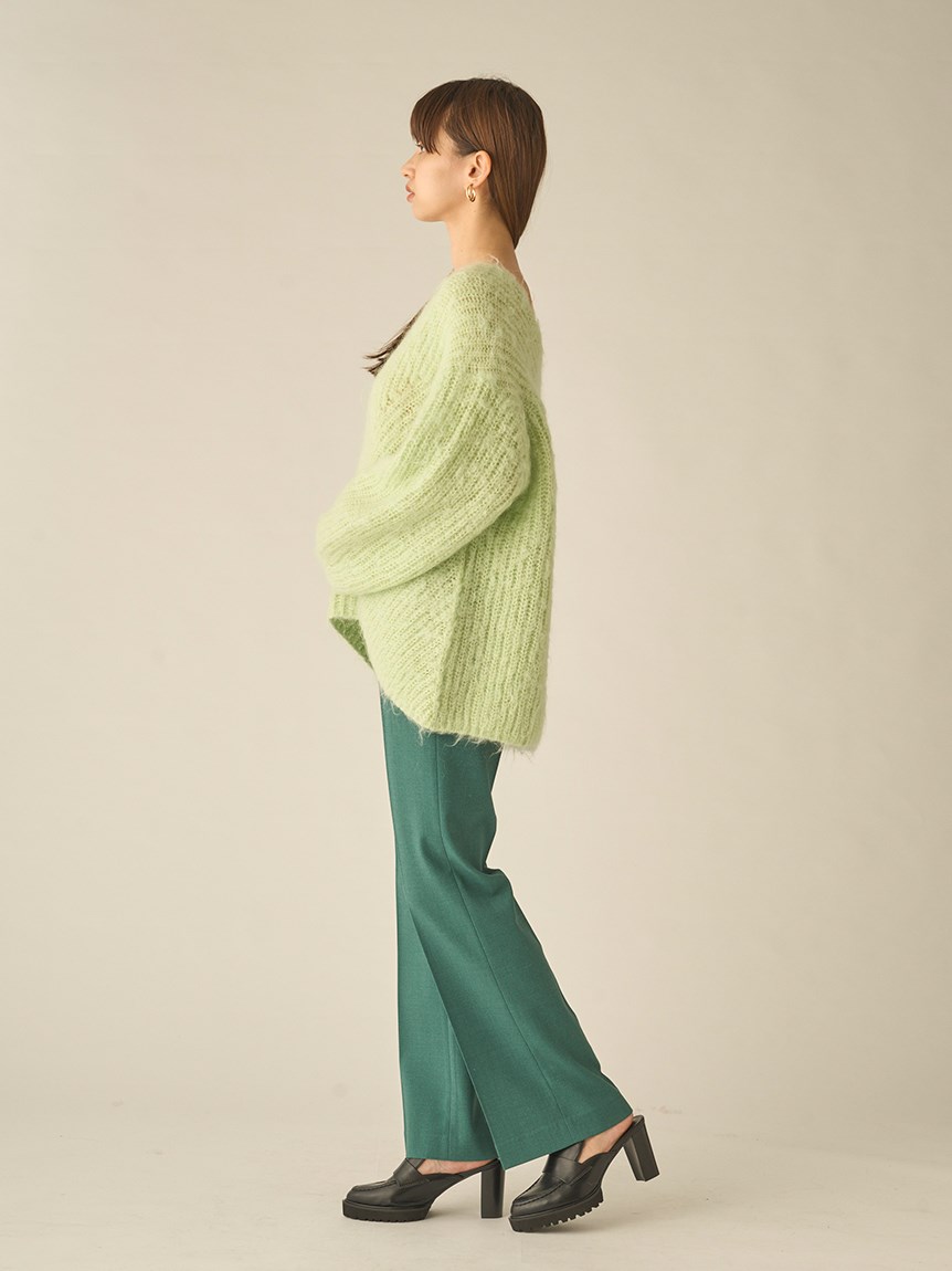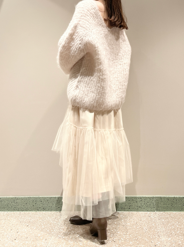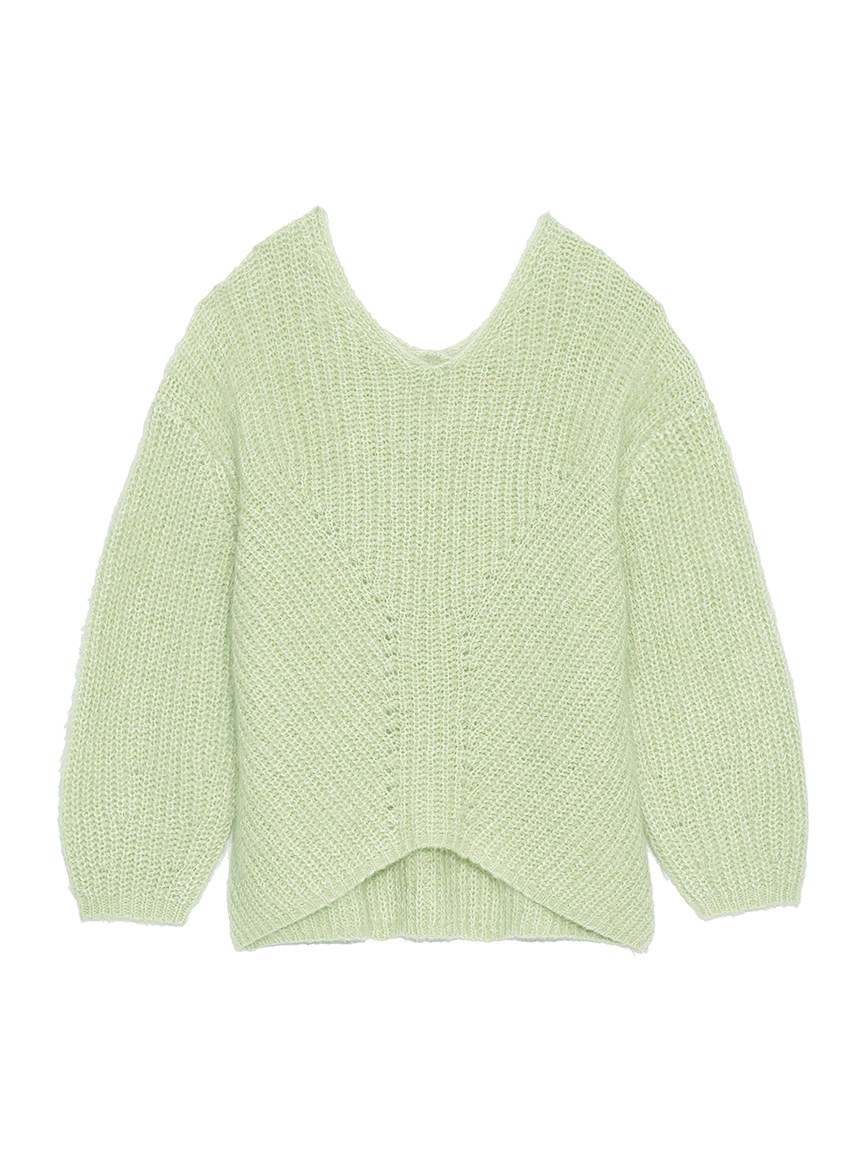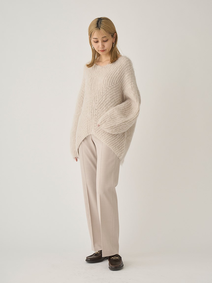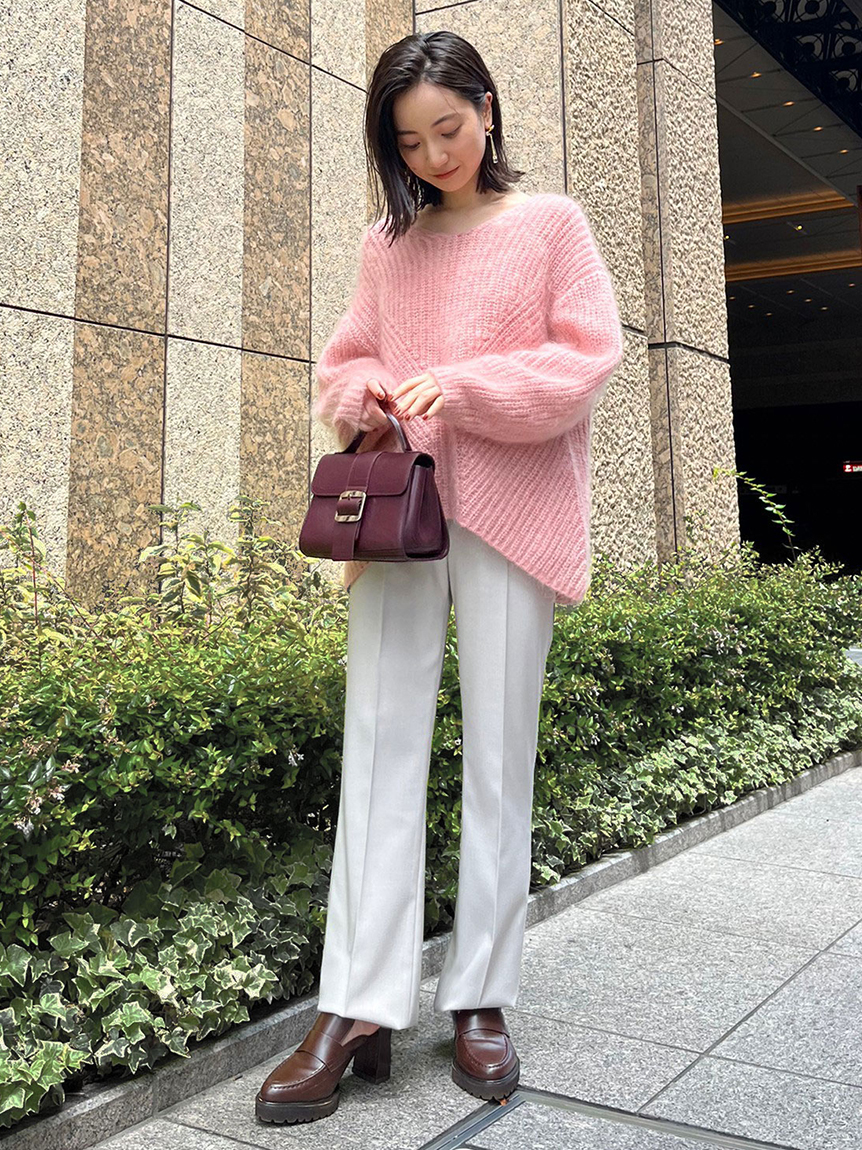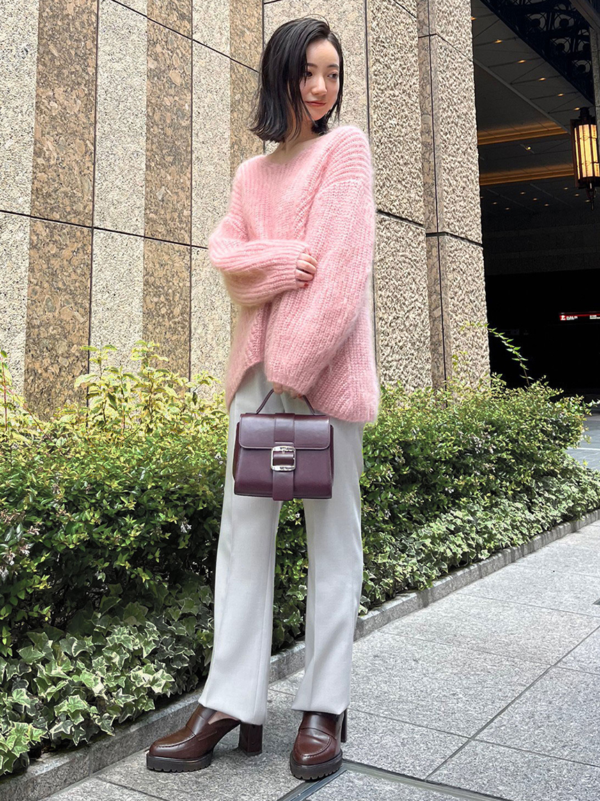 モヘア高混率の糸を贅沢に使用し、軽く快適な着心地を実現しました。着まわしやすいアイボリー、トレンド感のあるミント、愛らしい色合いのピンクの3色展開でお届けします。
