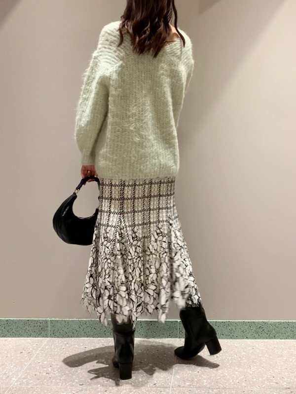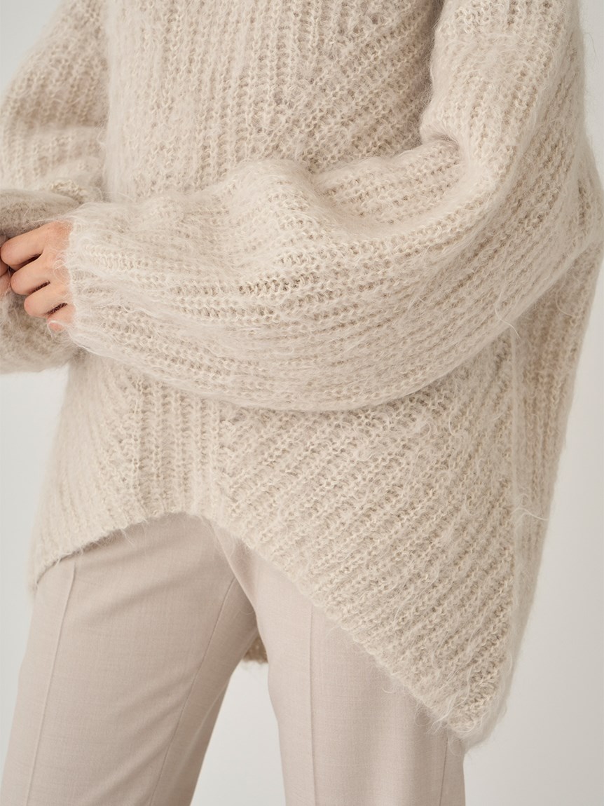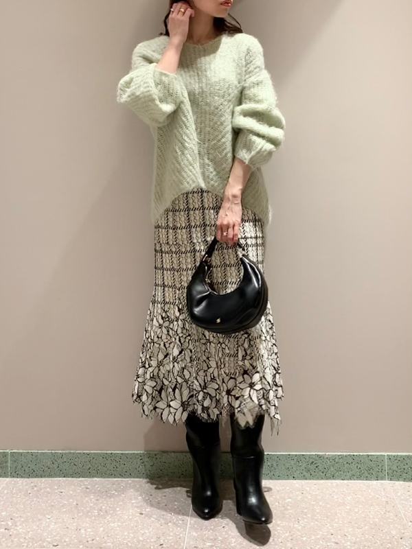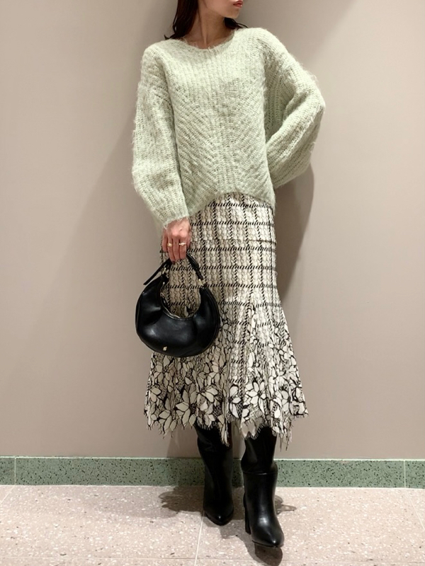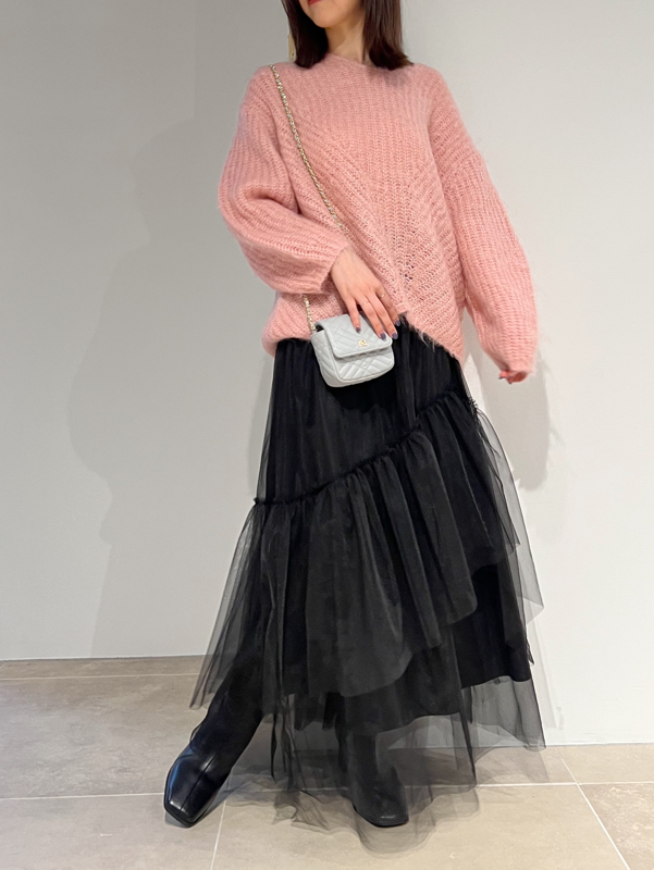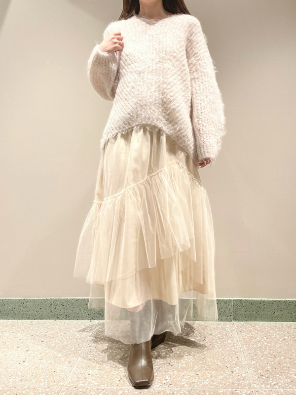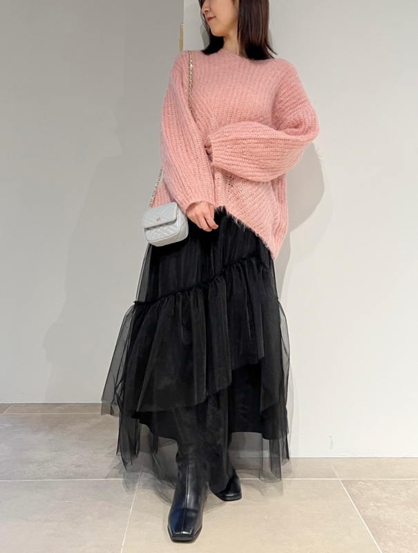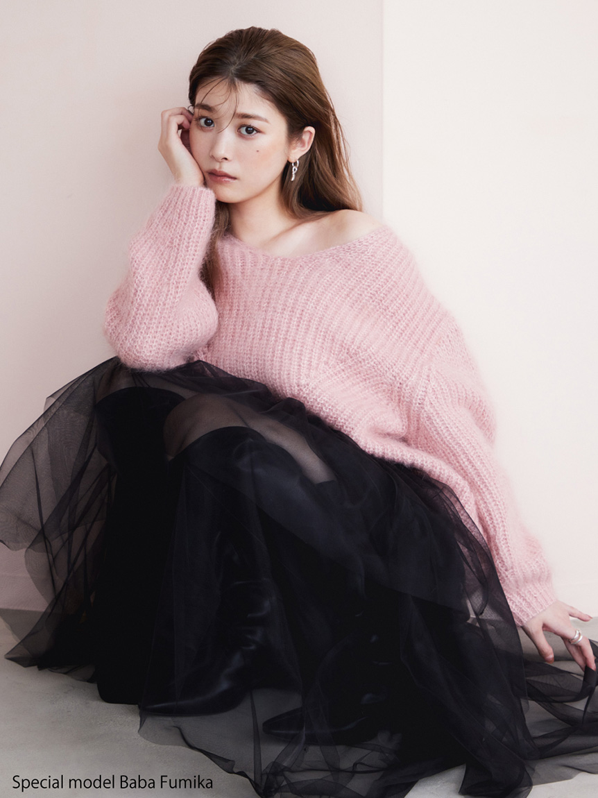 モヘア高混率の糸を贅沢に使用し、軽く快適な着心地を実現しました。着まわしやすいアイボリー、トレンド感のあるミント、愛らしい色合いのピンクの3色展開でお届けします。