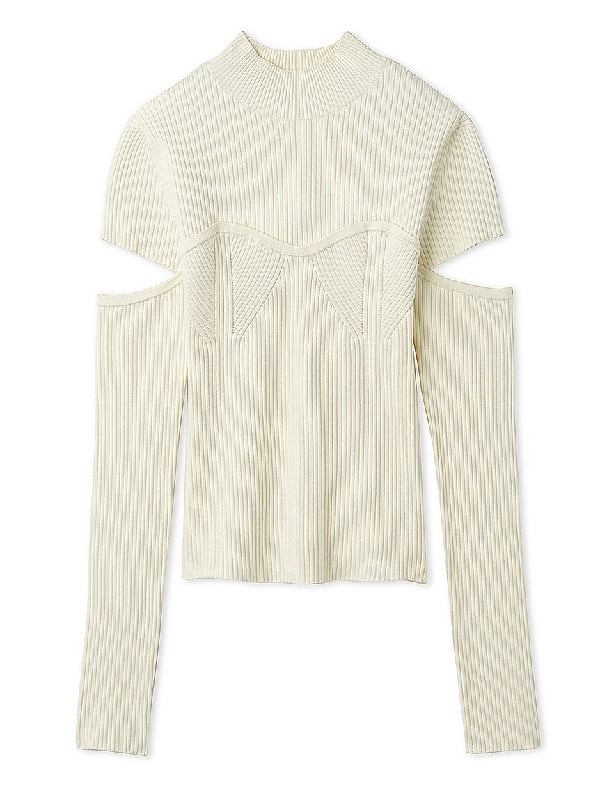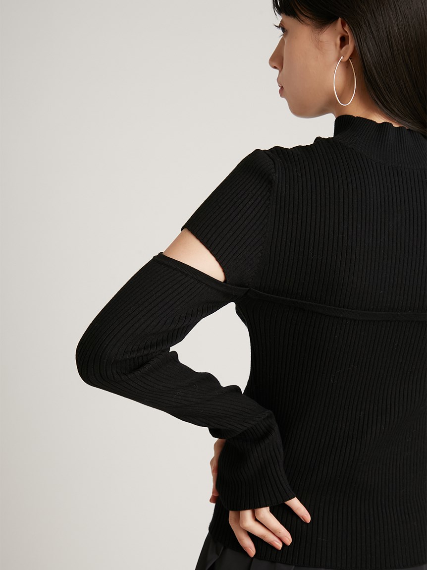ボディラインを美しく見せるタイトシルエットのニットプルオーバー。袖に施された大胆なスリットでヘルシーな肌見せができ、抜け感を演出しました。ビスチェをレイヤードしたような編み地のデザインが、女性らしさを際立たせます。合わせるボトムを選ばないので、幅広いコーディネートに重宝します。