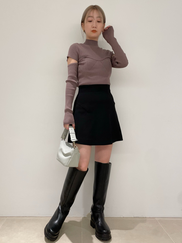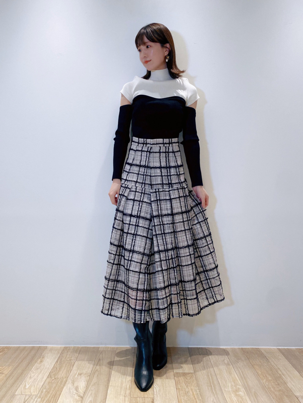 エコレーヨンを用いたサステナブルなニット素材を使用しました。シックで合わせやすいアイボリーとブラック、ラベンダーに加え、配色でモードに仕上げたミックスをご用意。