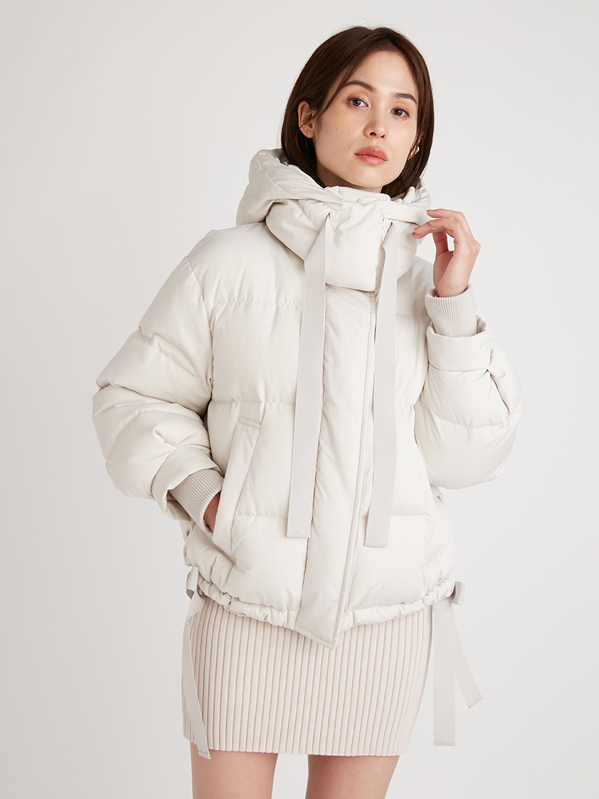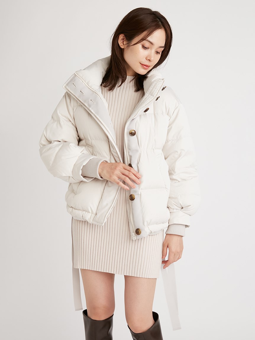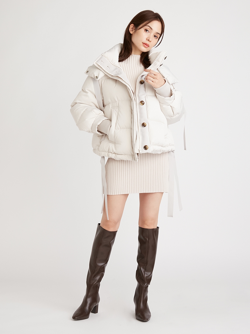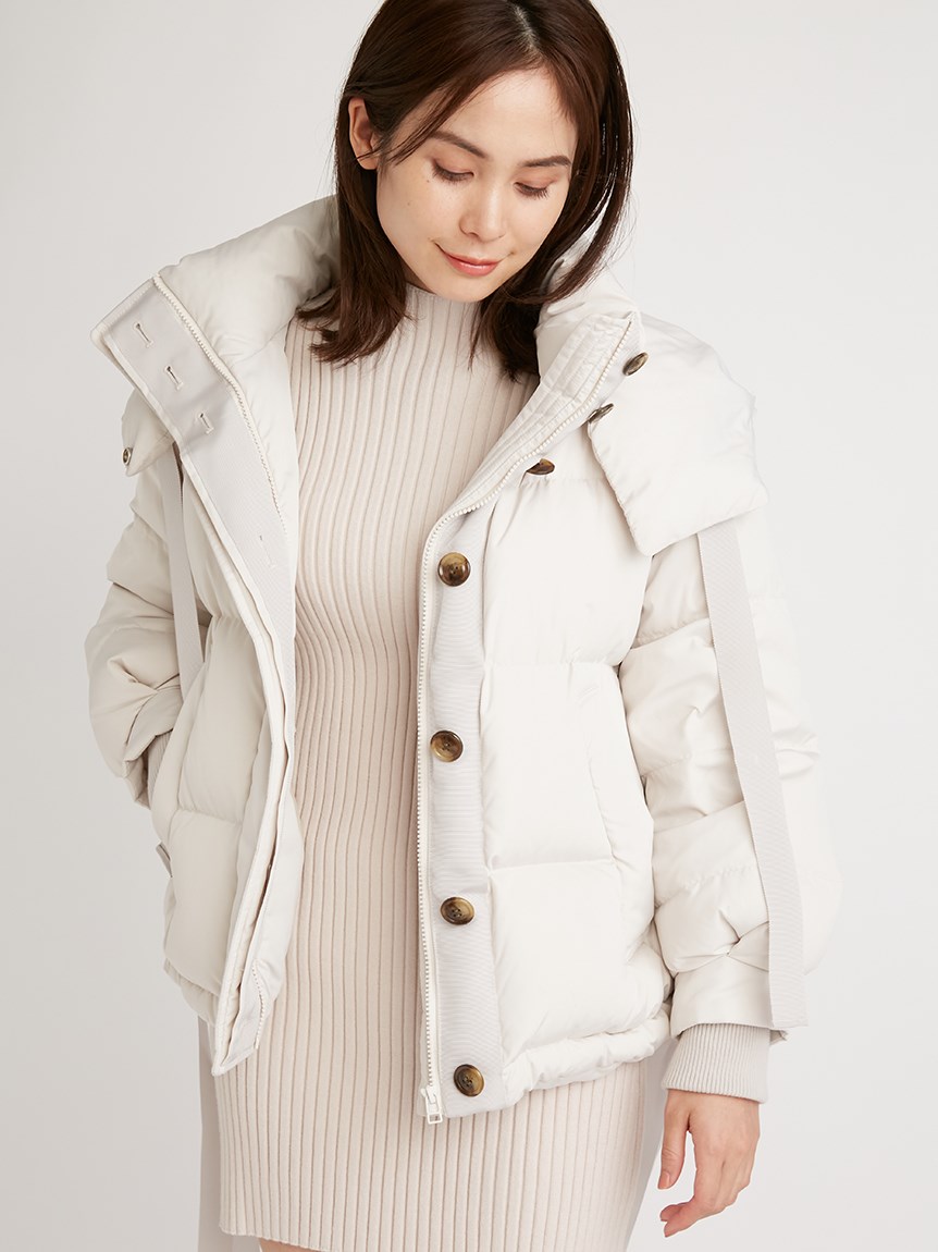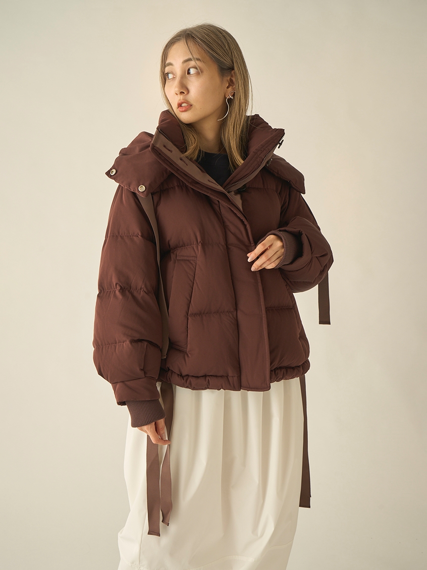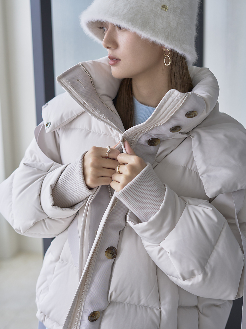 丸みのあるショート丈とボリューム感が愛らしい「SNIDEL」で人気のダウンが、新色・新デザインで登場。袖口のリブ丈やグログランテープのバランスにこだわり、よりデザイン性の高いアイテムに仕上がりました。スカートにもパンツにも合わせやすく、このシーズン重宝する1着です。フードの取り外しができるアレンジ力の高さも◎。