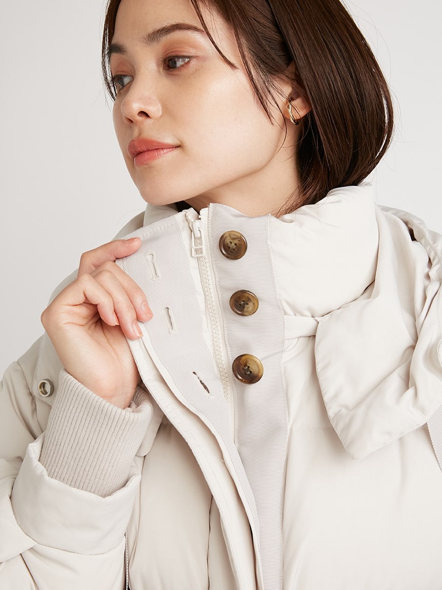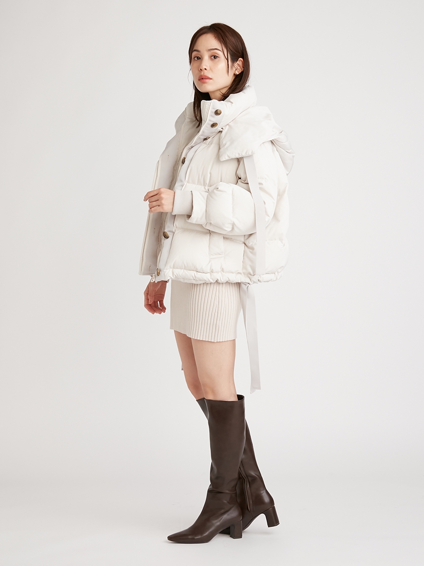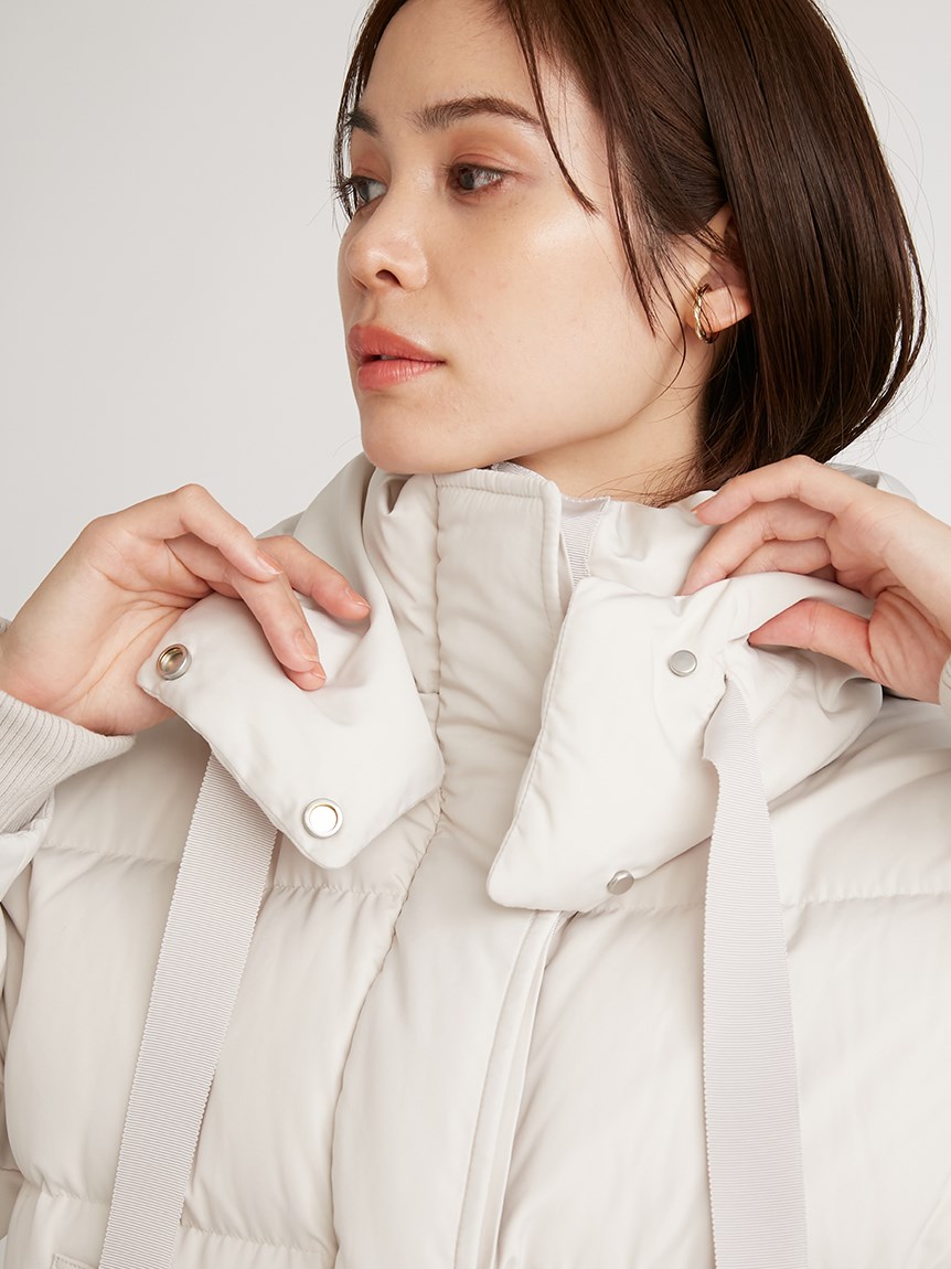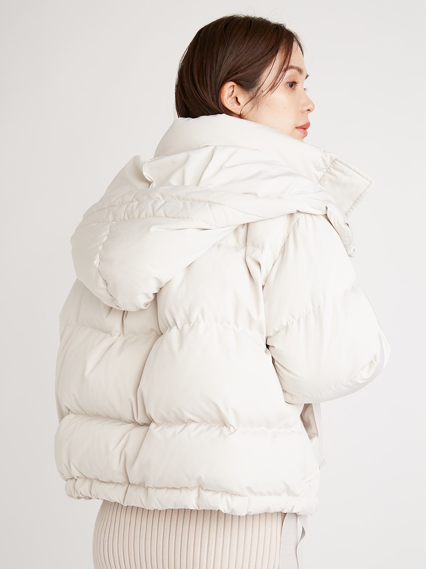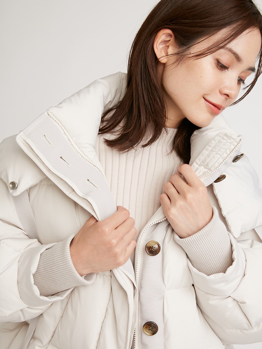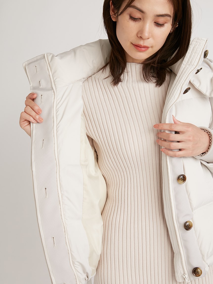 丸みのあるショート丈とボリューム感が愛らしい「SNIDEL」で人気のダウンが、新色・新デザインで登場。袖口のリブ丈やグログランテープのバランスにこだわり、よりデザイン性の高いアイテムに仕上がりました。スカートにもパンツにも合わせやすく、このシーズン重宝する1着です。フードの取り外しができるアレンジ力の高さも◎。