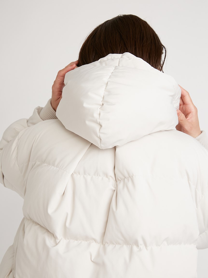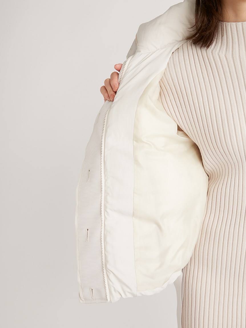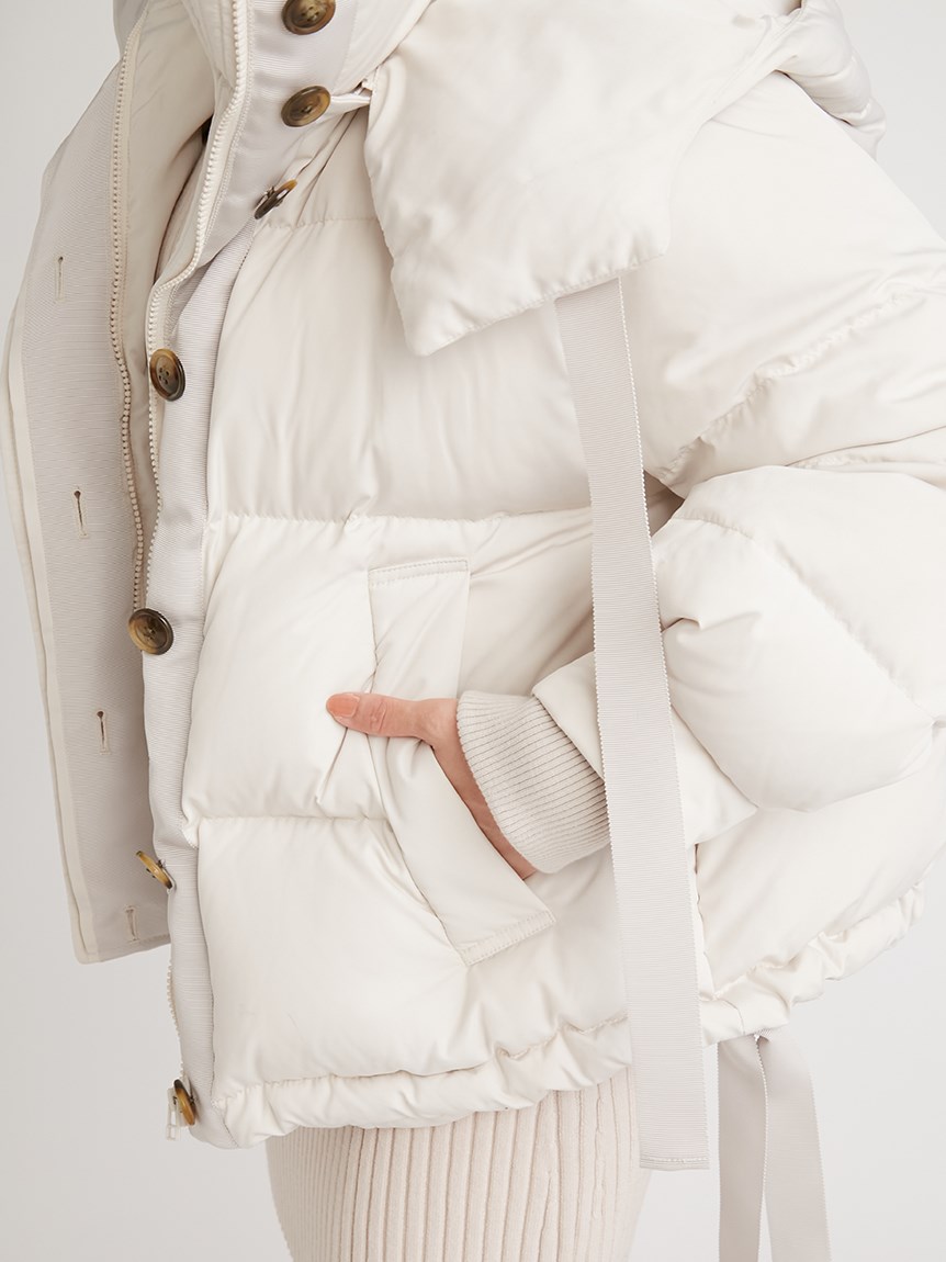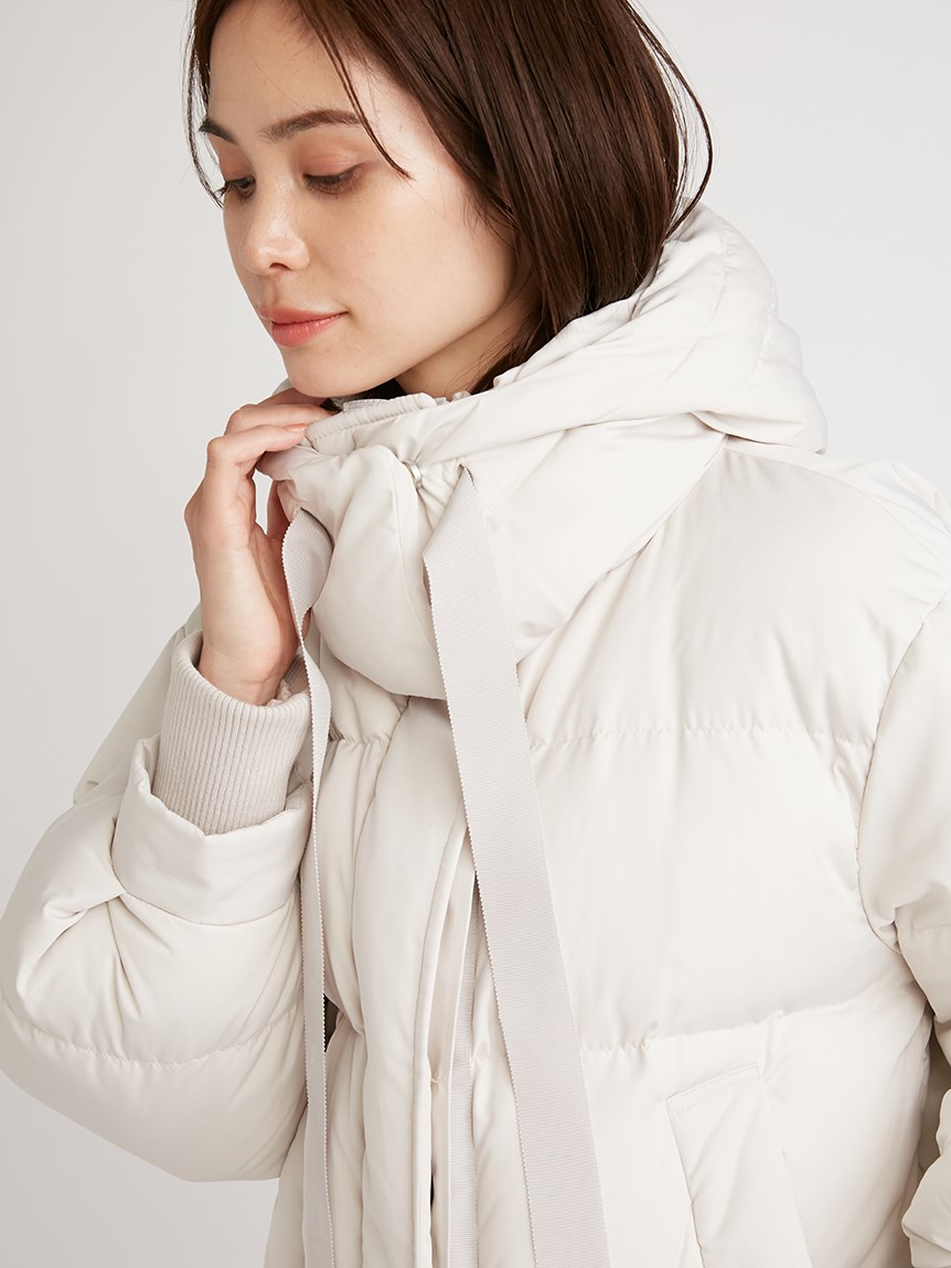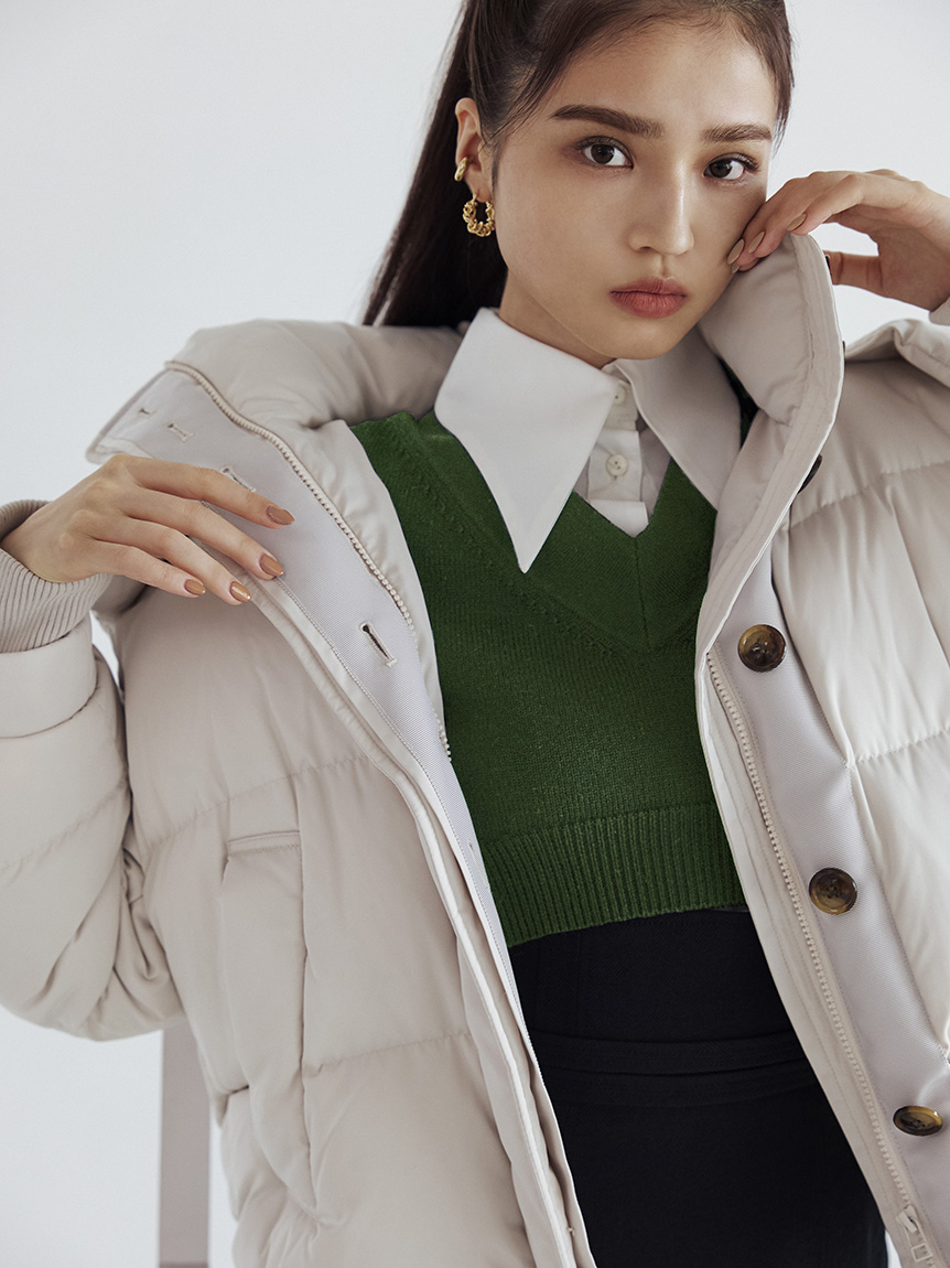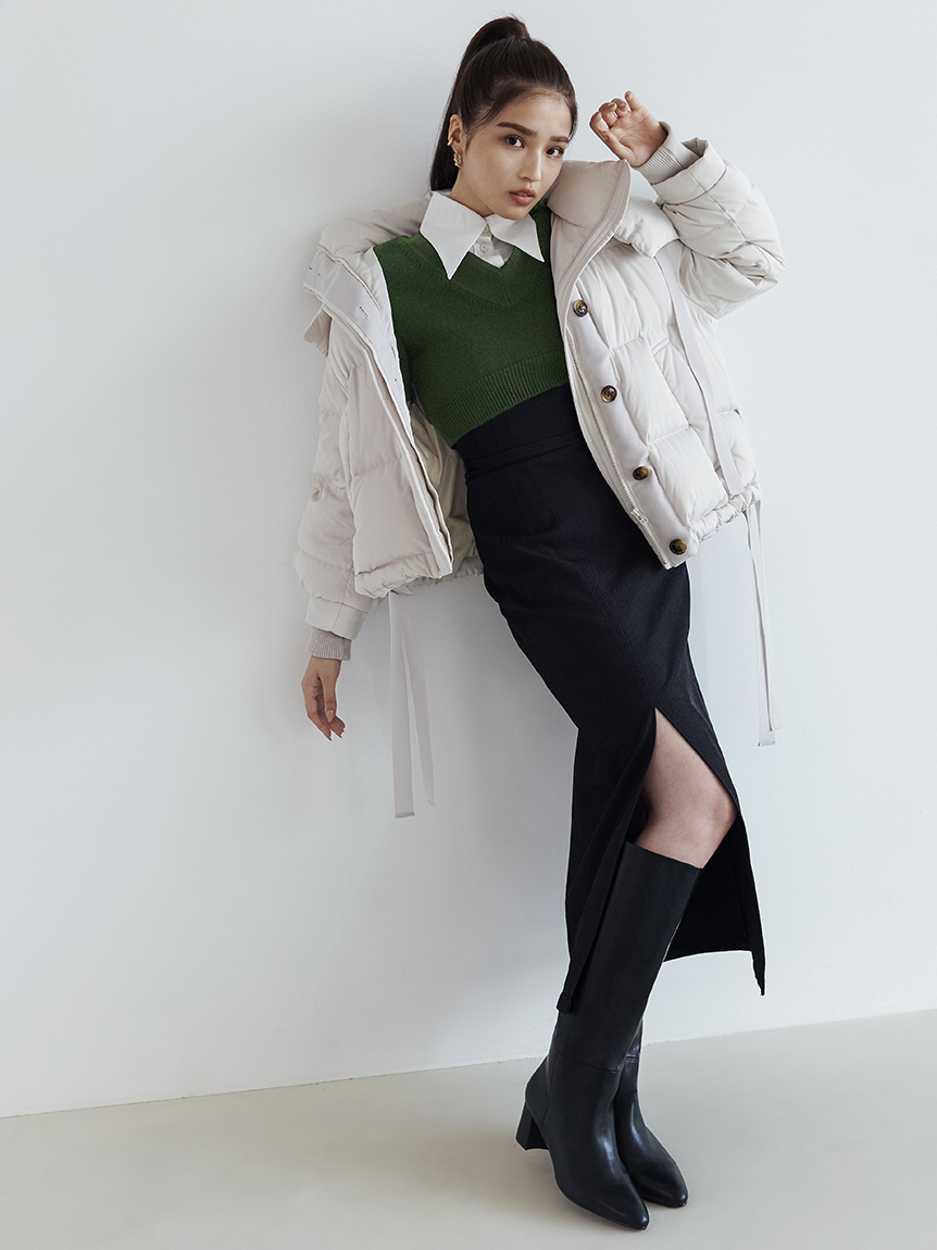 丸みのあるショート丈とボリューム感が愛らしい「SNIDEL」で人気のダウンが、新色・新デザインで登場。袖口のリブ丈やグログランテープのバランスにこだわり、よりデザイン性の高いアイテムに仕上がりました。スカートにもパンツにも合わせやすく、このシーズン重宝する1着です。フードの取り外しができるアレンジ力の高さも◎。