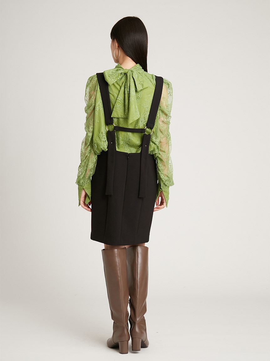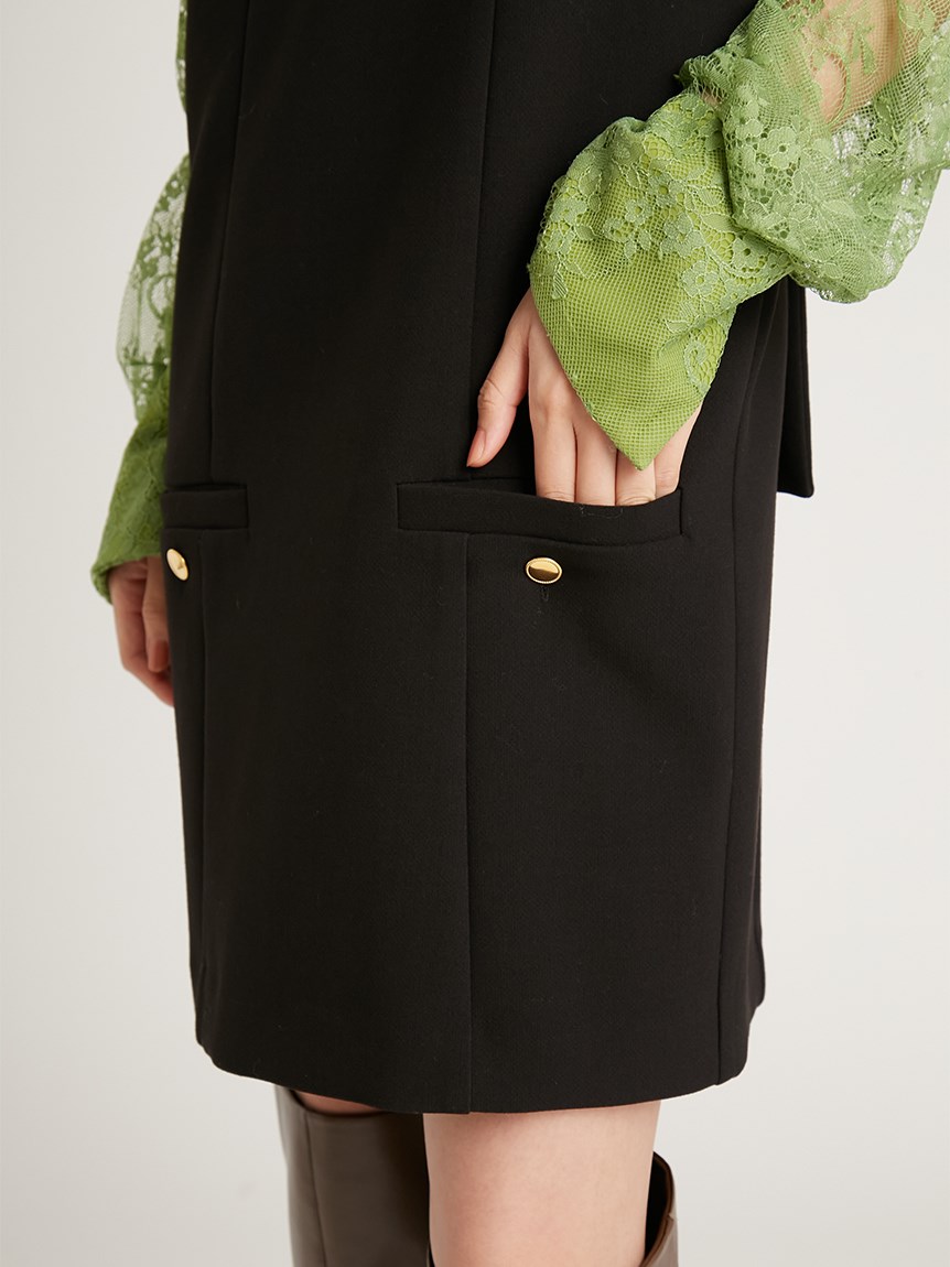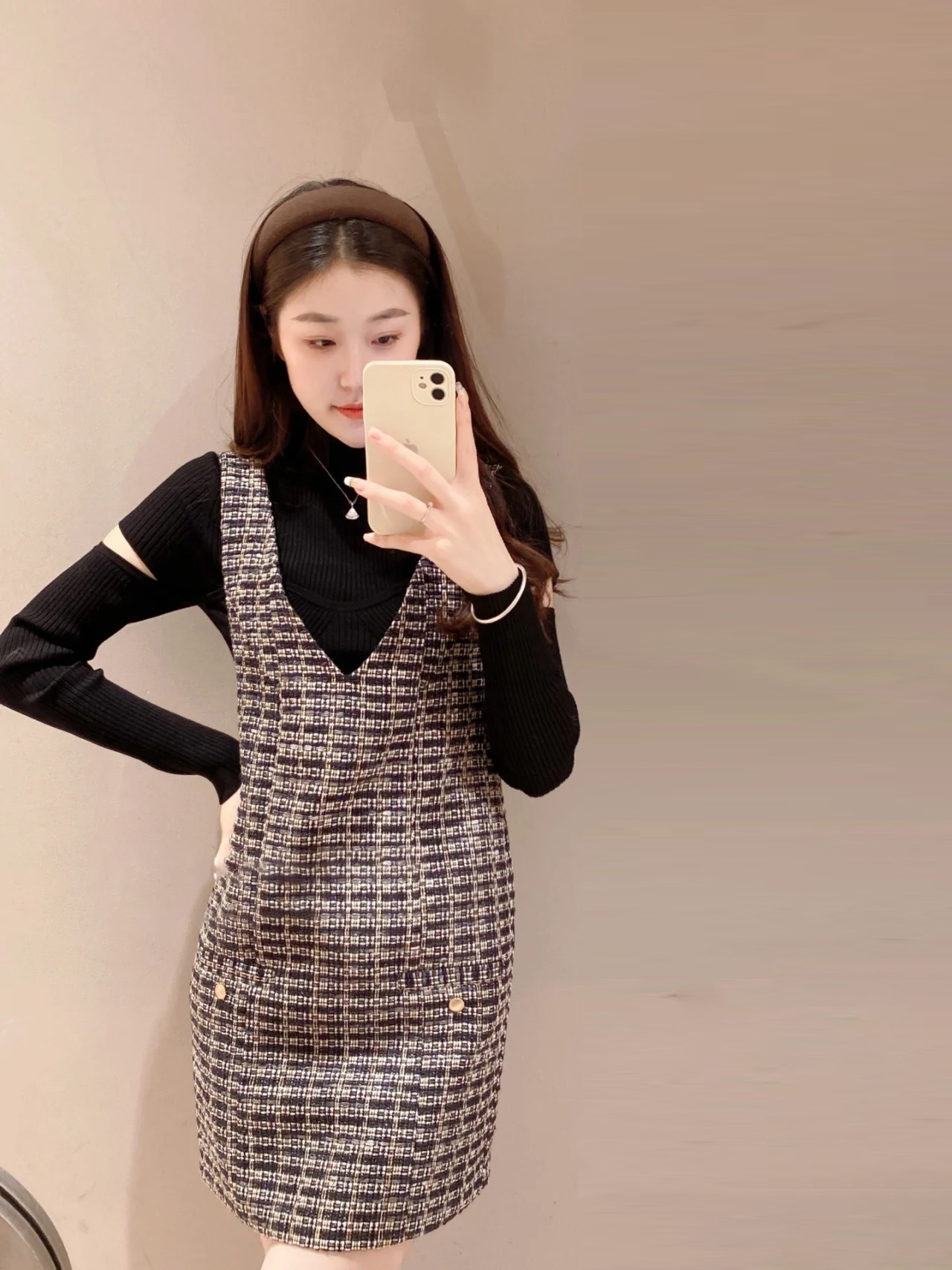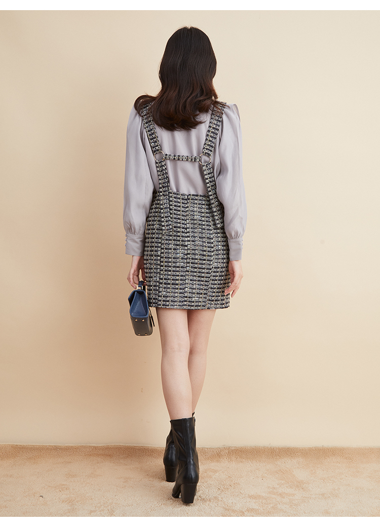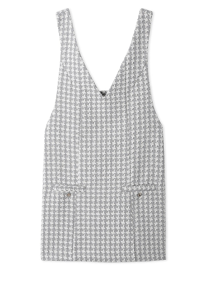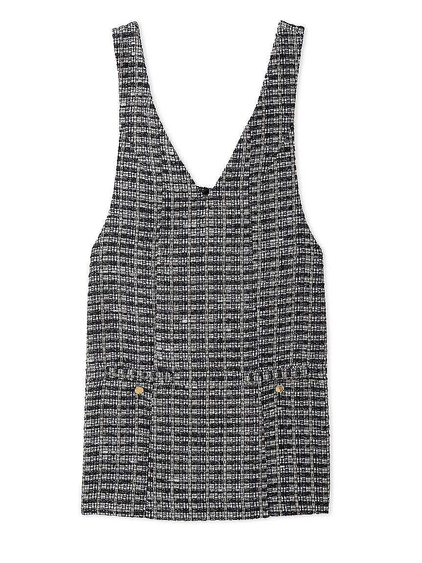 クラシカルなムードが漂うミニワンピースは、重ね着に最適な深いVネックが特徴。今季らしいボックスシルエットは切り替えディテールでシルエットを構築しています。合わせるインナーによってカジュアルにもきれいめにも着られる万能なデザイン。ストラップの長さを変えて丈の調節も可能なので、幅広い層にご着用いただける1着です。