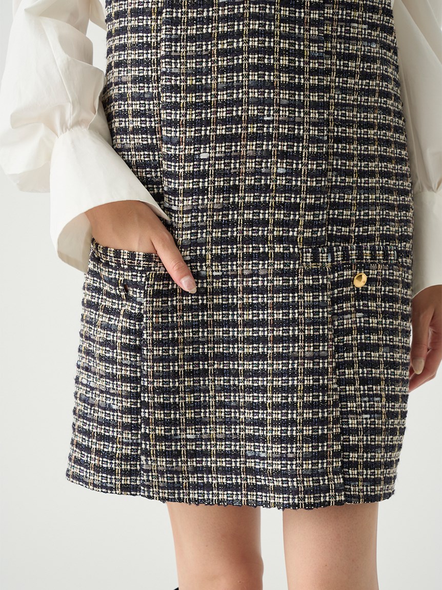 トレンドのツイード素材を使用したアイボリーとミックス、シンプルな無地の二重織り生地を用いたブラックの3色展開でお届けします。