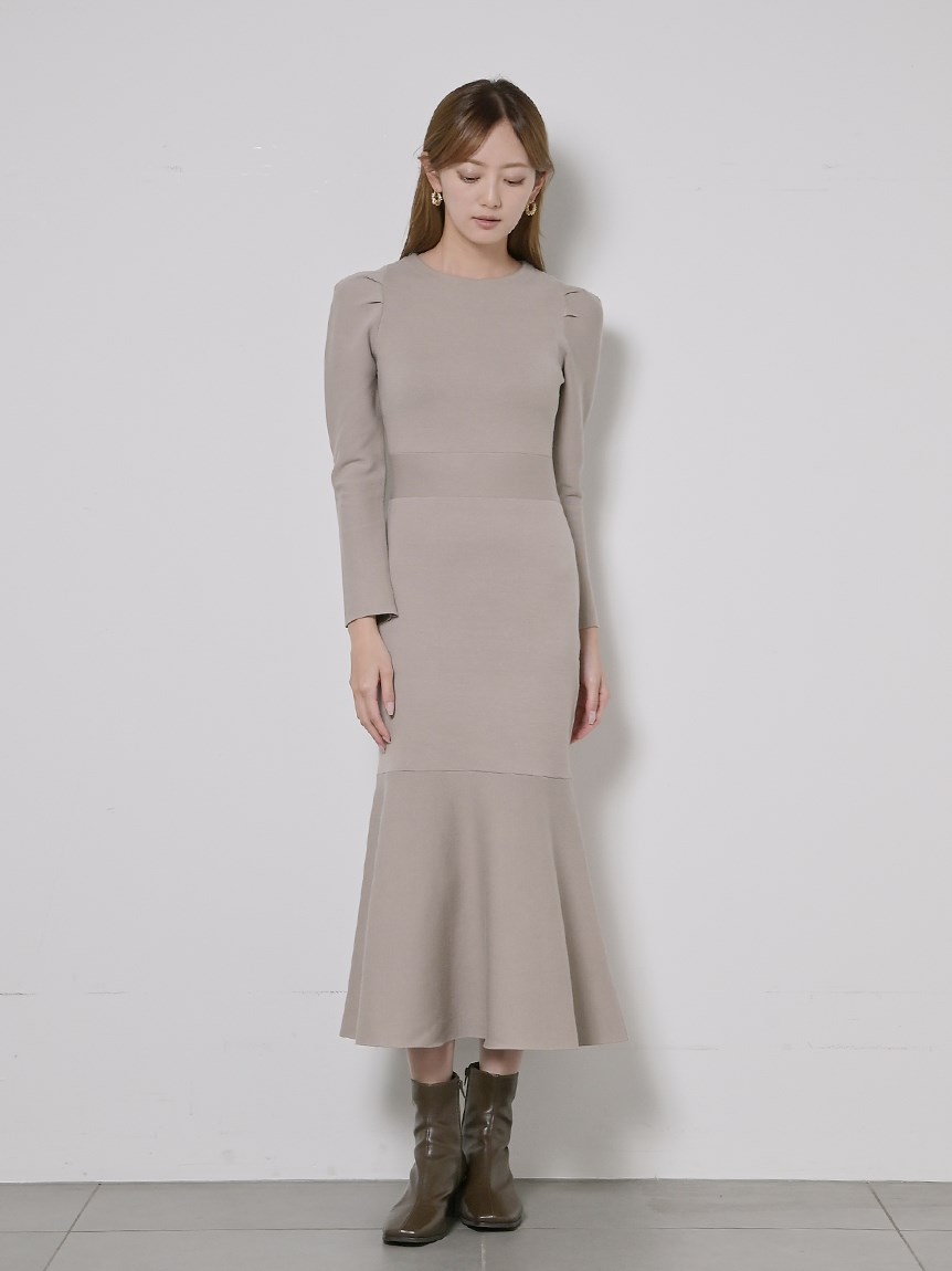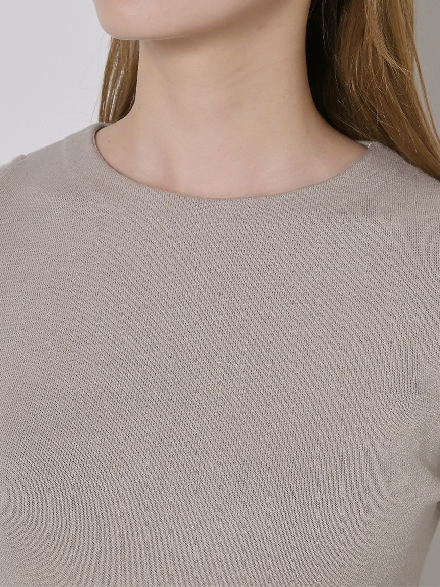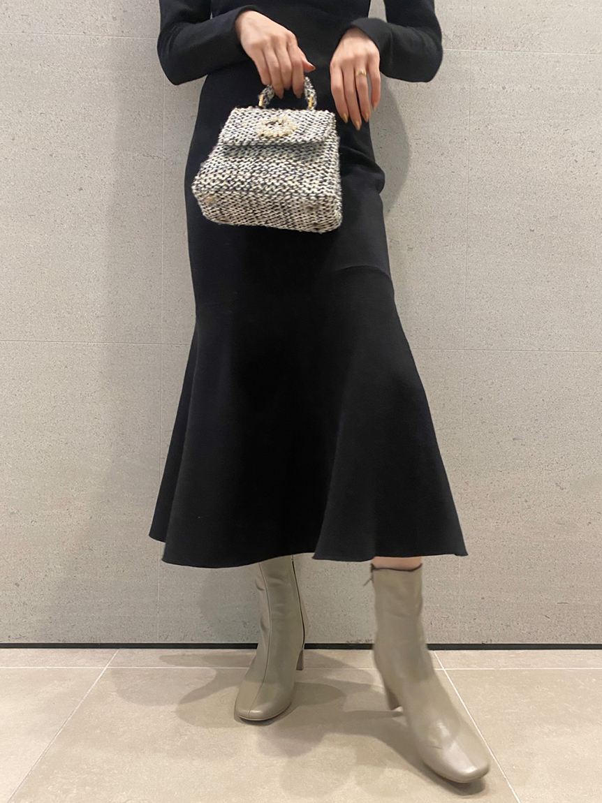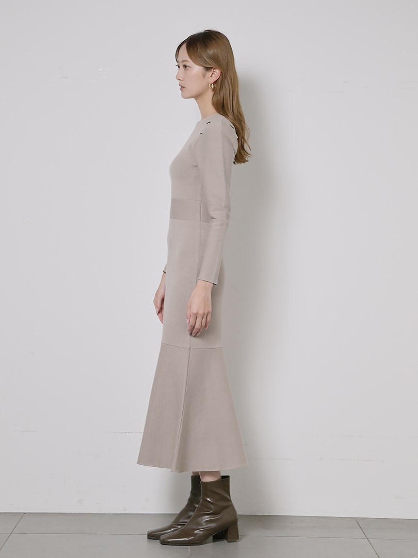 身体のラインを拾いにくい程よい厚みのあるニット素材を使用しました。配色でモードな雰囲気を漂わせるブラック、馴染みの良い優しい色合いのグレーベージュ、全体をワントーンでまとめたシックなカラートーンのブルーの3色展開でお届けします。