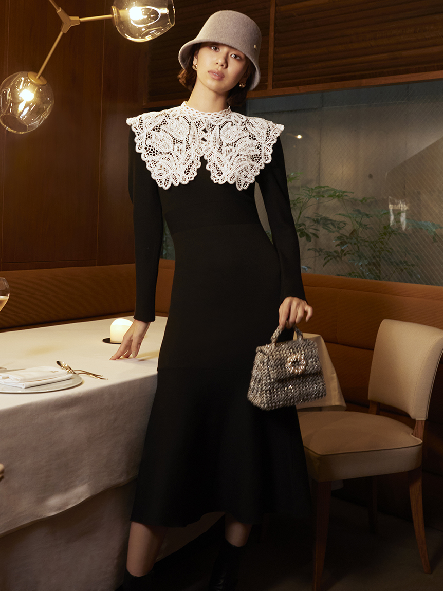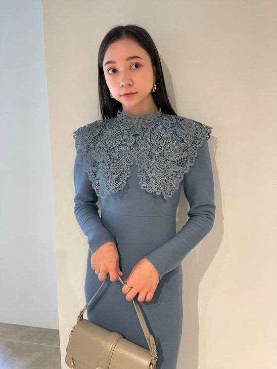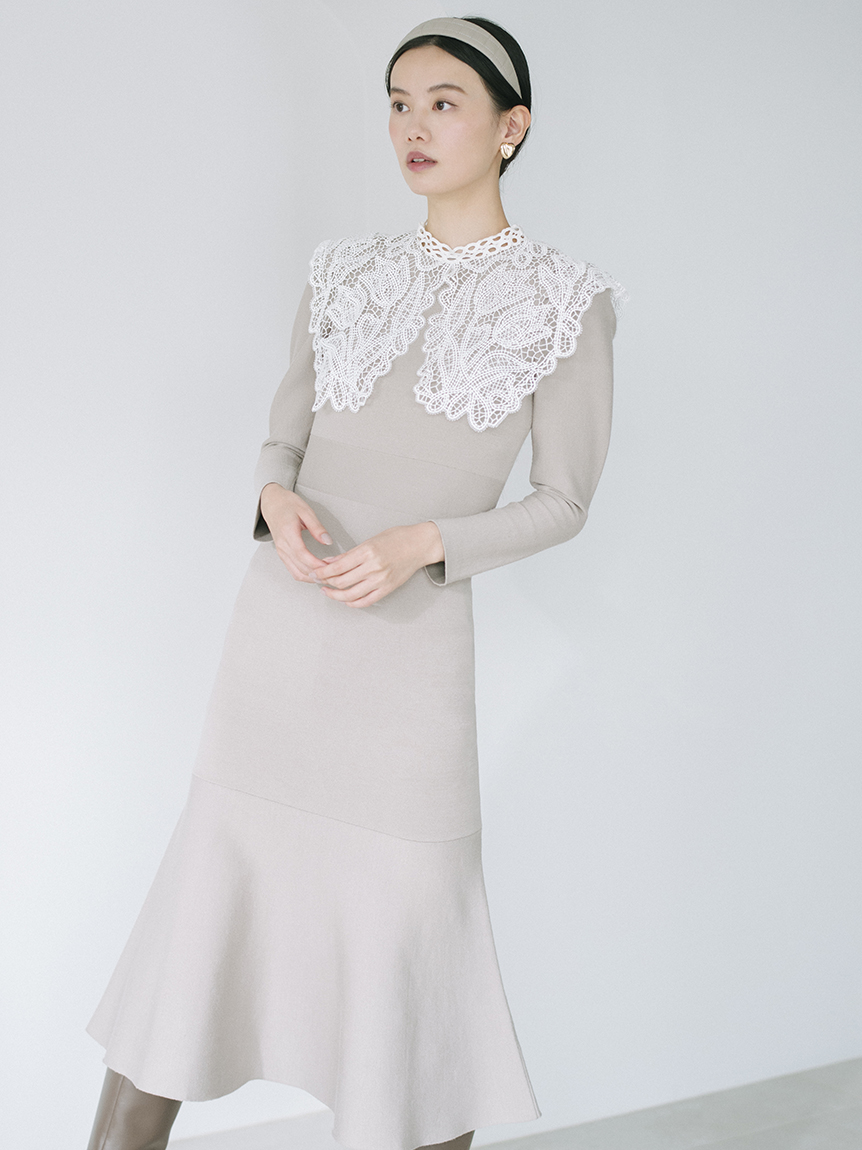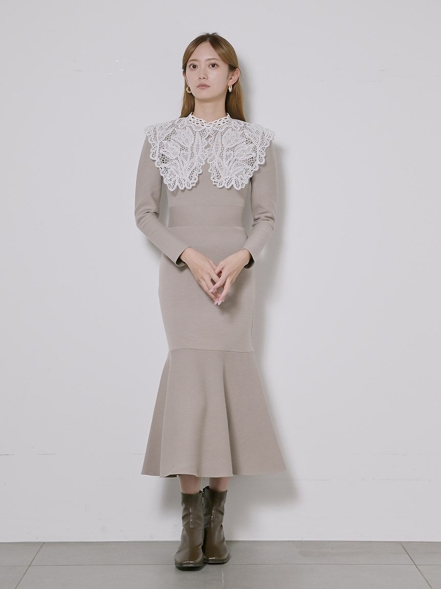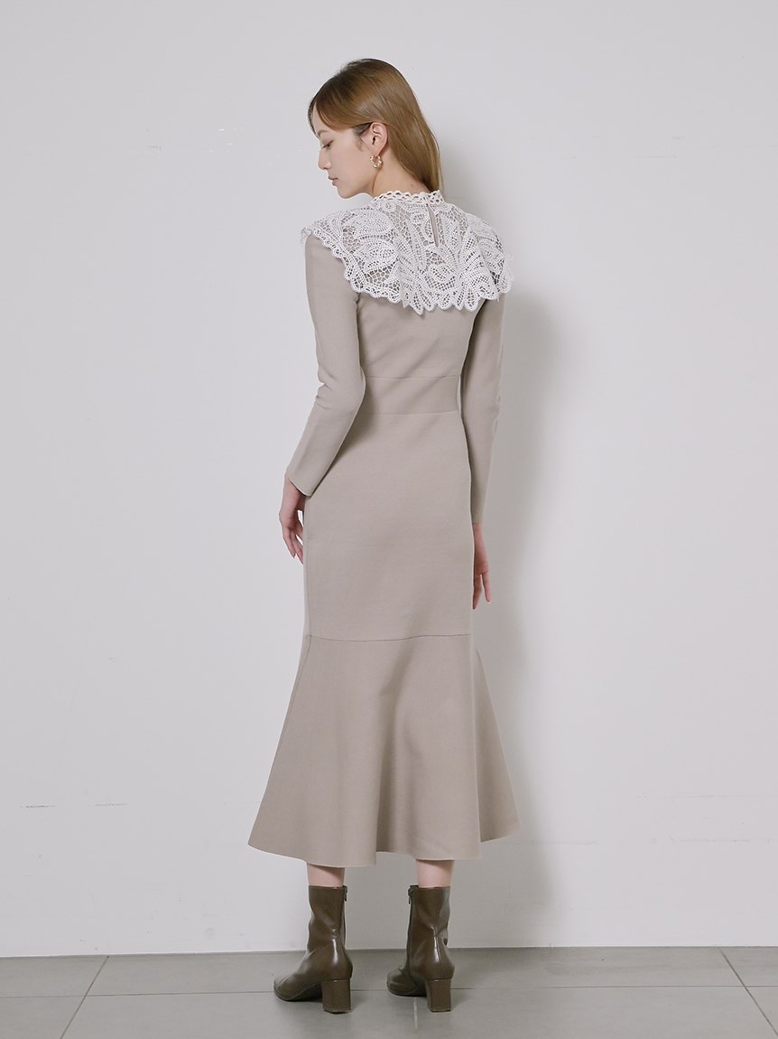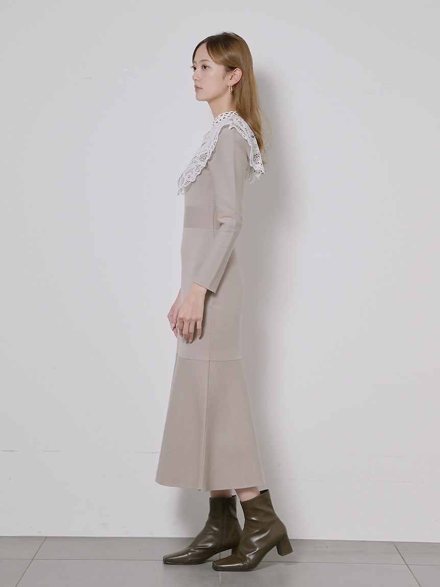 ビッグレースカラーニットワンピース