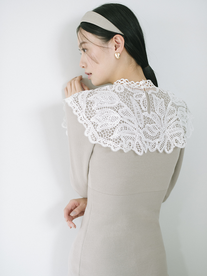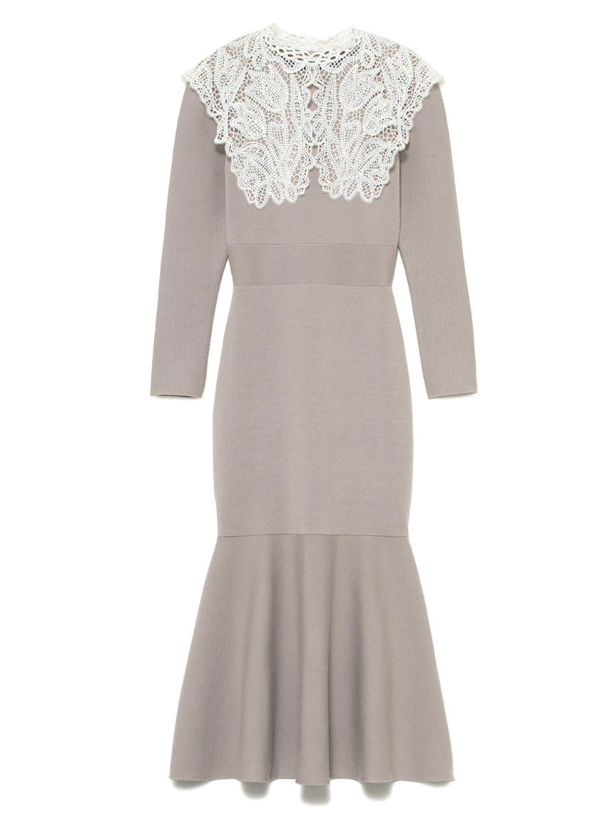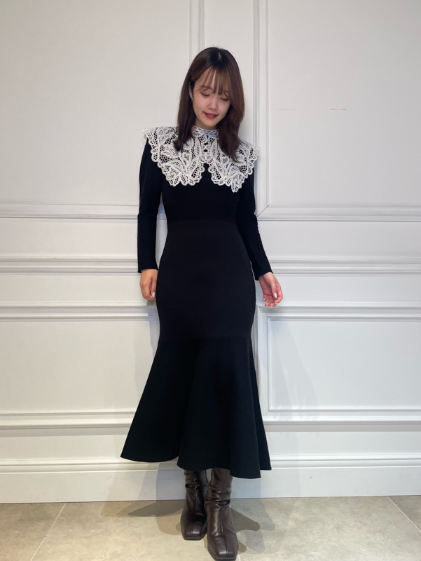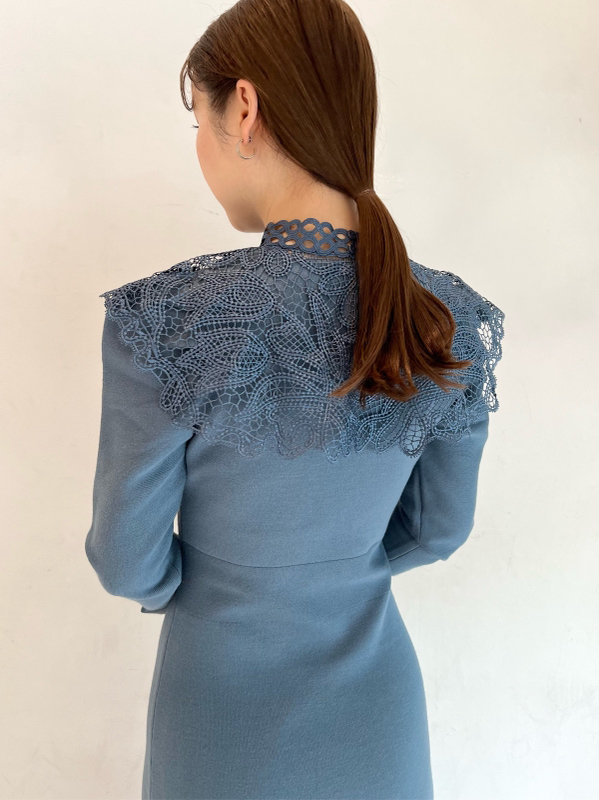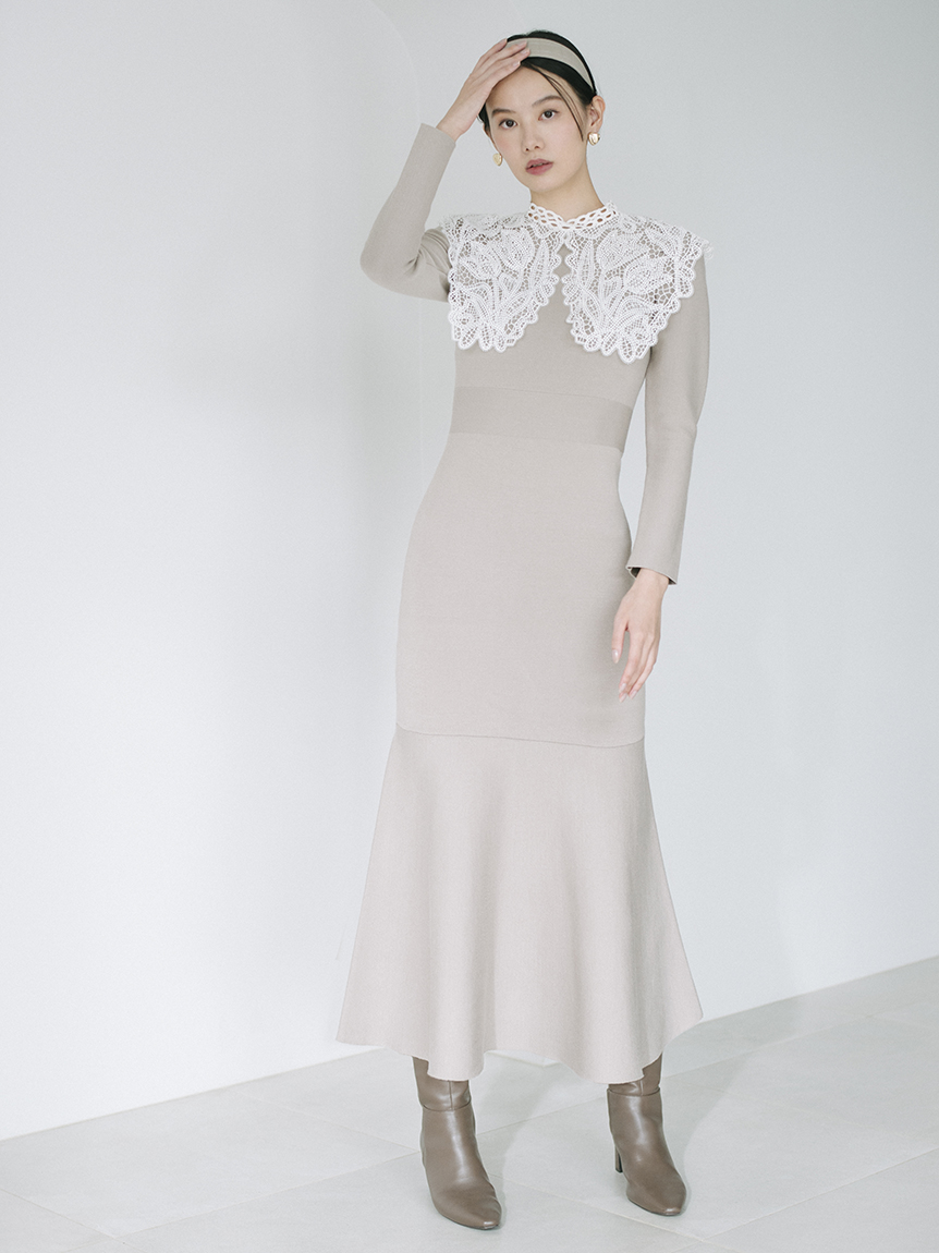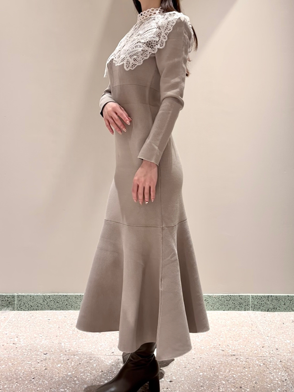 ビッグレースカラーニットワンピース