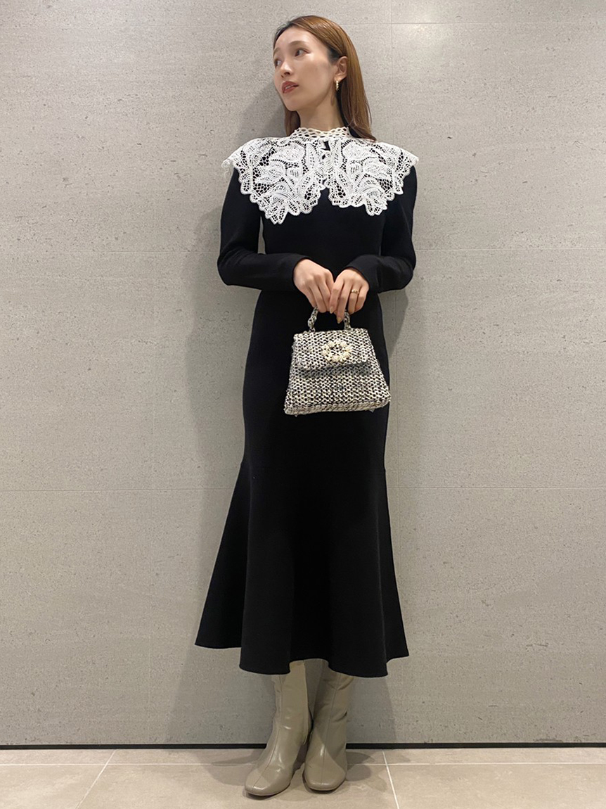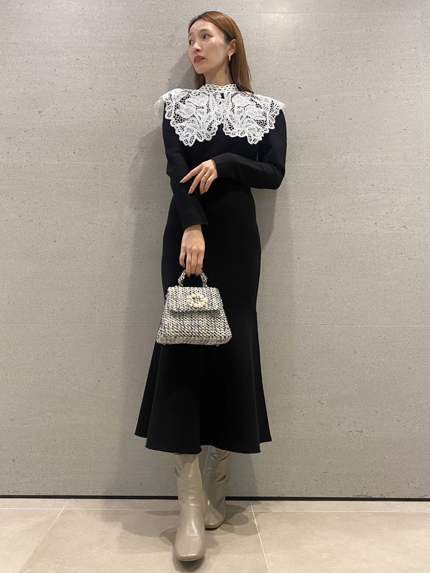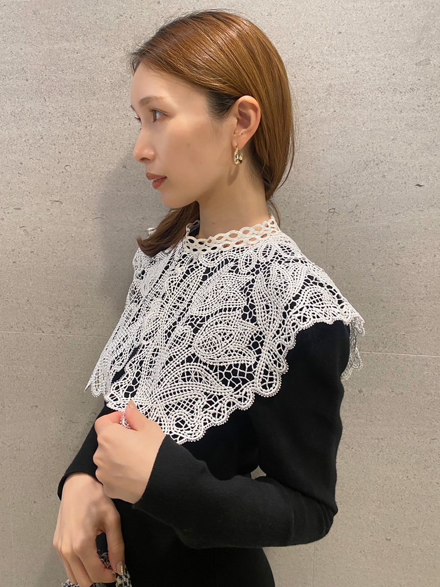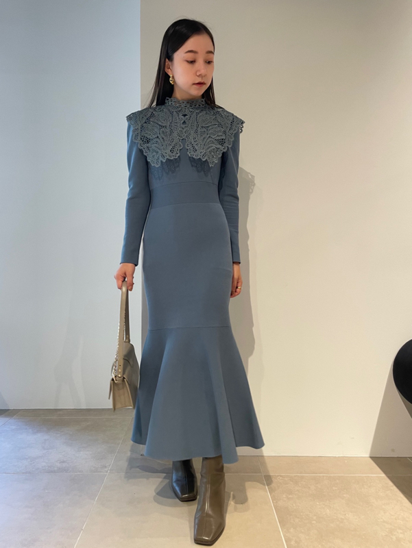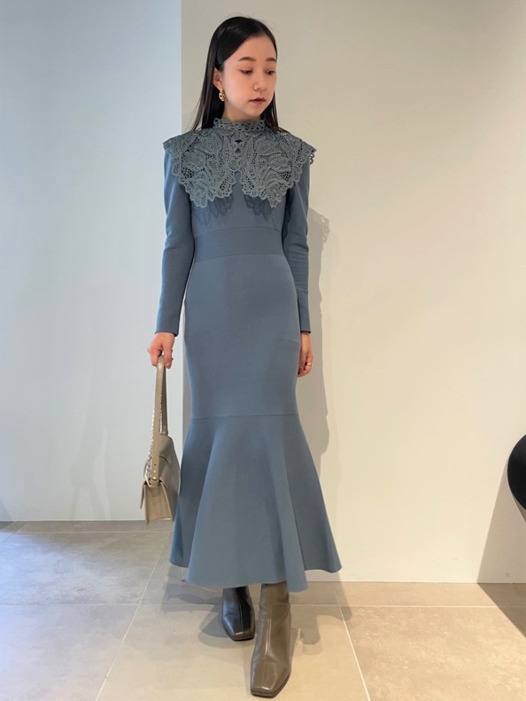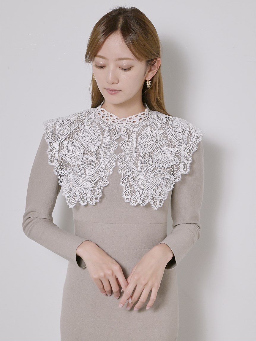 ビッグレースカラーニットワンピース