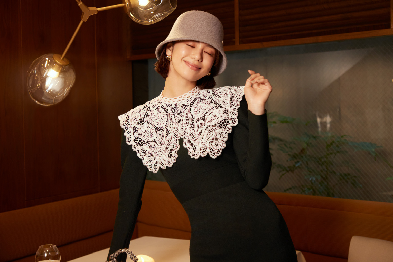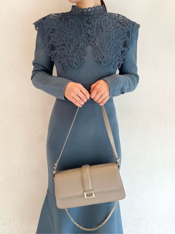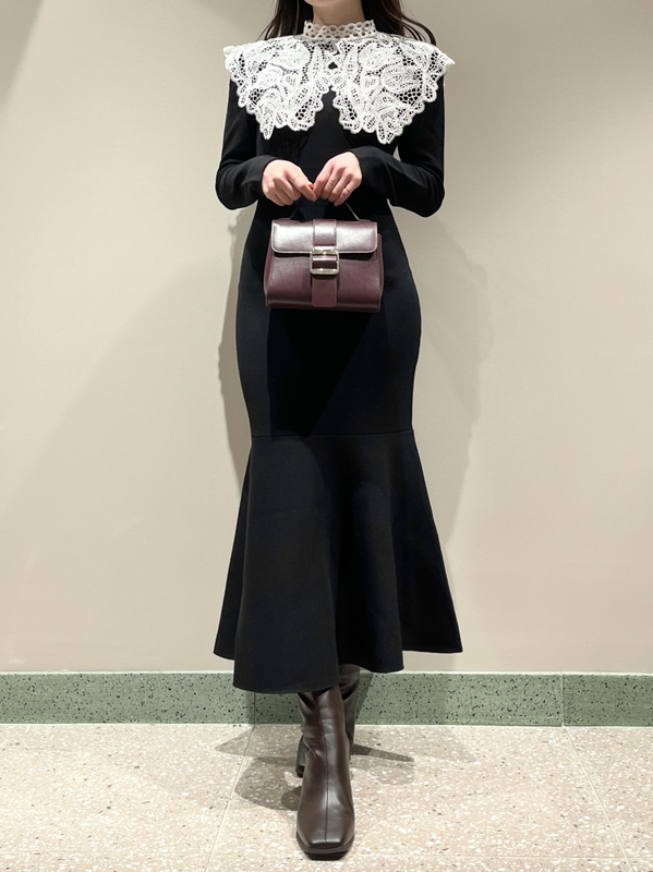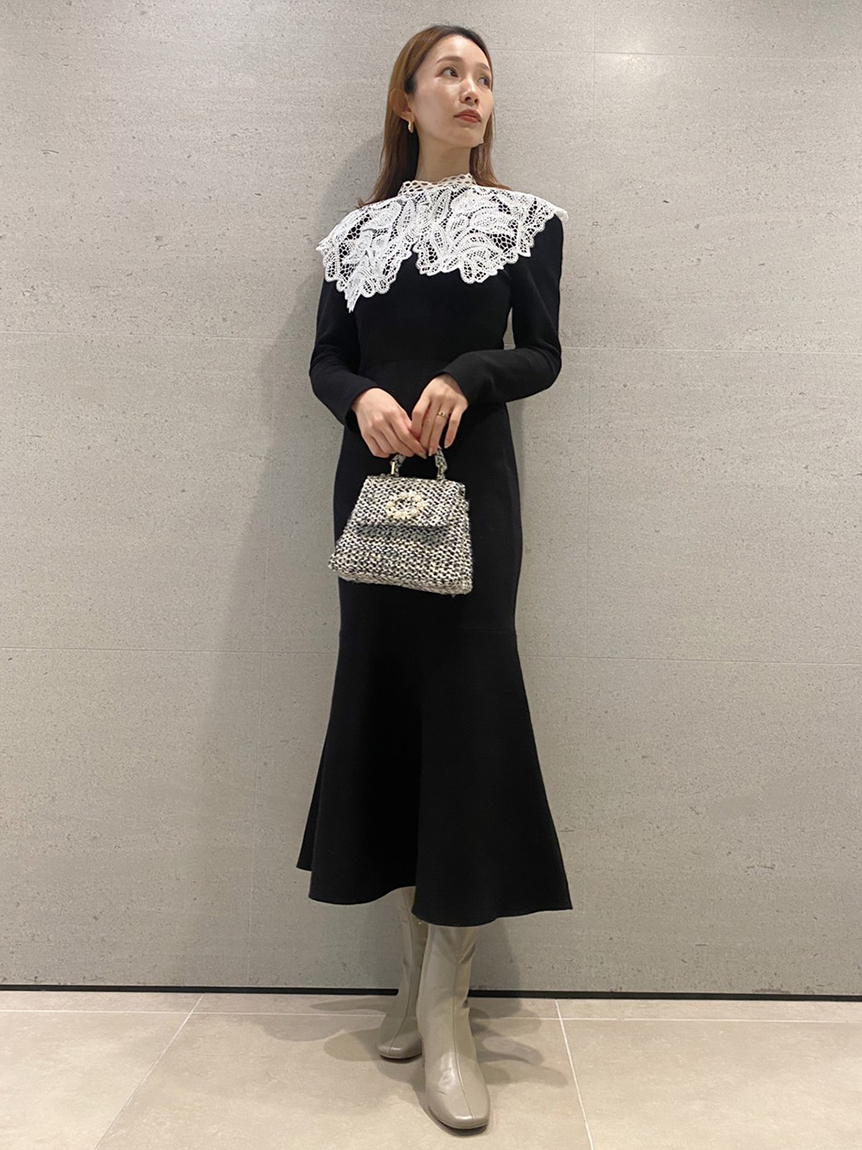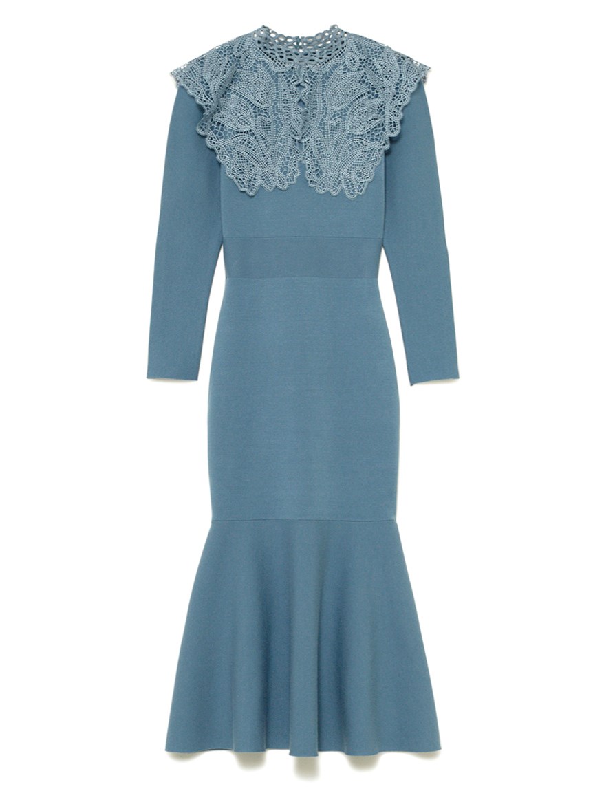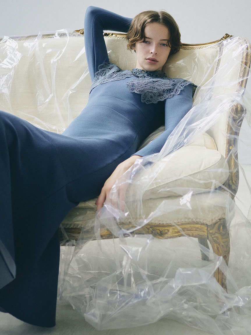 ビッグレースカラーニットワンピース