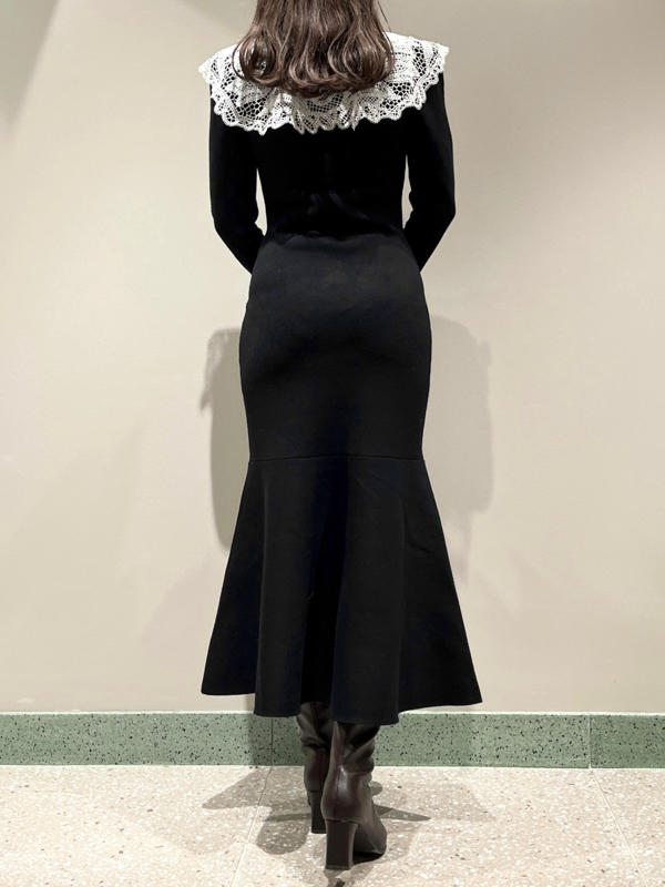 「SNIDEL」定番のカラーニットワンピースシリーズより新作が到着。オリジナルの繊細な刺繍が施された大きめのレースカラーが印象的な、クラス感溢れる1着です。ウエストの切り替えラインがメリハリを与えスタイルアップを実現。ドラマチックなフレアシルエットで品が良く幅広いシーンに最適なアイテムです。レースカラーは取り外しできシンプルなワンピにアレンジできるのも嬉しい。
