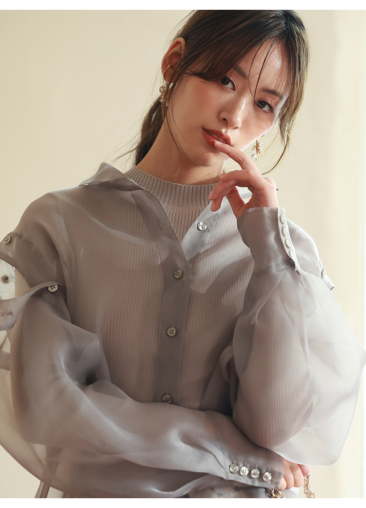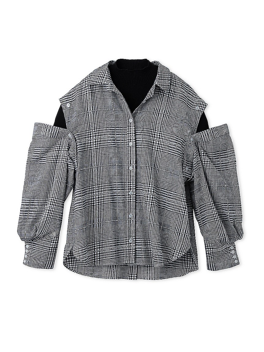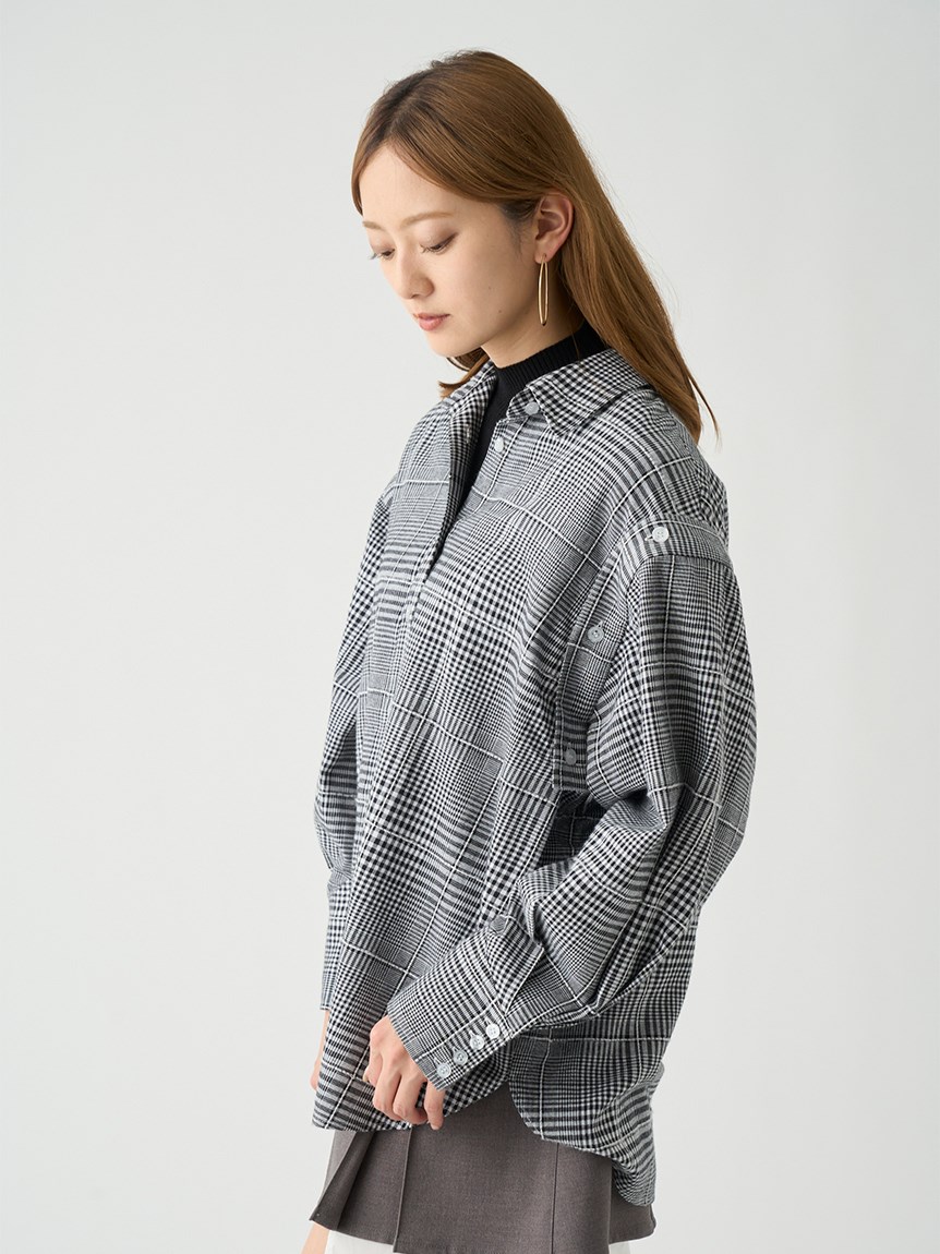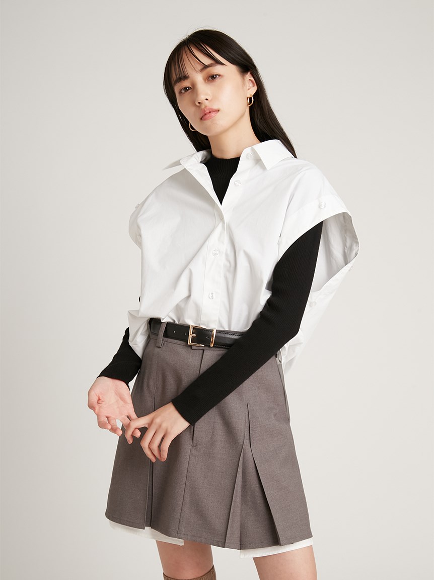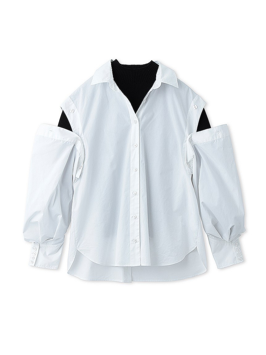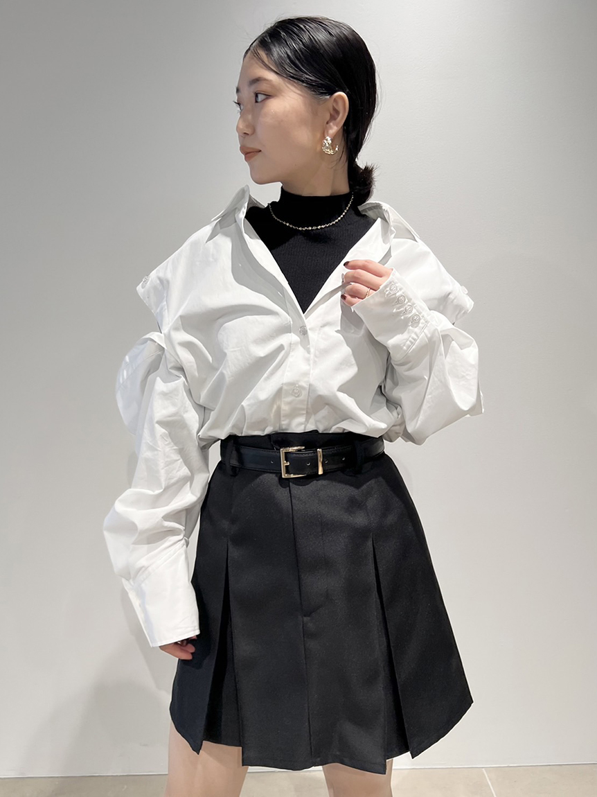抜け感のあるシルエットのシャツとハイネックニットを組み合わせたお得なセット。これだけでトレンドのレイヤードスタイルが完成する今季おすすめの1品です。シャツは随所にあしらわれたボタンの開閉でスリットやシルエットのアレンジが可能。覗かせるインナーの分量やカラーでがらりと表情が変わり、お洒落度の高いスタイリングが叶います。