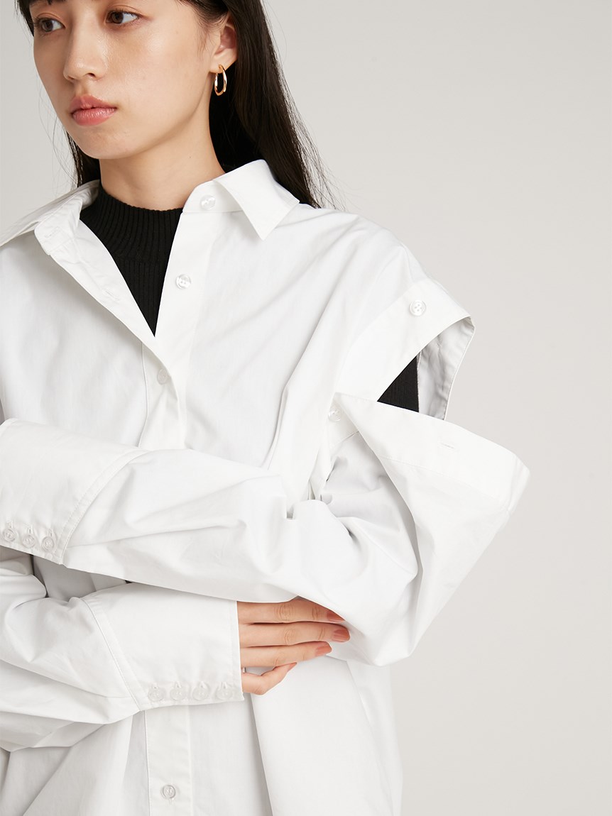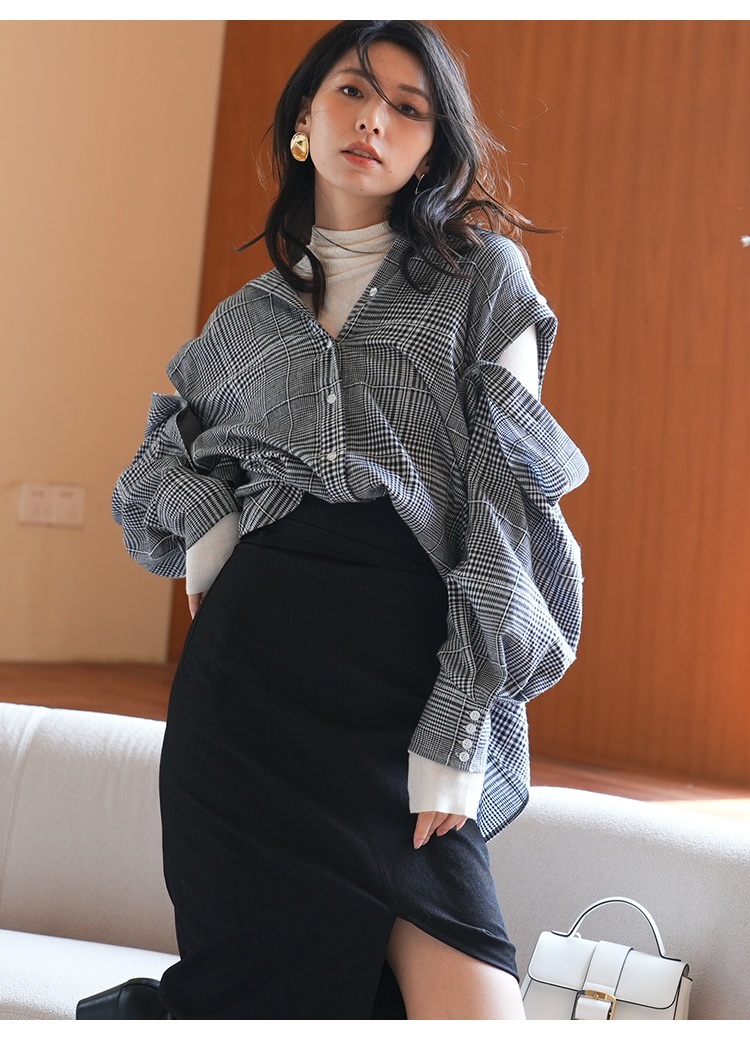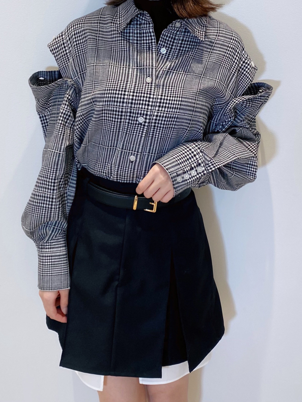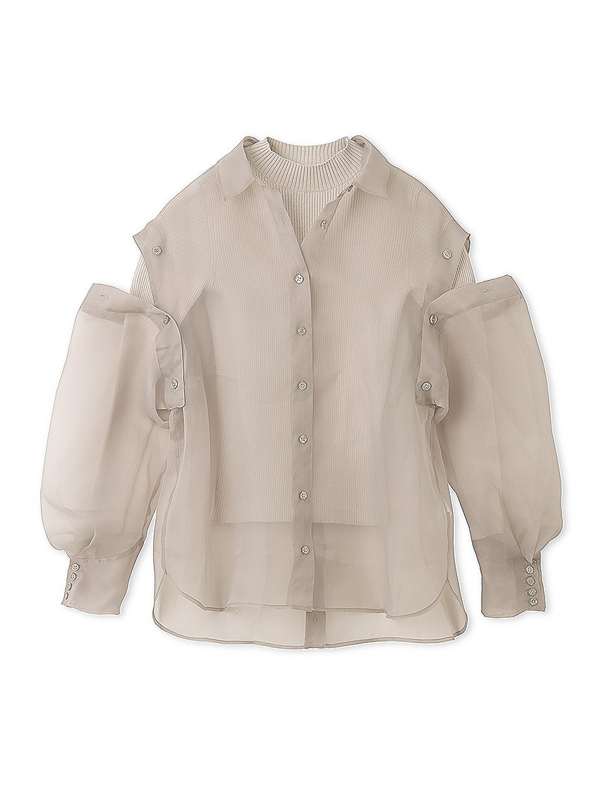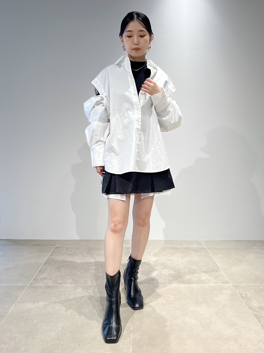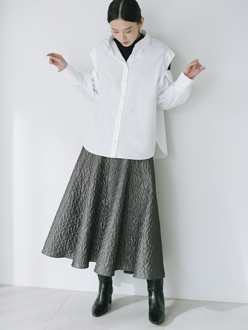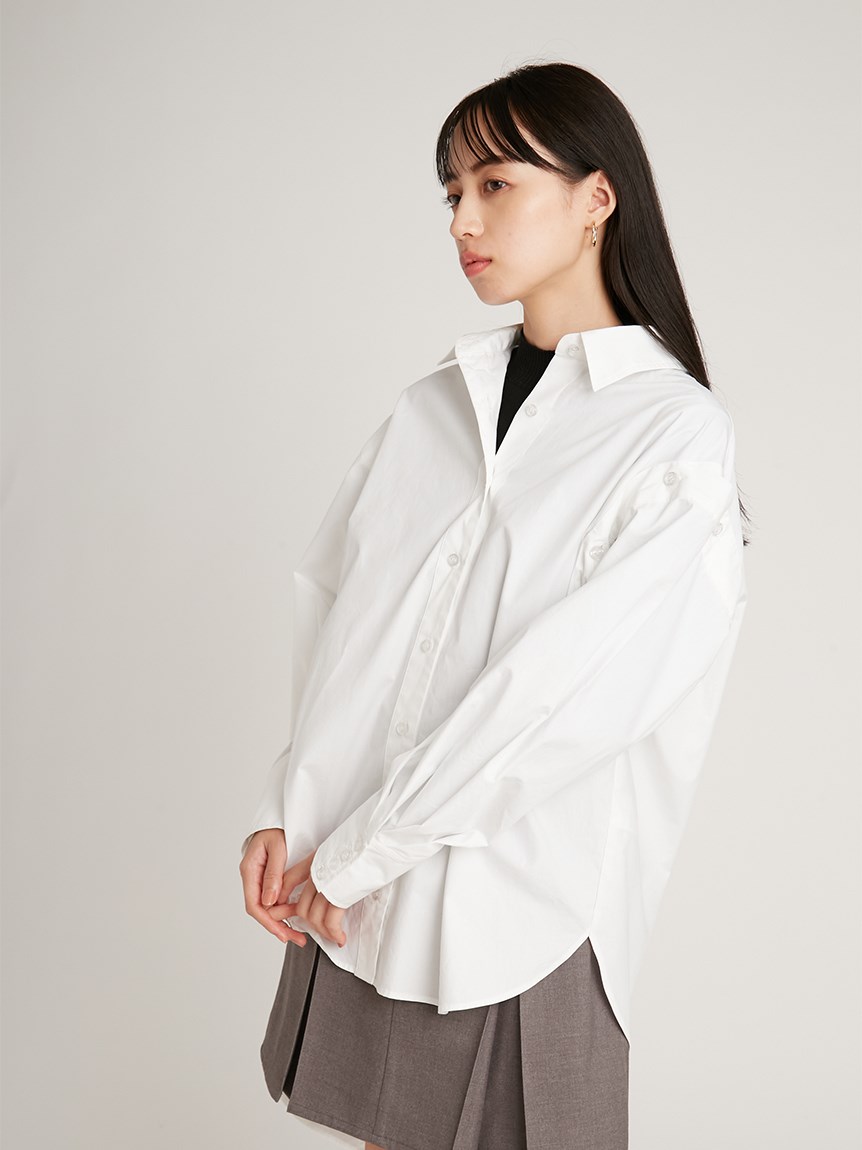 抜け感のあるシルエットのシャツとハイネックニットを組み合わせたお得なセット。これだけでトレンドのレイヤードスタイルが完成する今季おすすめの1品です。シャツは随所にあしらわれたボタンの開閉でスリットやシルエットのアレンジが可能。覗かせるインナーの分量やカラーでがらりと表情が変わり、お洒落度の高いスタイリングが叶います。
