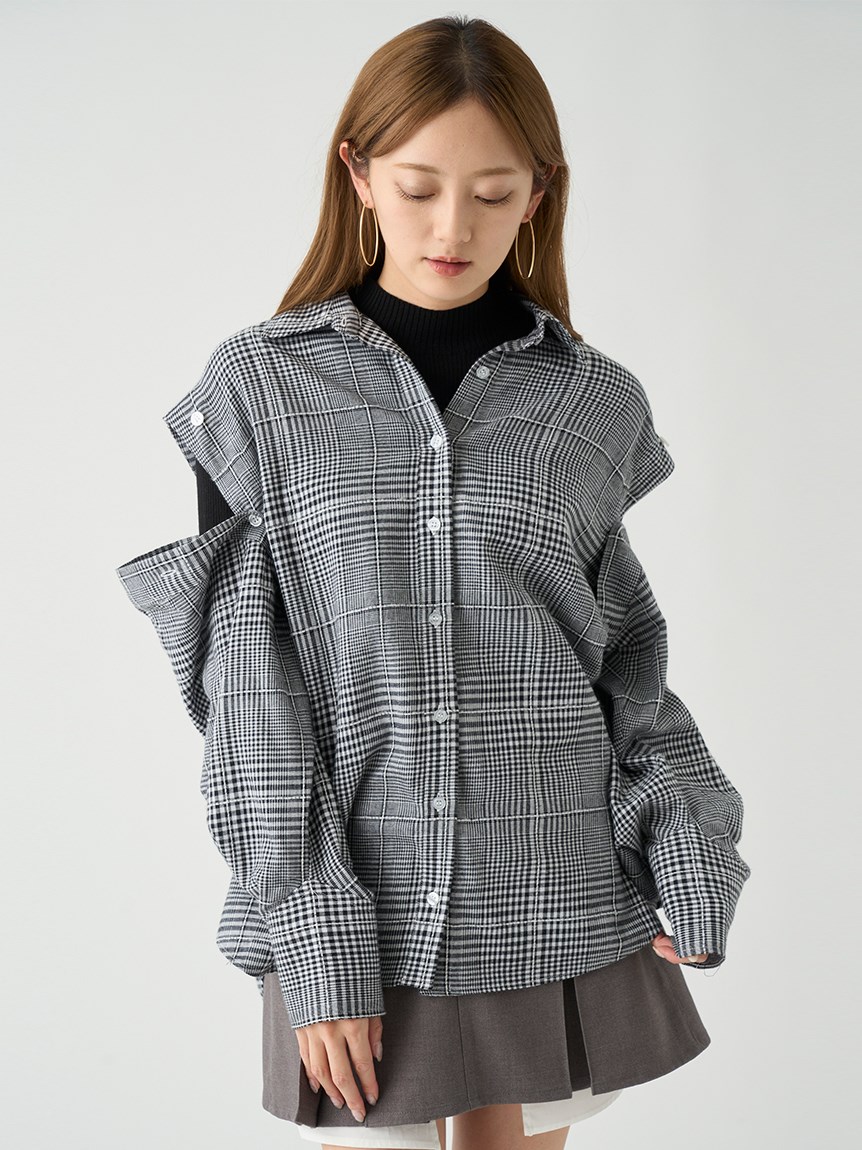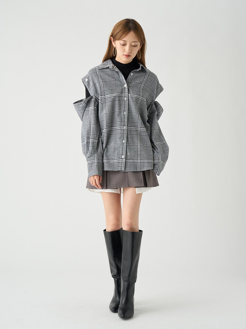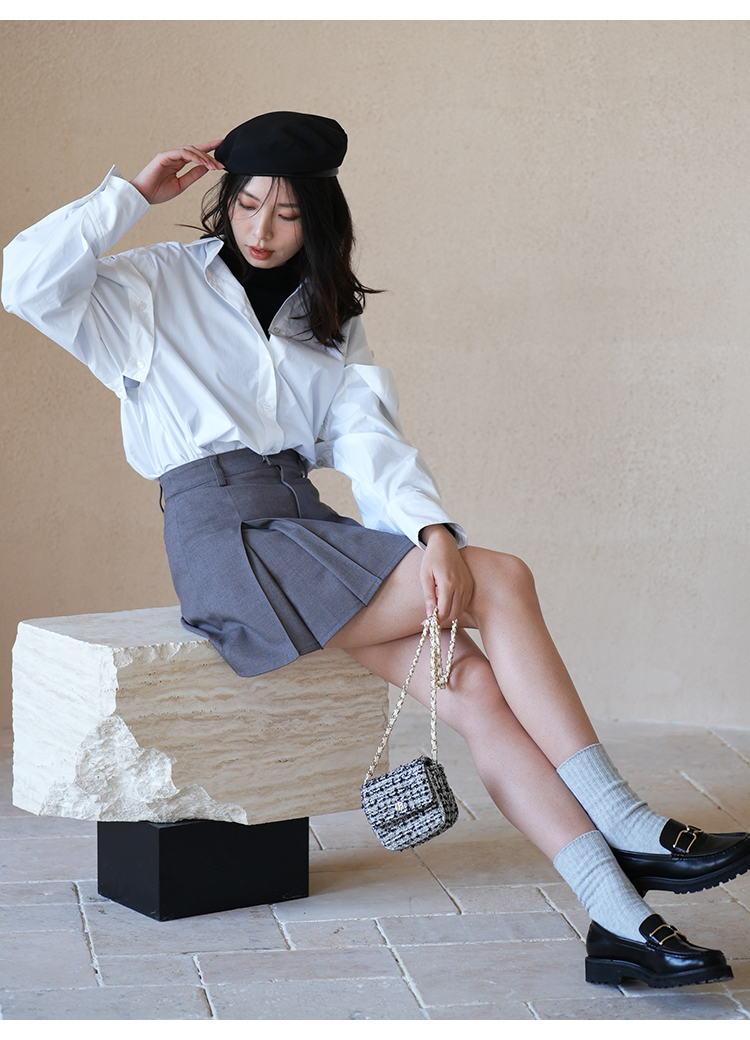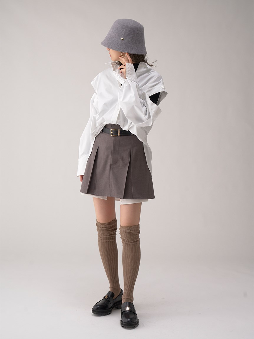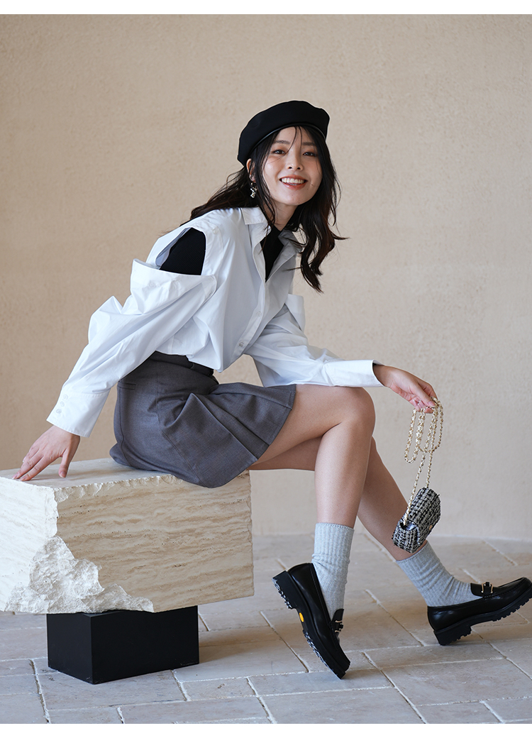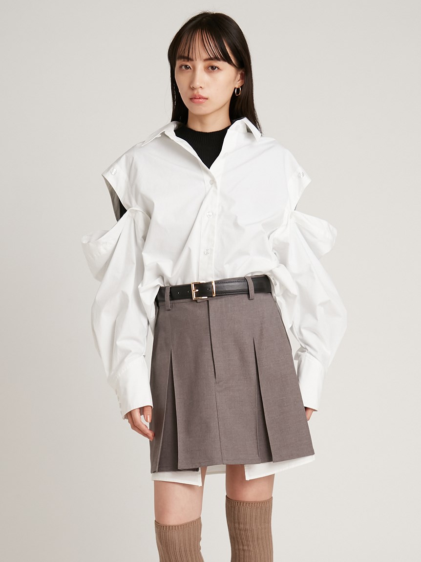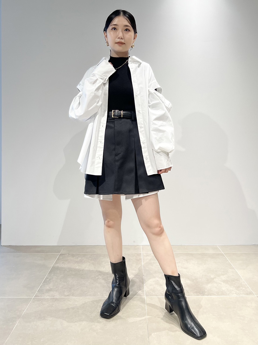 抜け感のあるシルエットのシャツとハイネックニットを組み合わせたお得なセット。これだけでトレンドのレイヤードスタイルが完成する今季おすすめの1品です。シャツは随所にあしらわれたボタンの開閉でスリットやシルエットのアレンジが可能。覗かせるインナーの分量やカラーでがらりと表情が変わり、お洒落度の高いスタイリングが叶います。