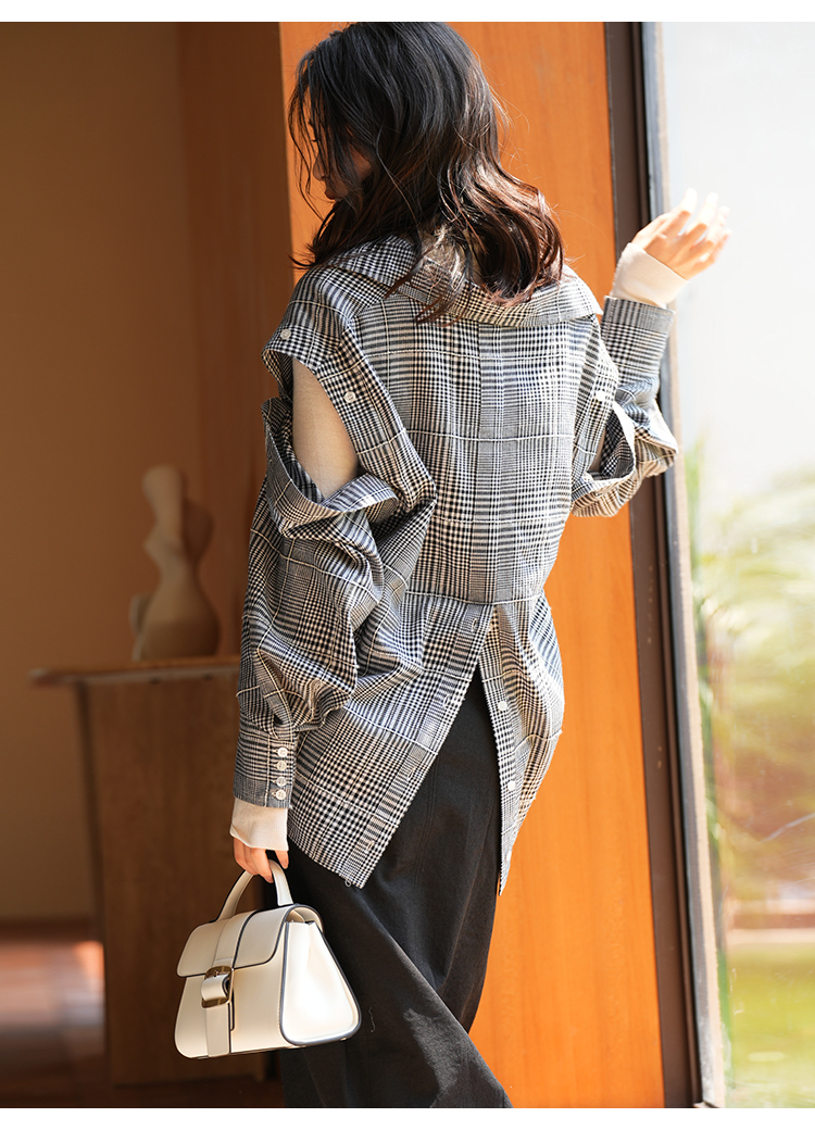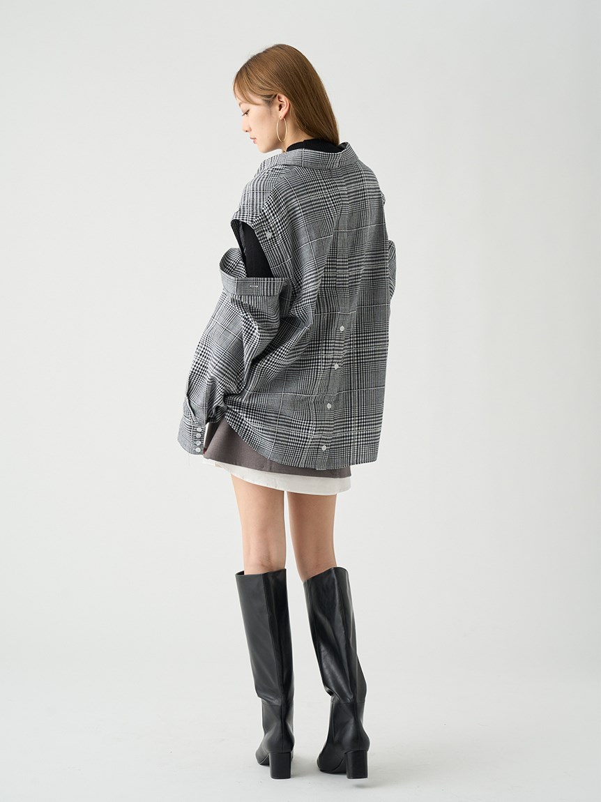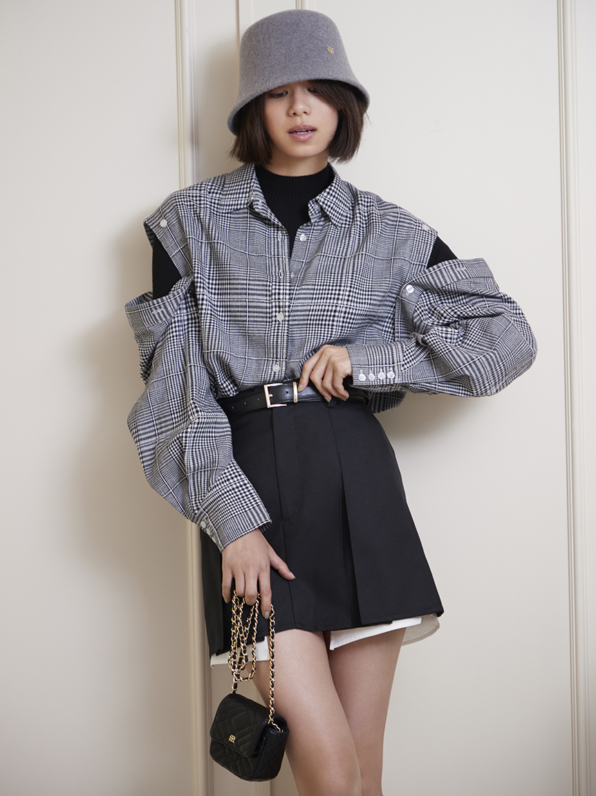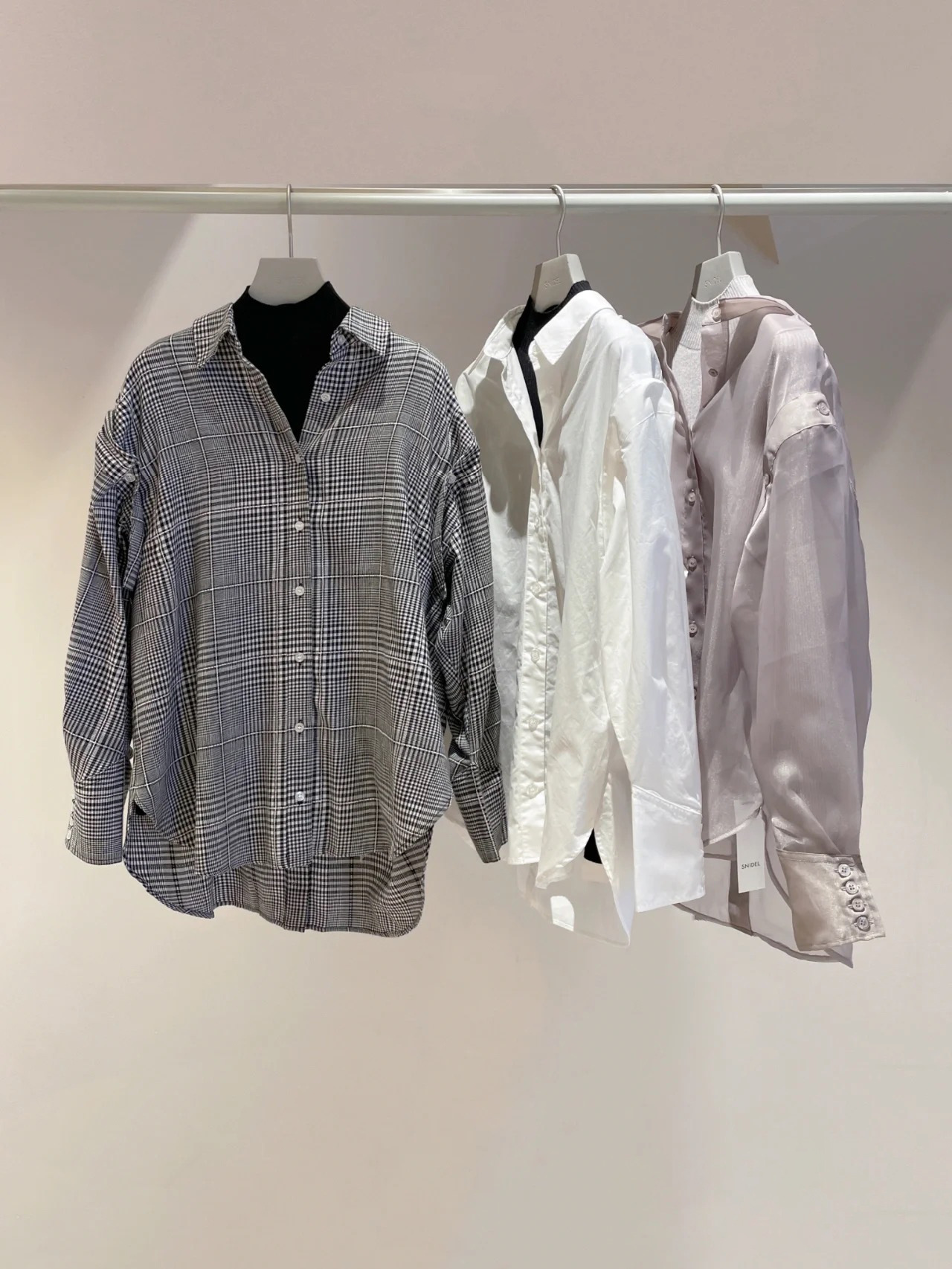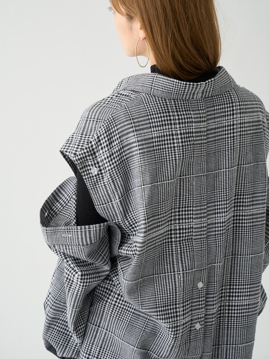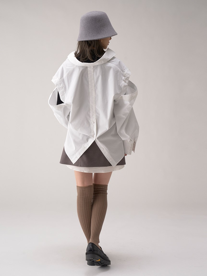 サステナブルな素材を使用したニットとベーシックなシャツ地をコンビにしました。バイカラーで組み合わせたホワイト、ニュアンスのあるカラートーンのライトグレー、表情が楽しいネルチェックの3色展開でお届けします。