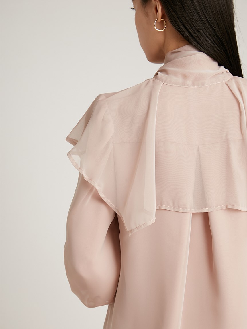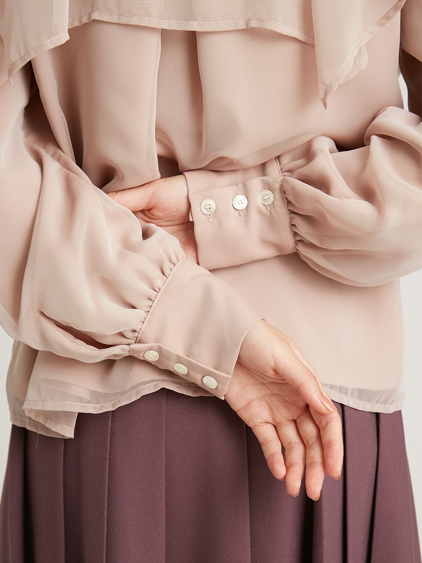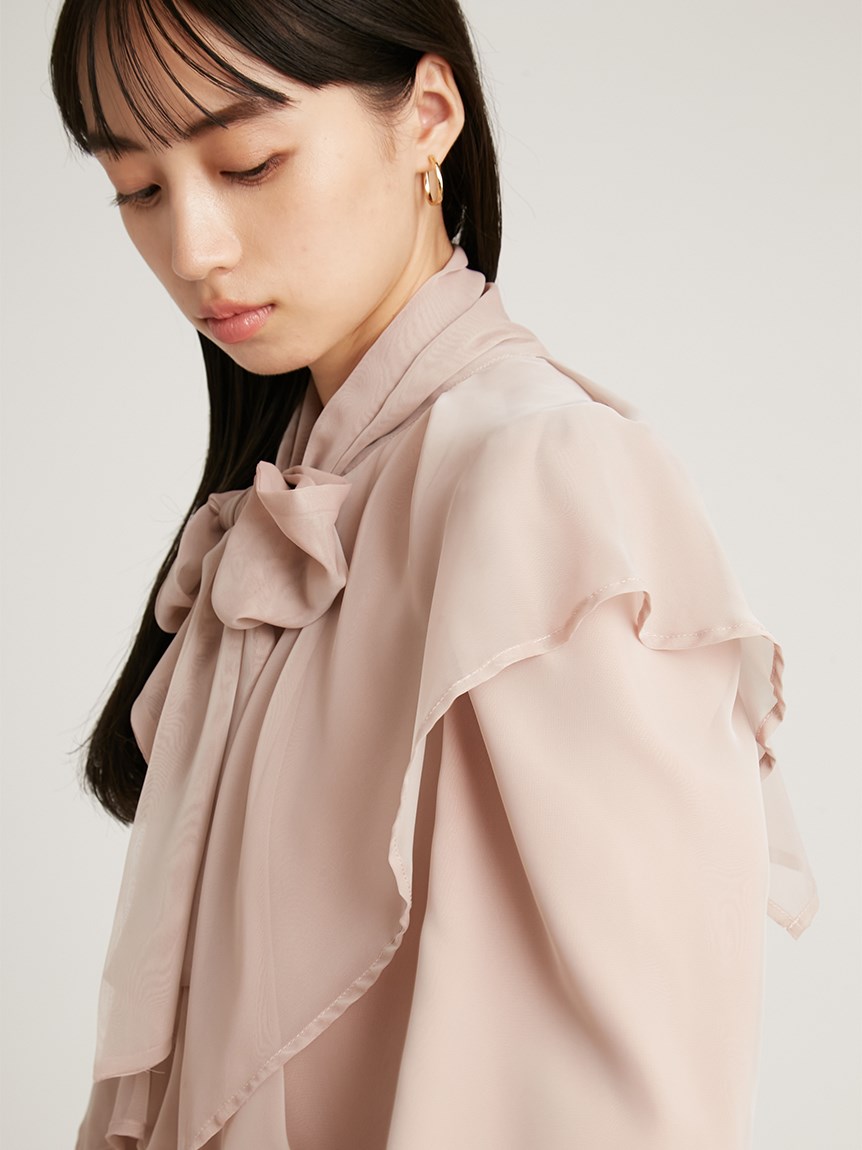 程よいハリ感のあるシアーな生地を使用しました。優しい色合いで女性らしいアイボリーとライトピンクに、大人っぽい印象を与えるブラックを加えた3色をご用意。