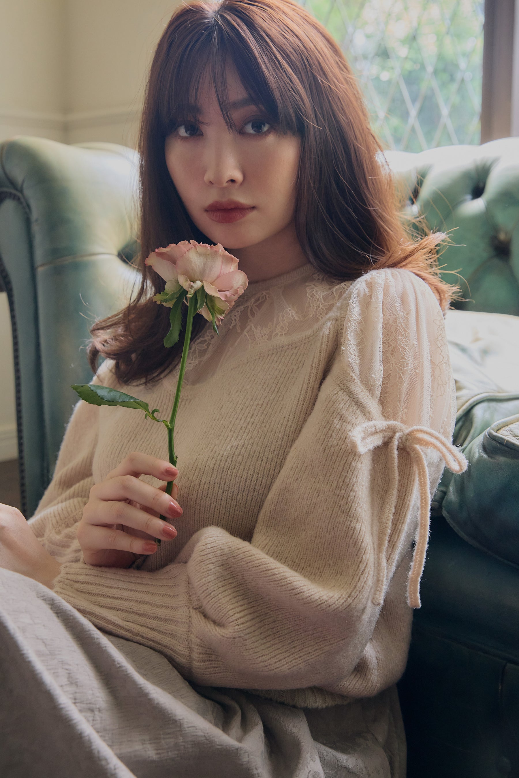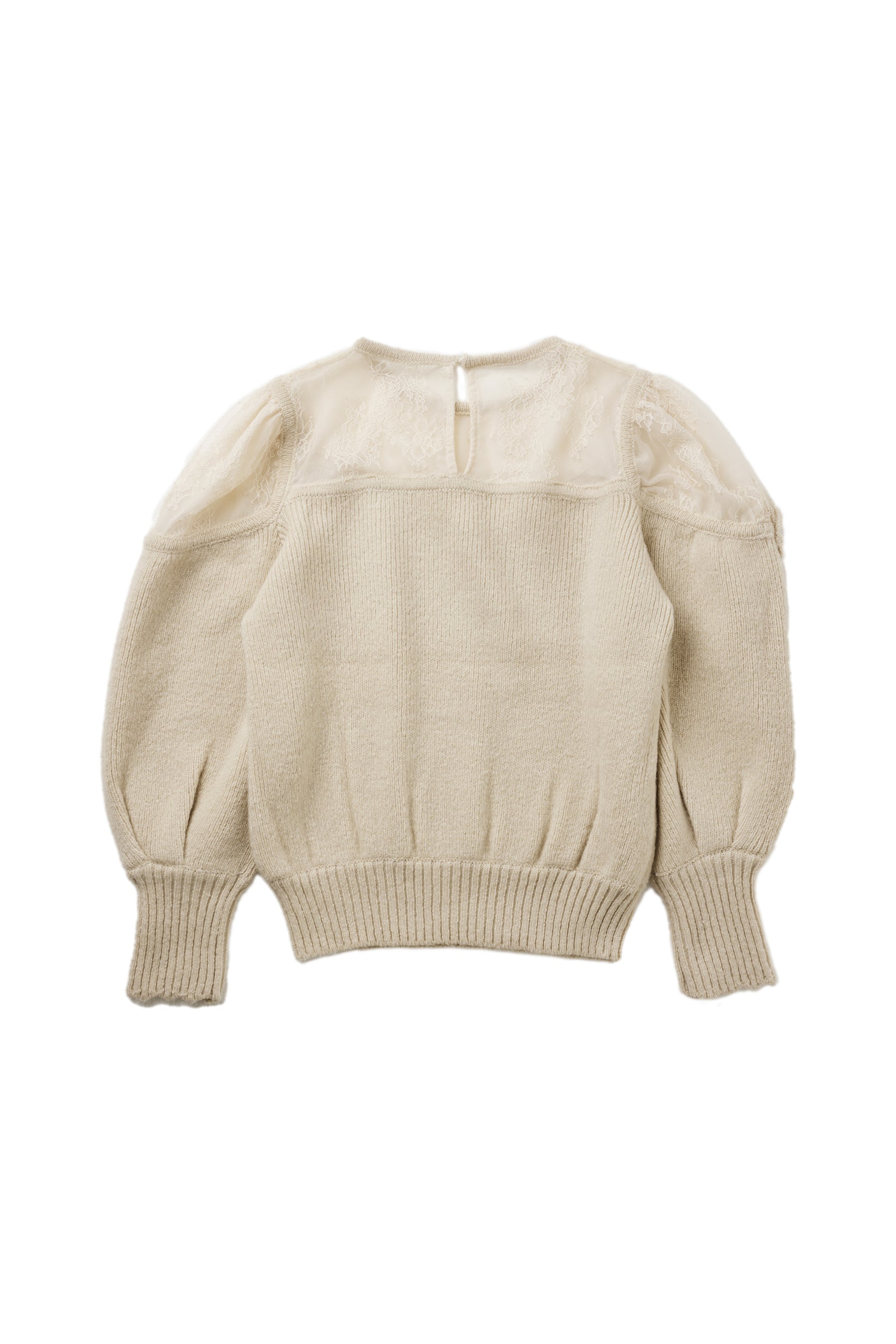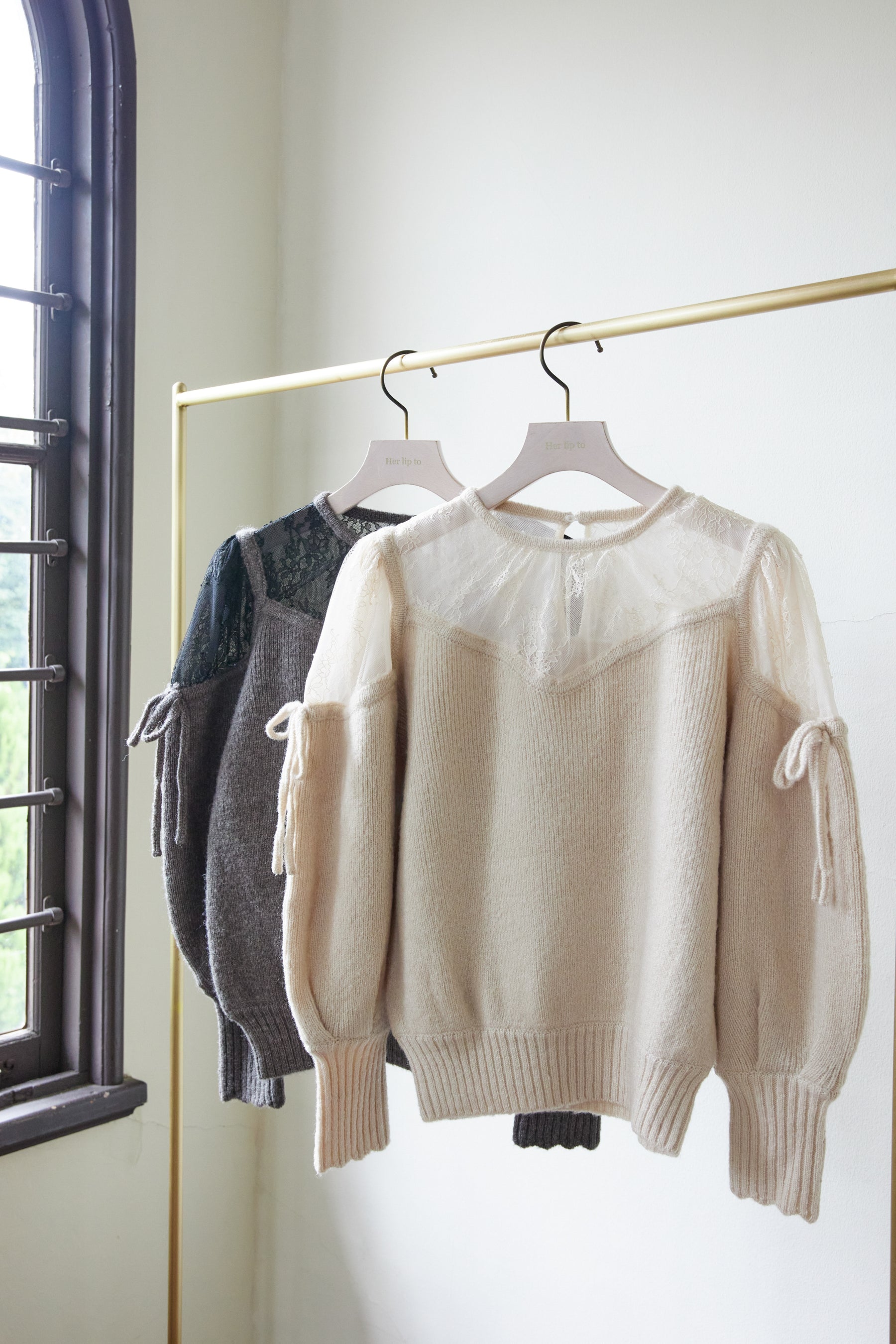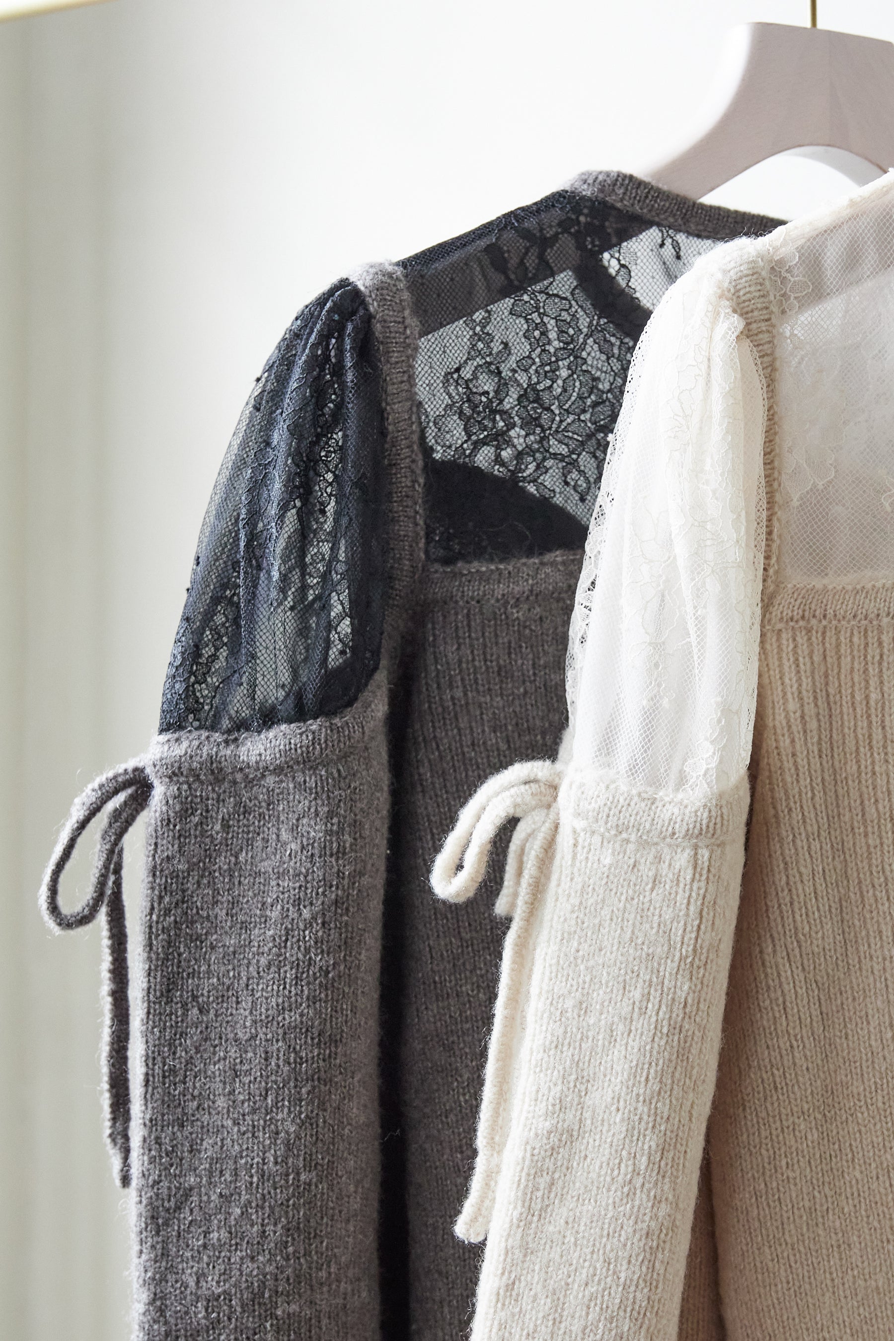 繊細なレースを使用した異素材ミックスが印象的なニットプルオーバー。