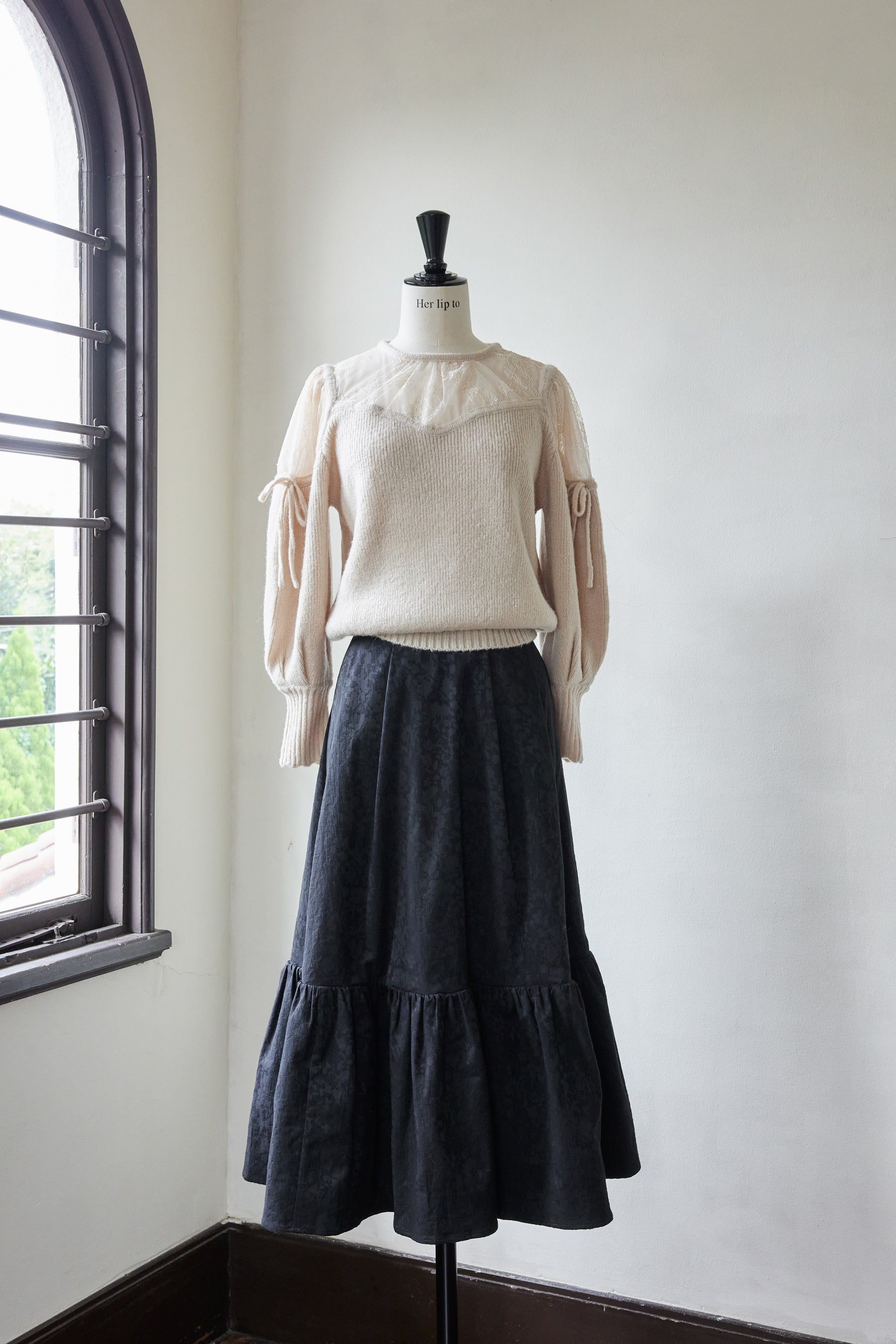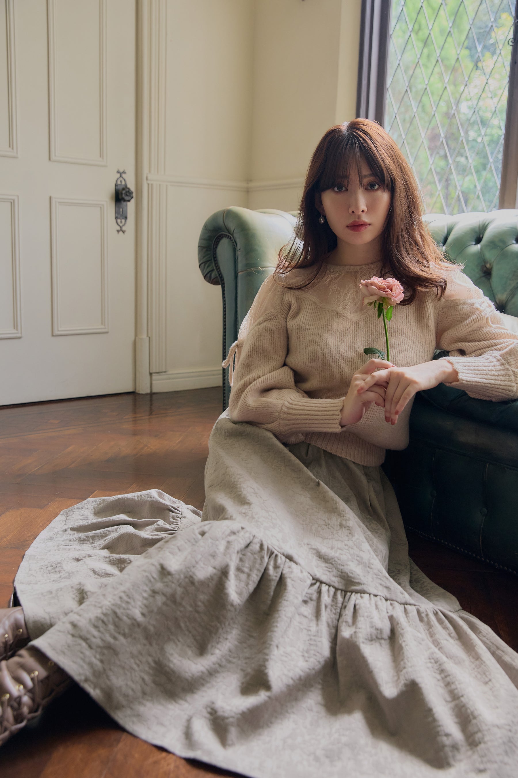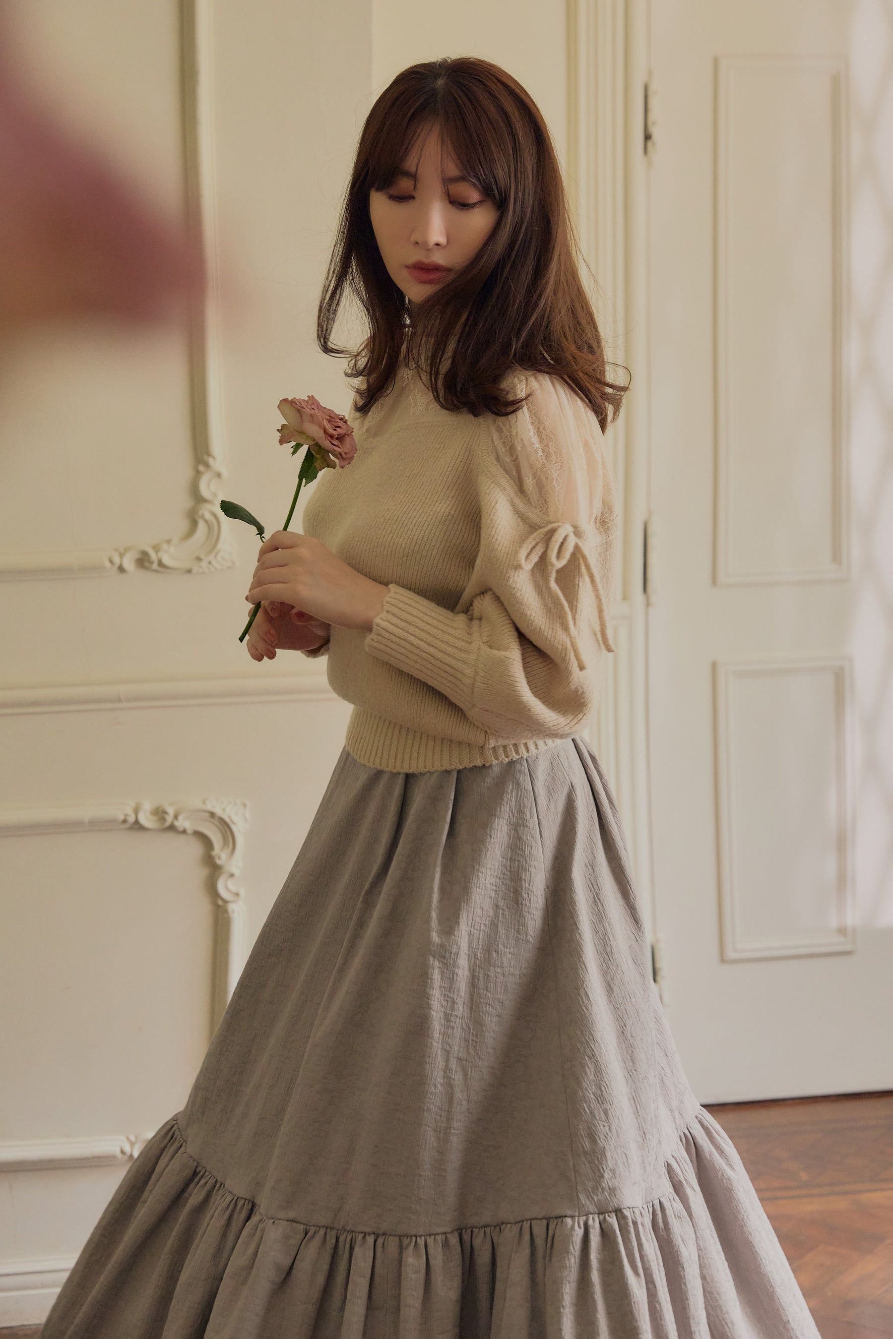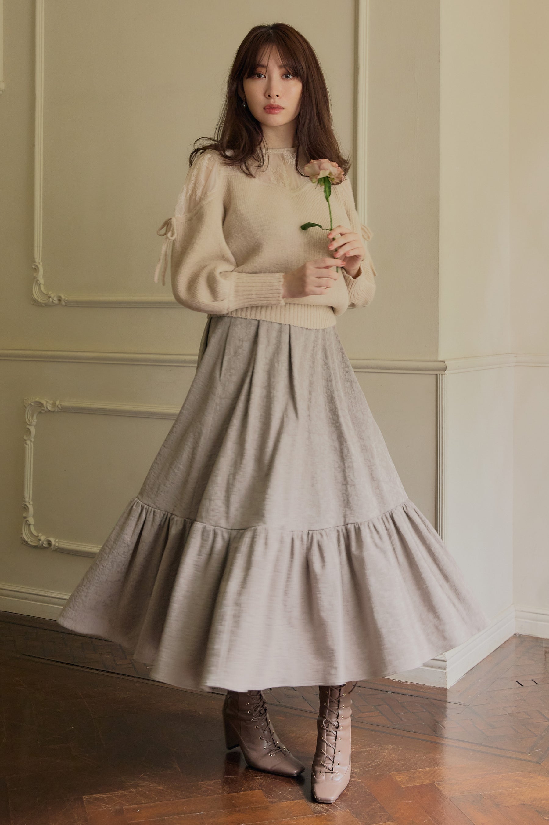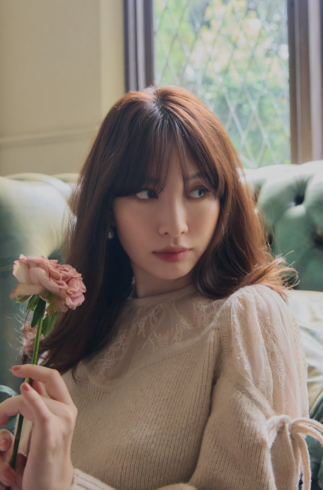 繊細なレースを使用した異素材ミックスが印象的なニットプルオーバー。