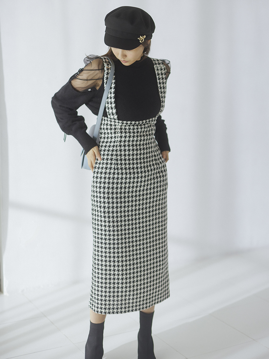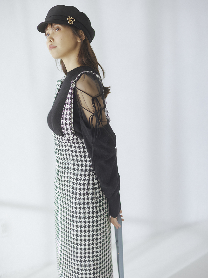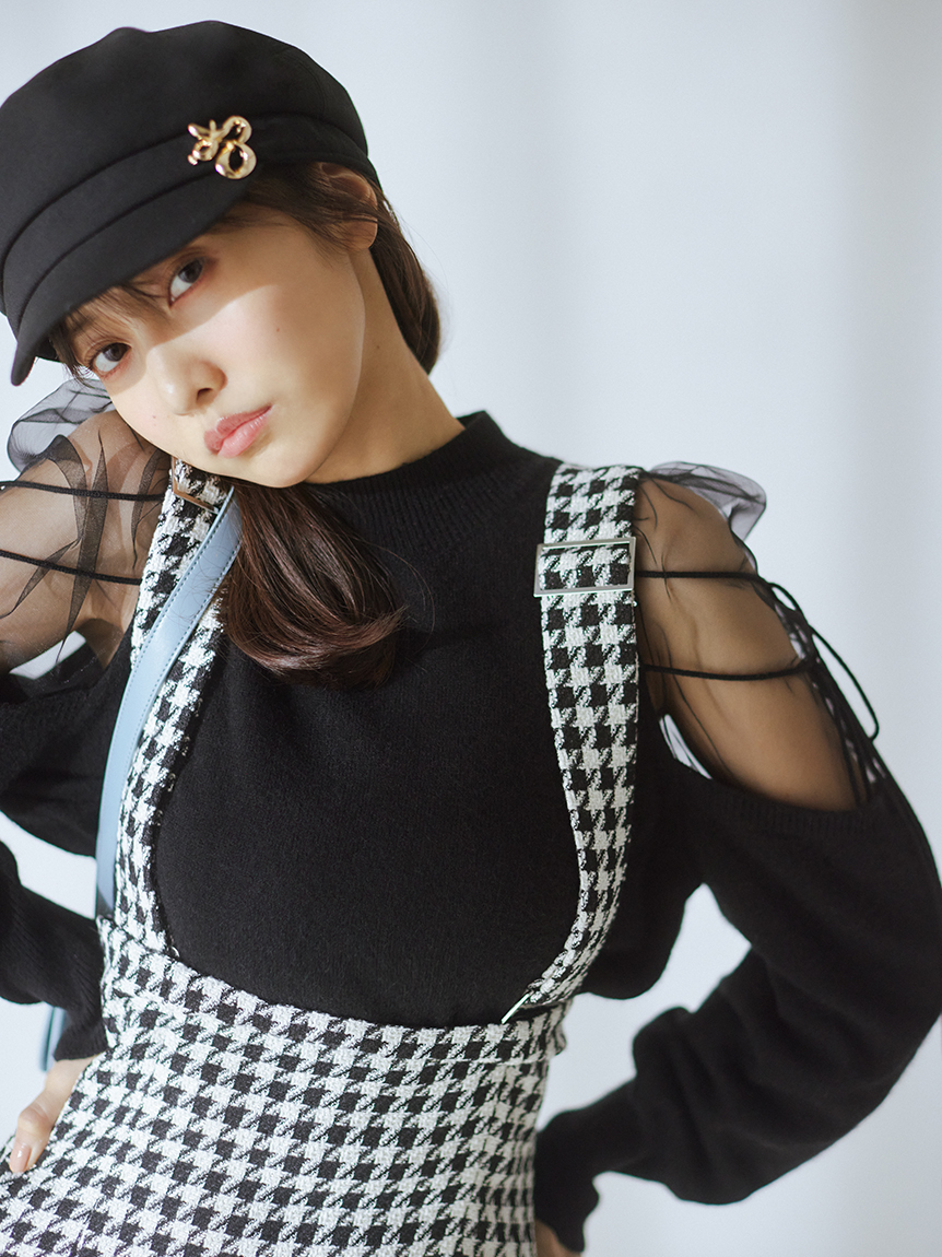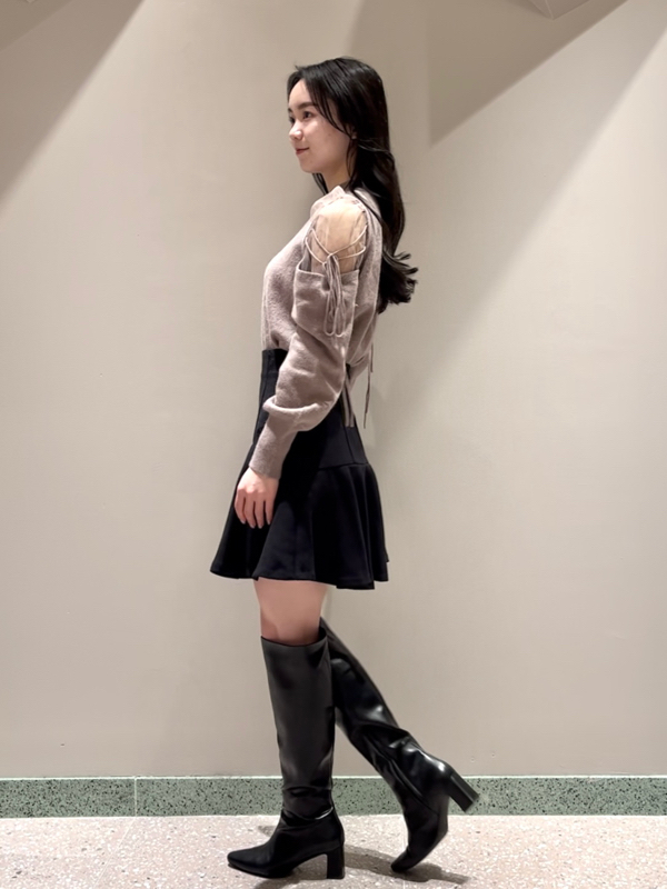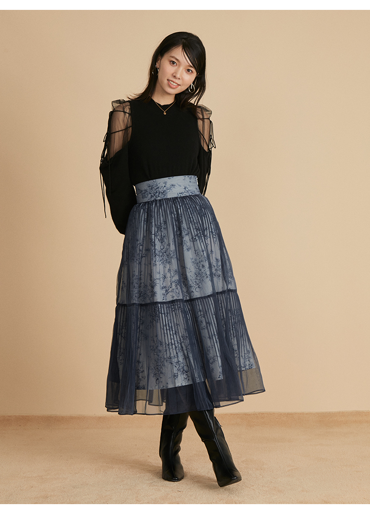 リサイクルナイロンを用いたサステナブルなニットとシアーなオーガンジーを組み合わせました。アイボリー、ブラック、モカの着まわしやすいベーシックなカラー展開でお届けします。
