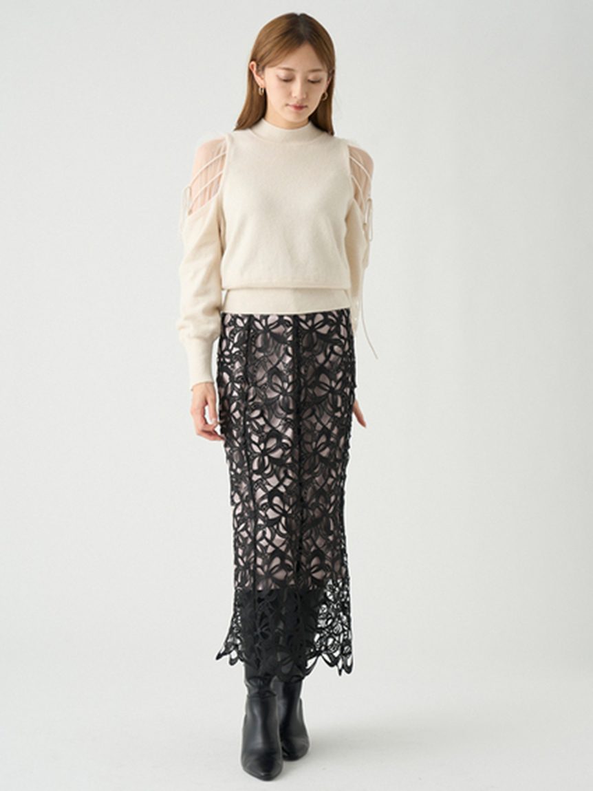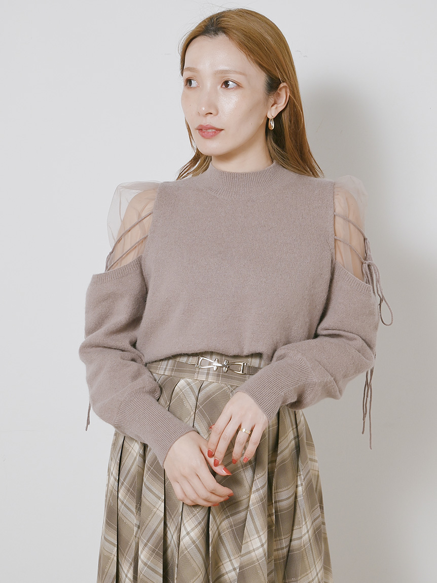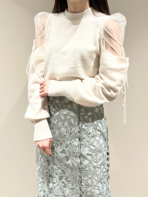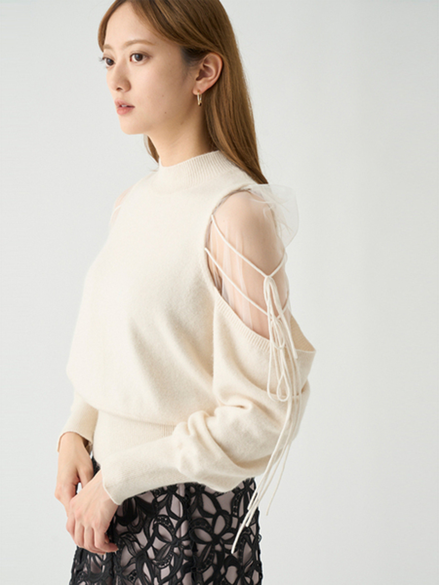 Sustainableシースルーショルダーニットプルオーバー