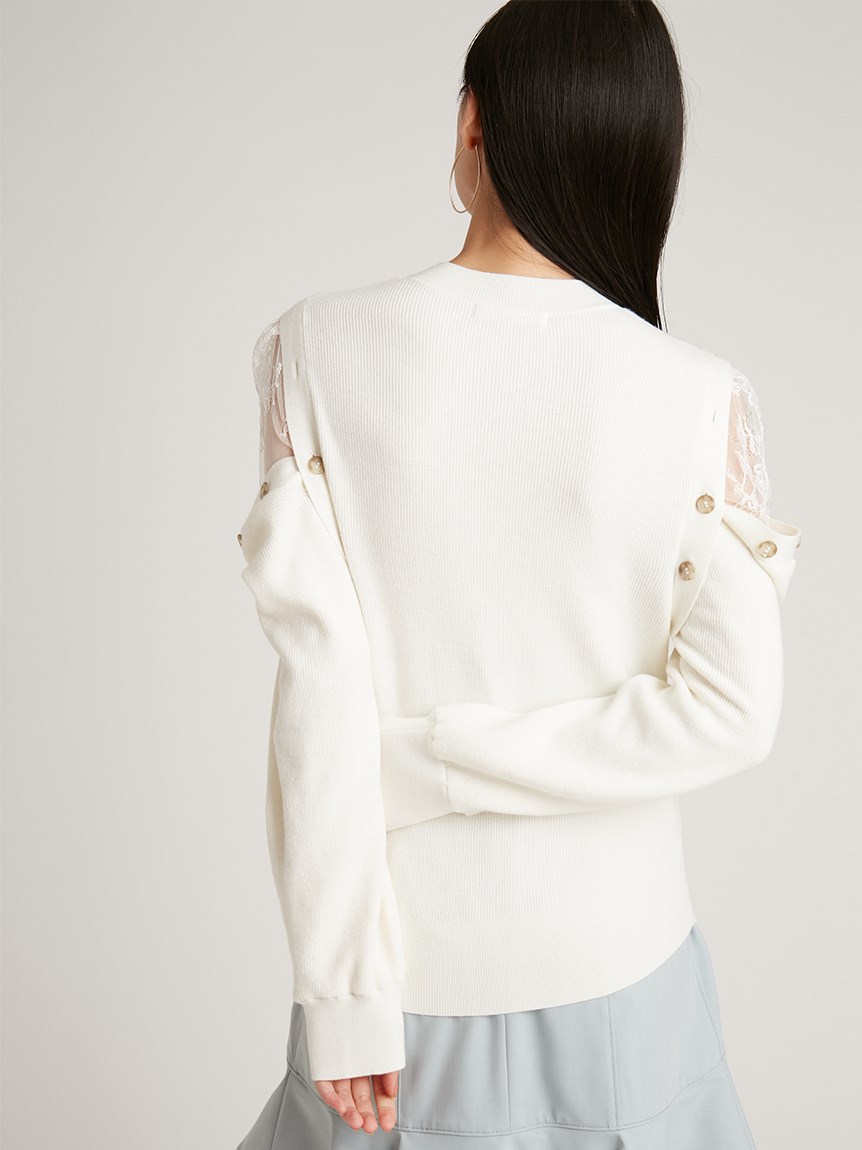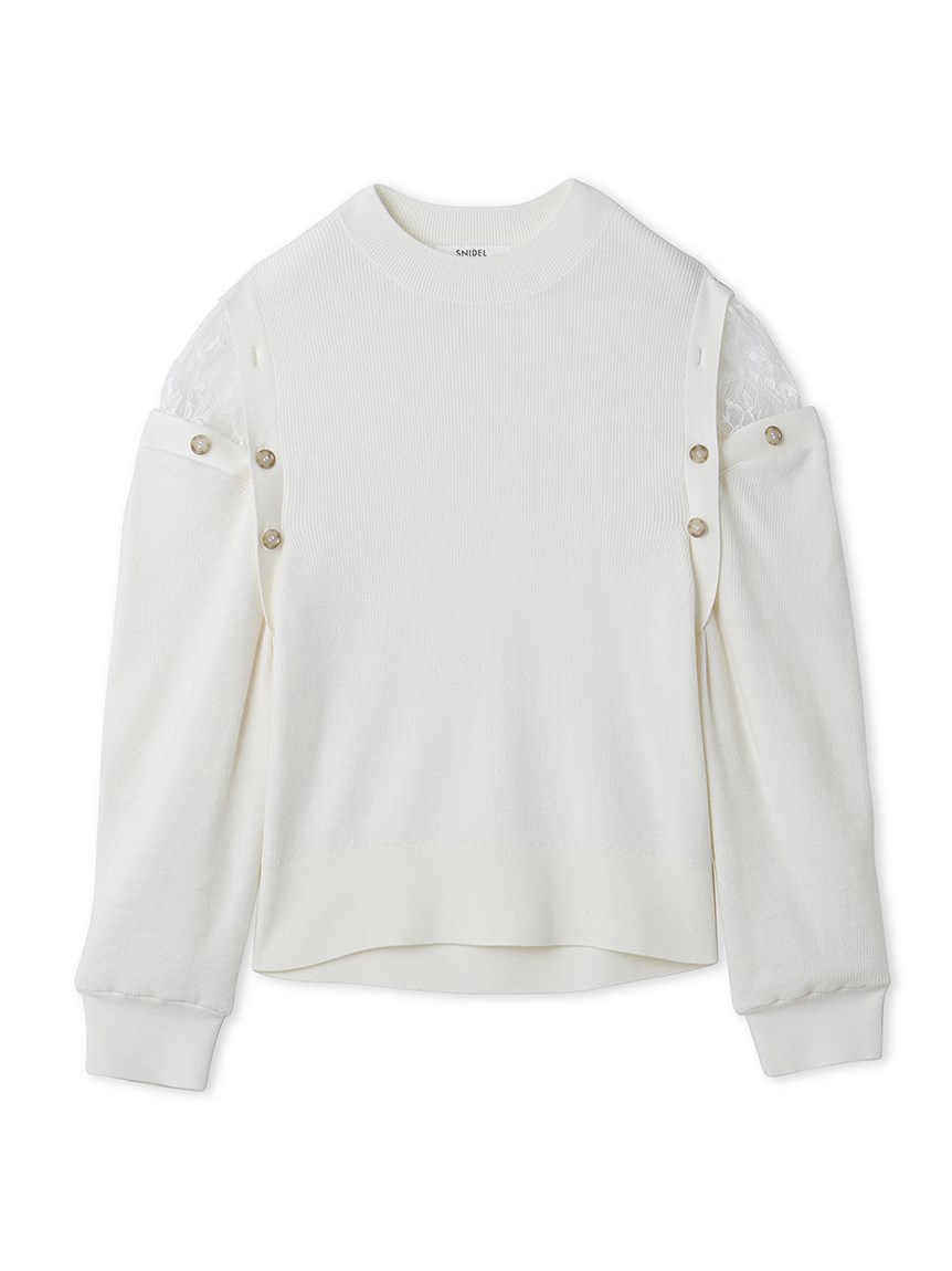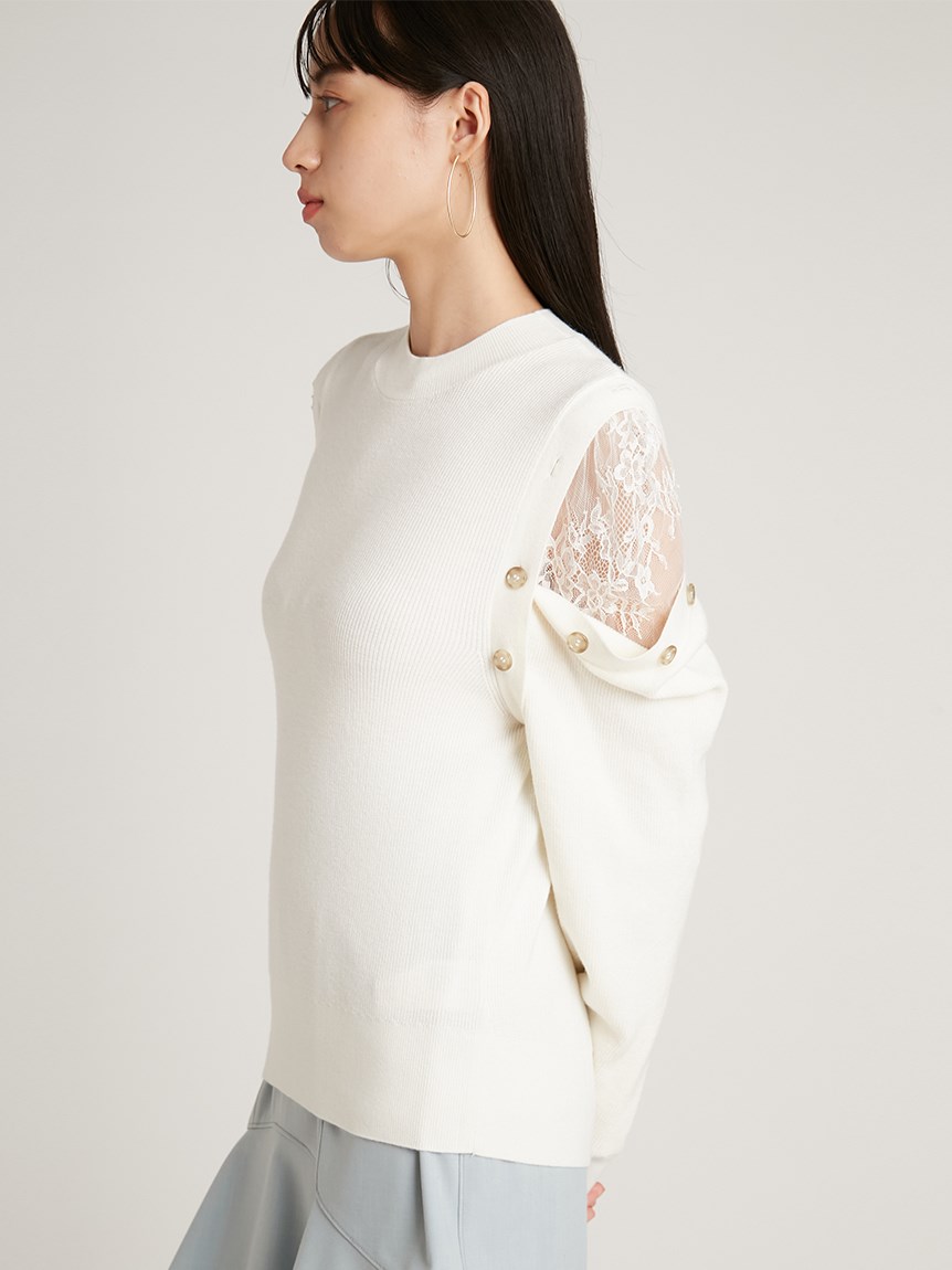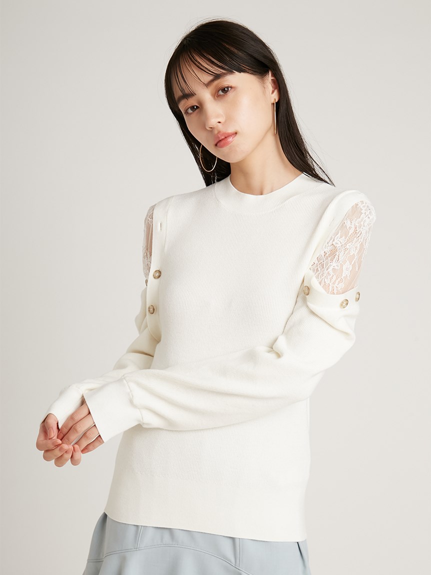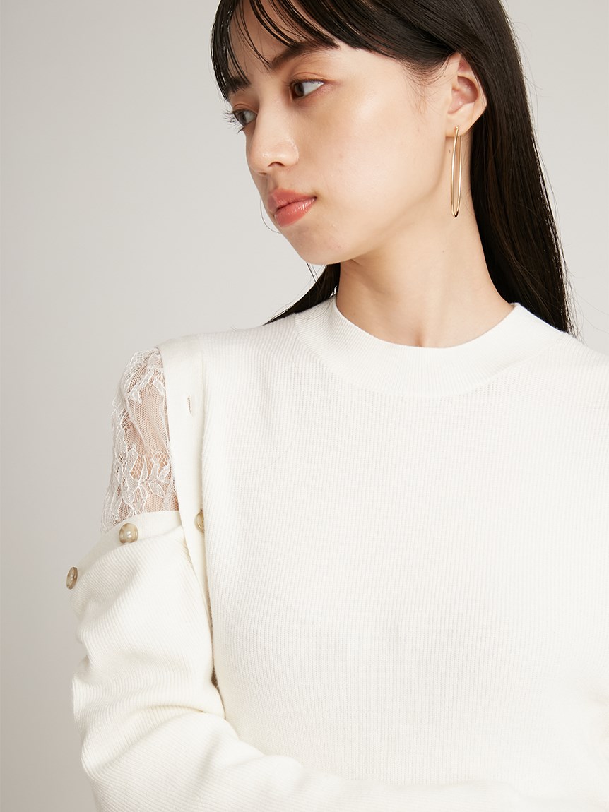 【2WAYで自由にアレンジできるショルダーレースのニットプルオーバー】