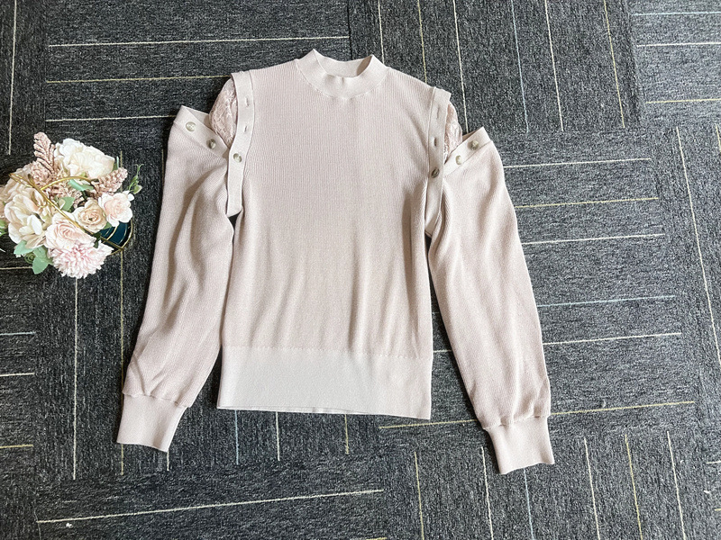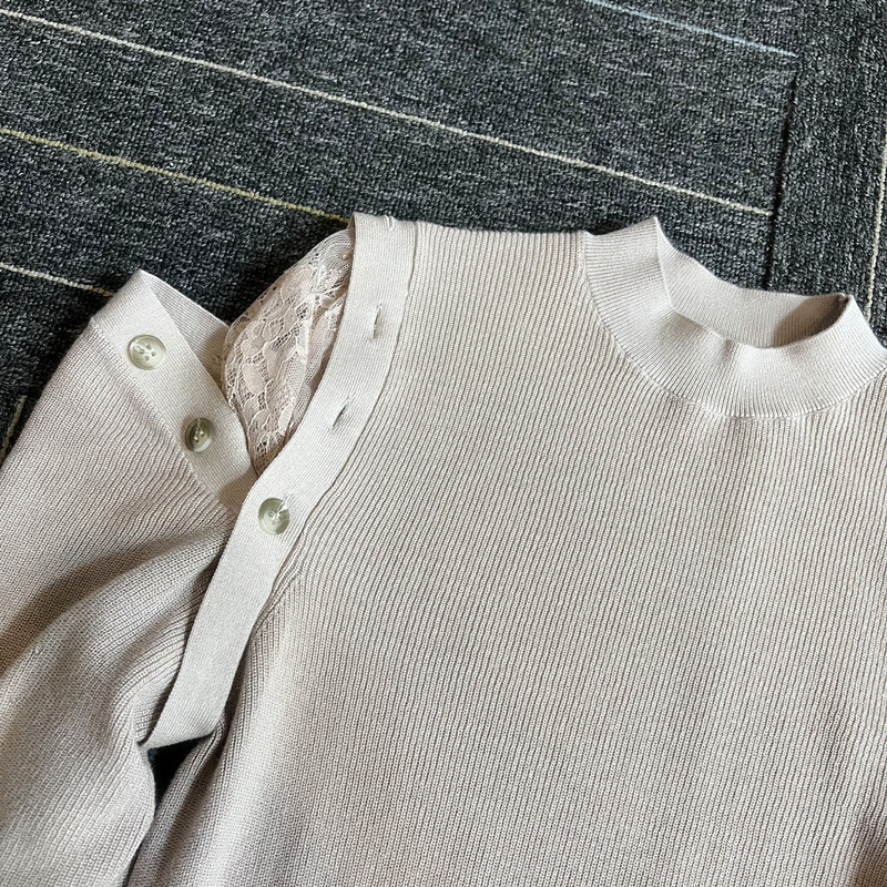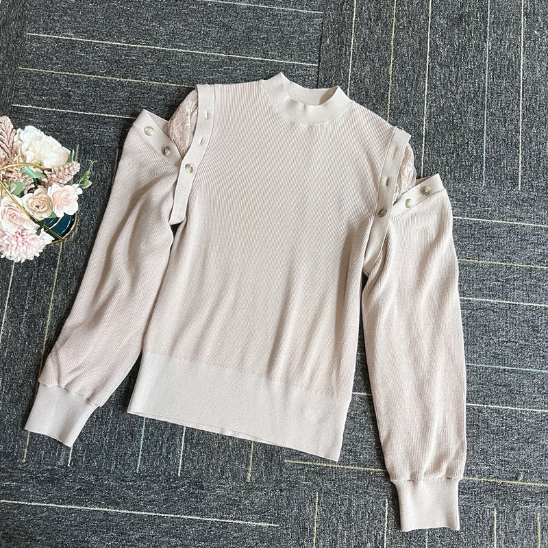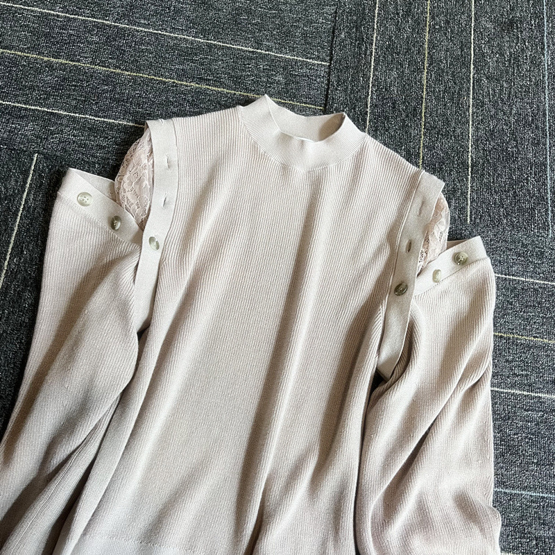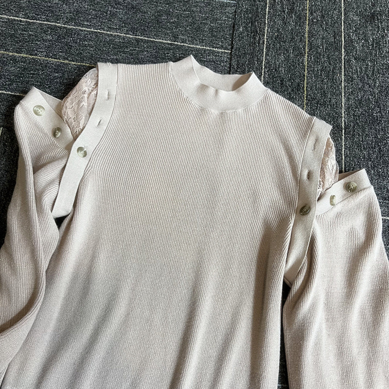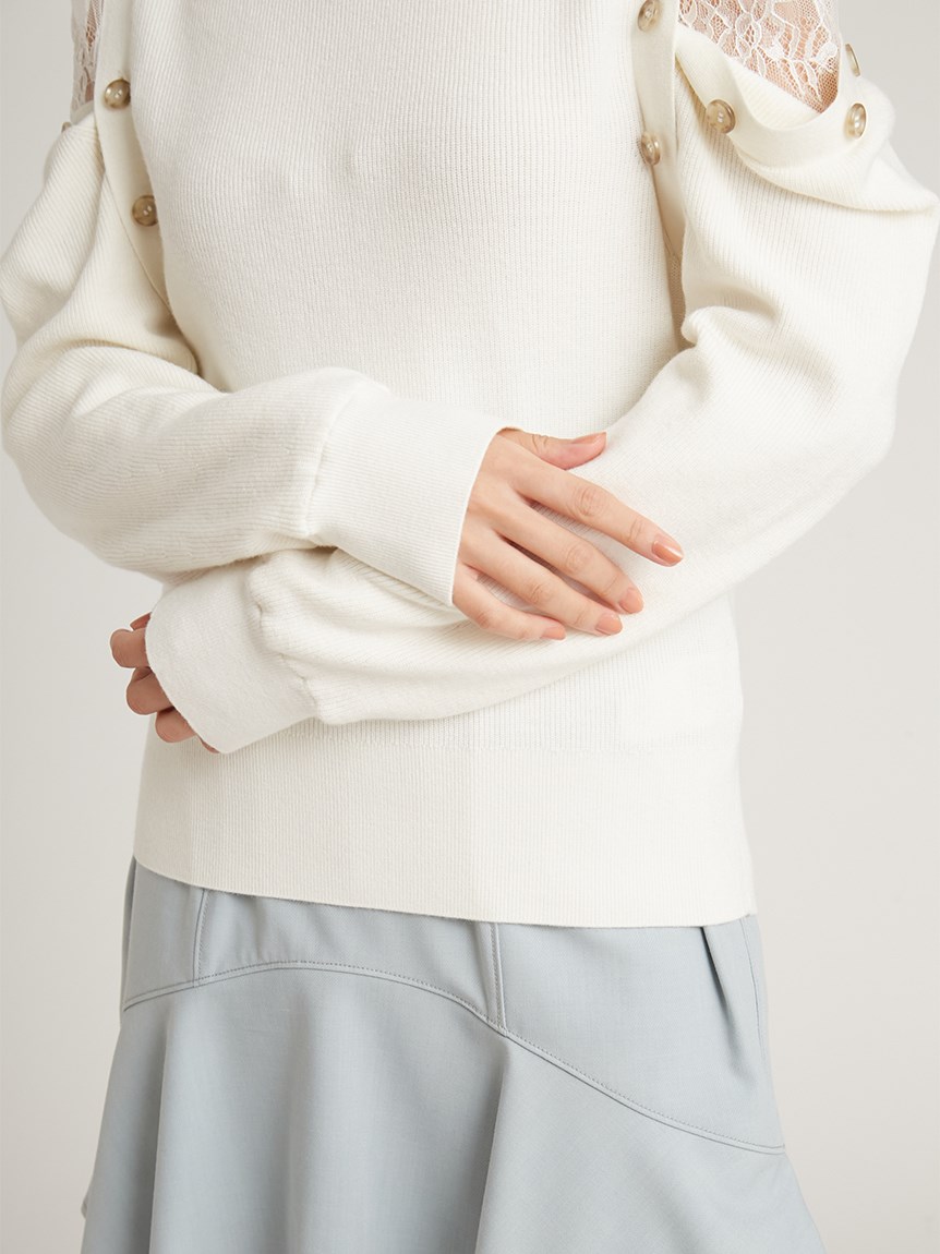 【2WAYで自由にアレンジできるショルダーレースのニットプルオーバー】